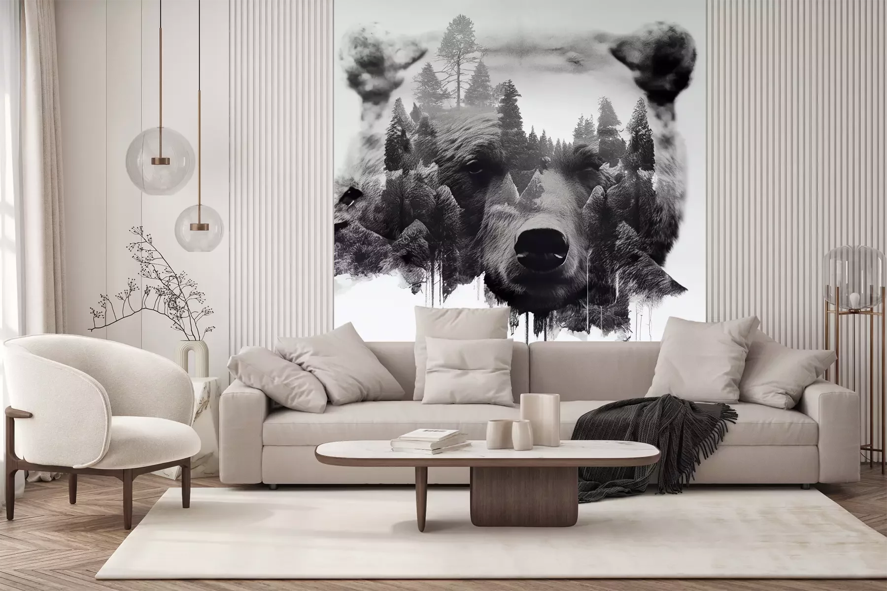 Het materiaal Premium+ is een gestructureerd vinyl op vlies met een gewicht van 255 g/m², dat kleine oneffenheden in de muur effectief camoufleert. De subtiele structuur van fijn zand geeft het oppervlak een exclusieve uitstraling, terwijl de halfmatte afwerking de diepte van de kleuren benadrukt. Het materiaal is dampdoorlatend, waardoor het ook in de keuken en badkamer kan worden gebruikt. De maximale breedte van één baan bedraagt 100 cm – bij grotere afmetingen wordt het fotobehang in meerdere gelijke banen verdeeld. De lijm wordt direct op de muur aangebracht en het behang wordt rand-aan-rand geplakt, wat zorgt voor een esthetisch resultaat zonder zichtbare naden. Het oppervlak kan gemakkelijk worden schoongemaakt door het voorzichtig af te nemen met een vochtige doek.