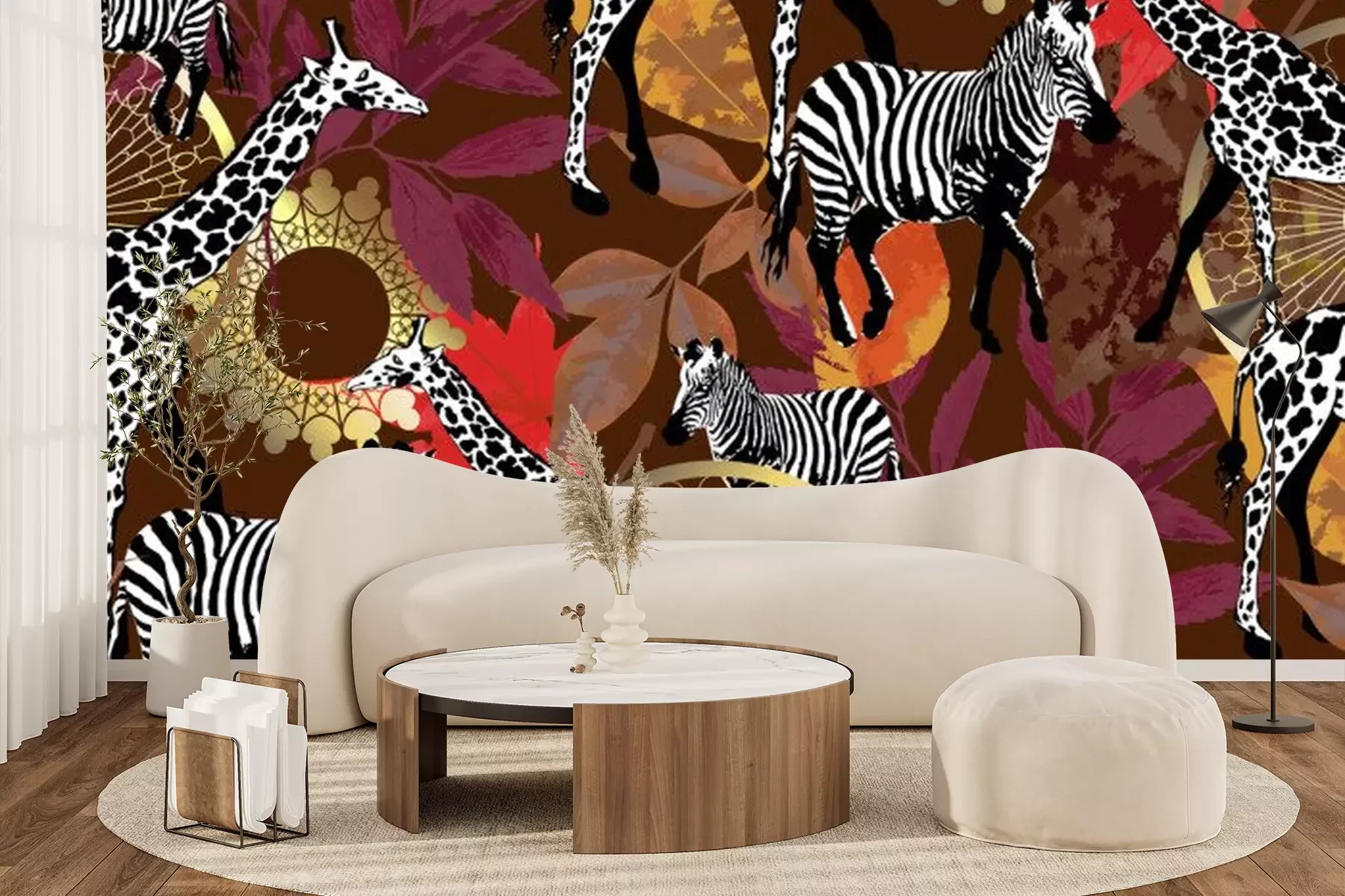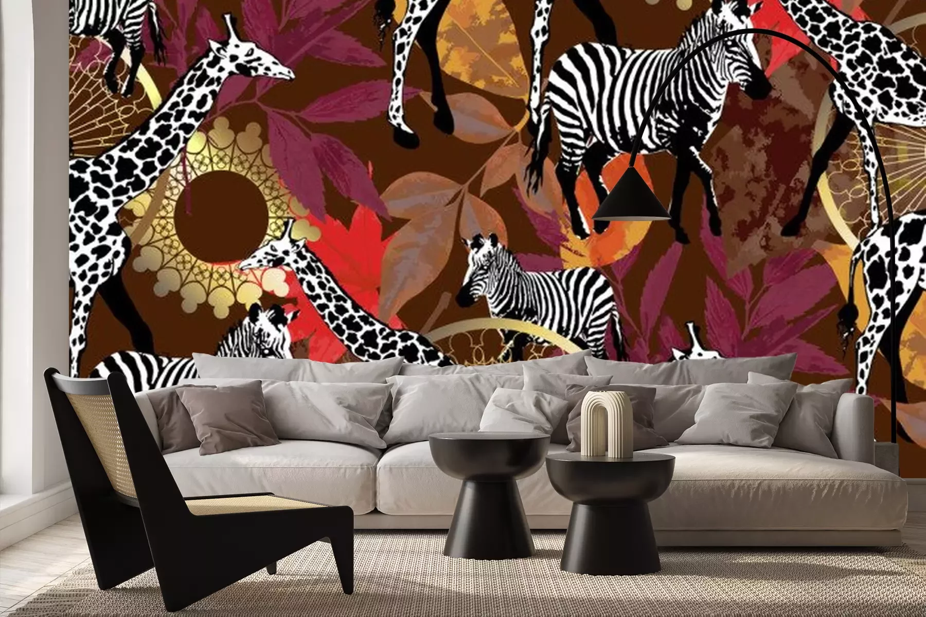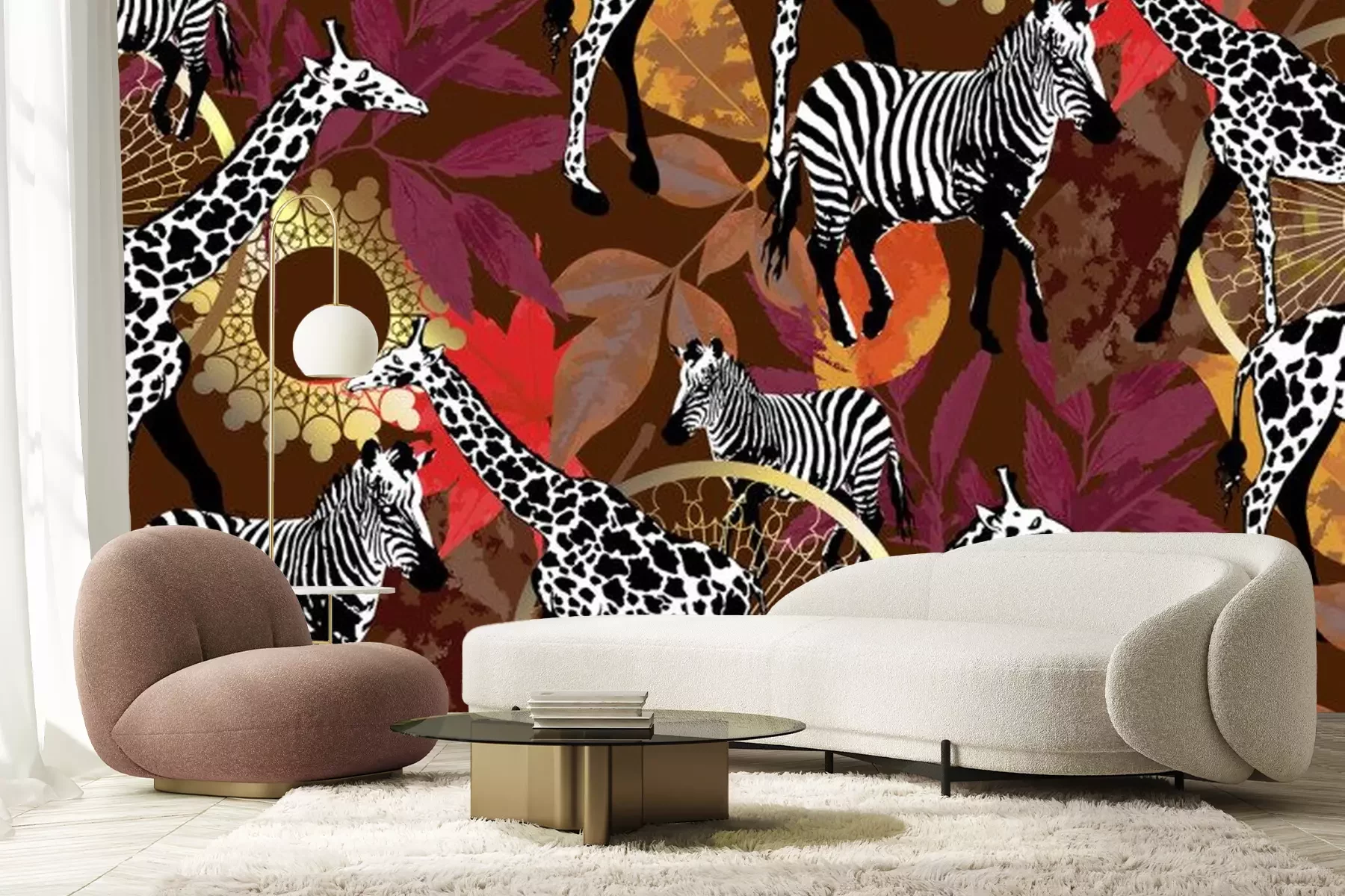 Fotobehang Zwart-witte dieren op een abstracte achtergrond