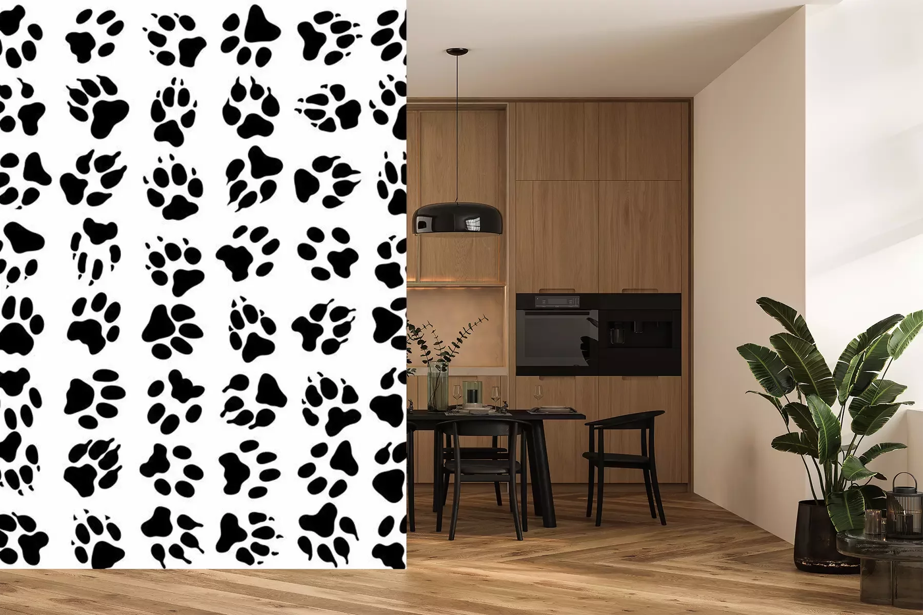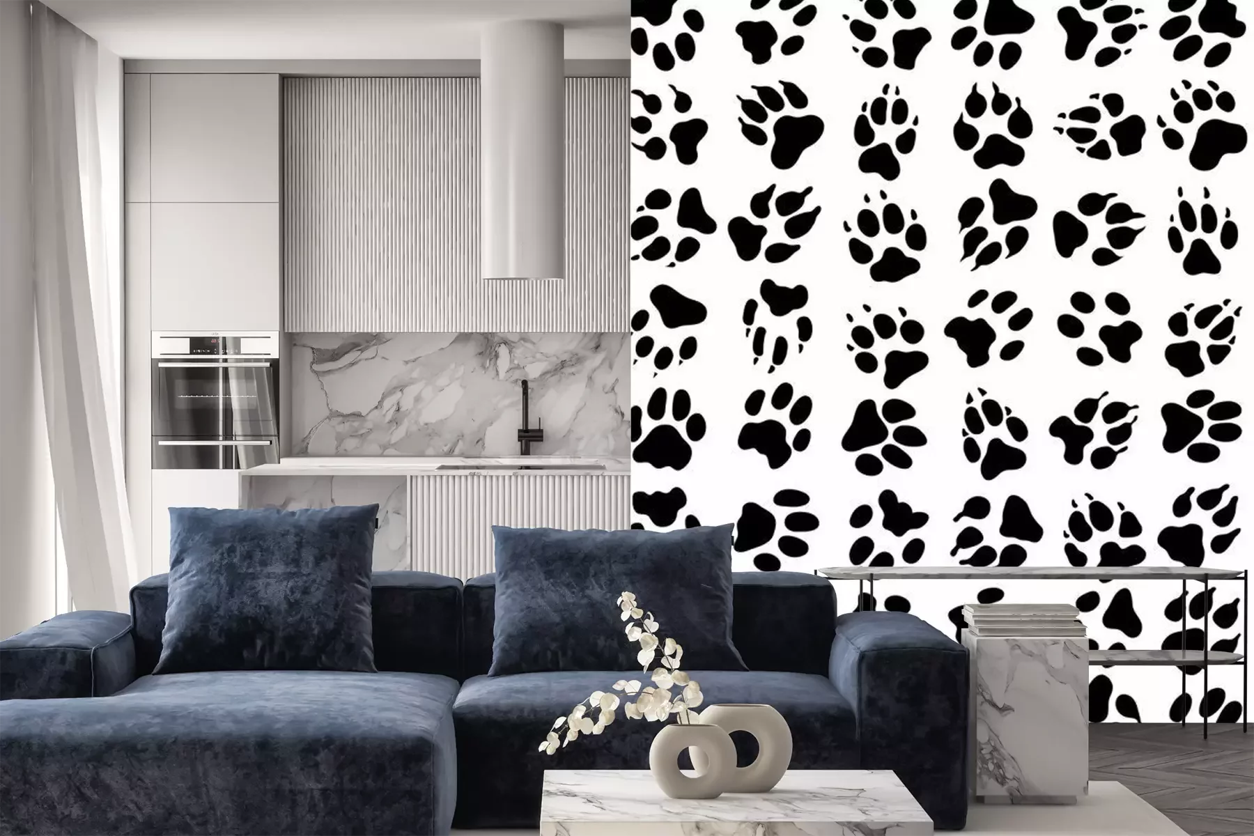 Fotobehang Zwart-witte kattenpootjes