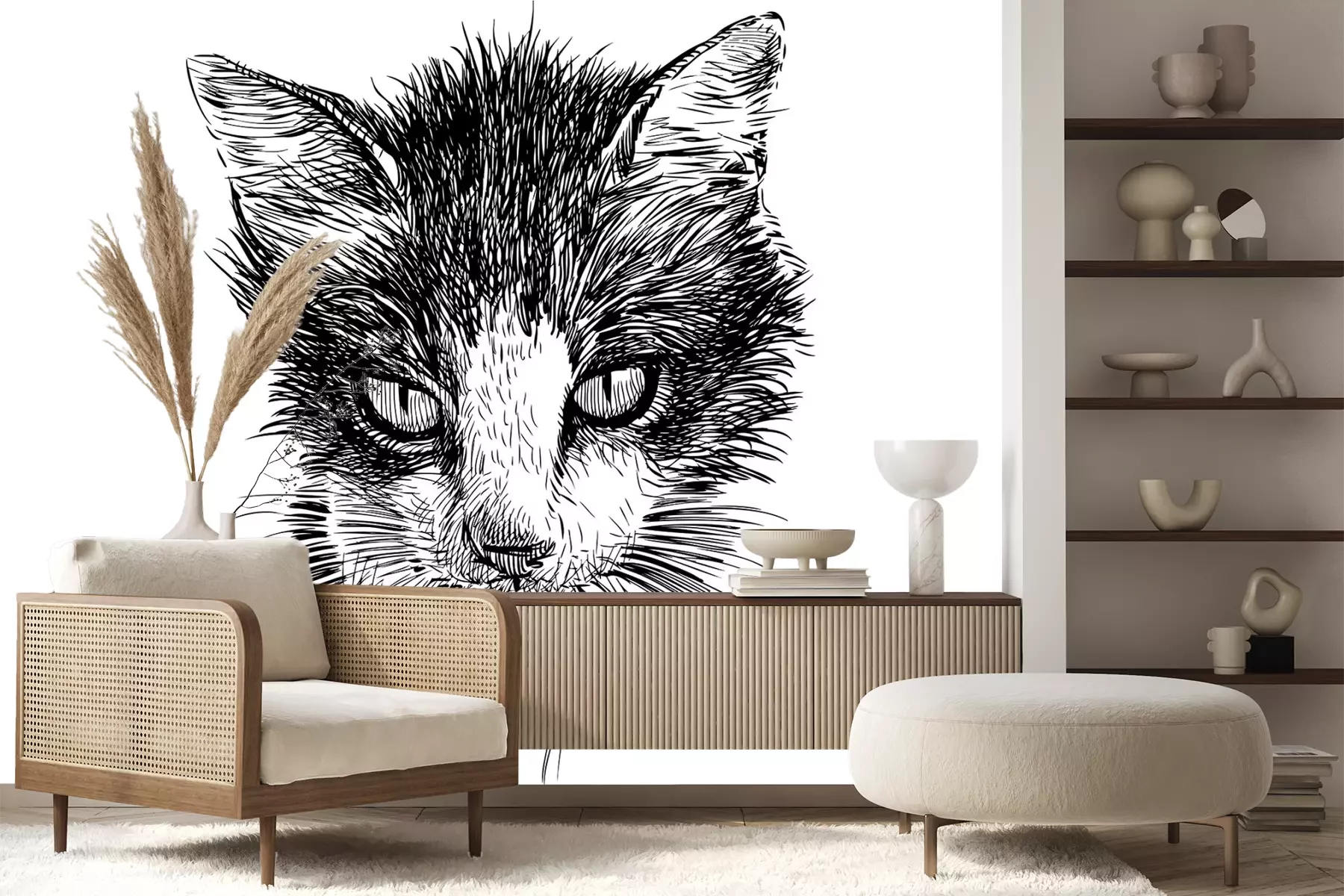 Het materiaal Premium+ is een gestructureerd vinyl op vlies met een gewicht van 255 g/m², dat kleine oneffenheden in de muur effectief camoufleert. De subtiele structuur van fijn zand geeft het oppervlak een exclusieve uitstraling, terwijl de halfmatte afwerking de diepte van de kleuren benadrukt. Het materiaal is dampdoorlatend, waardoor het ook in de keuken en badkamer kan worden gebruikt. De maximale breedte van één baan bedraagt 100 cm – bij grotere afmetingen wordt het fotobehang in meerdere gelijke banen verdeeld. De lijm wordt direct op de muur aangebracht en het behang wordt rand-aan-rand geplakt, wat zorgt voor een esthetisch resultaat zonder zichtbare naden. Het oppervlak kan gemakkelijk worden schoongemaakt door het voorzichtig af te nemen met een vochtige doek.
