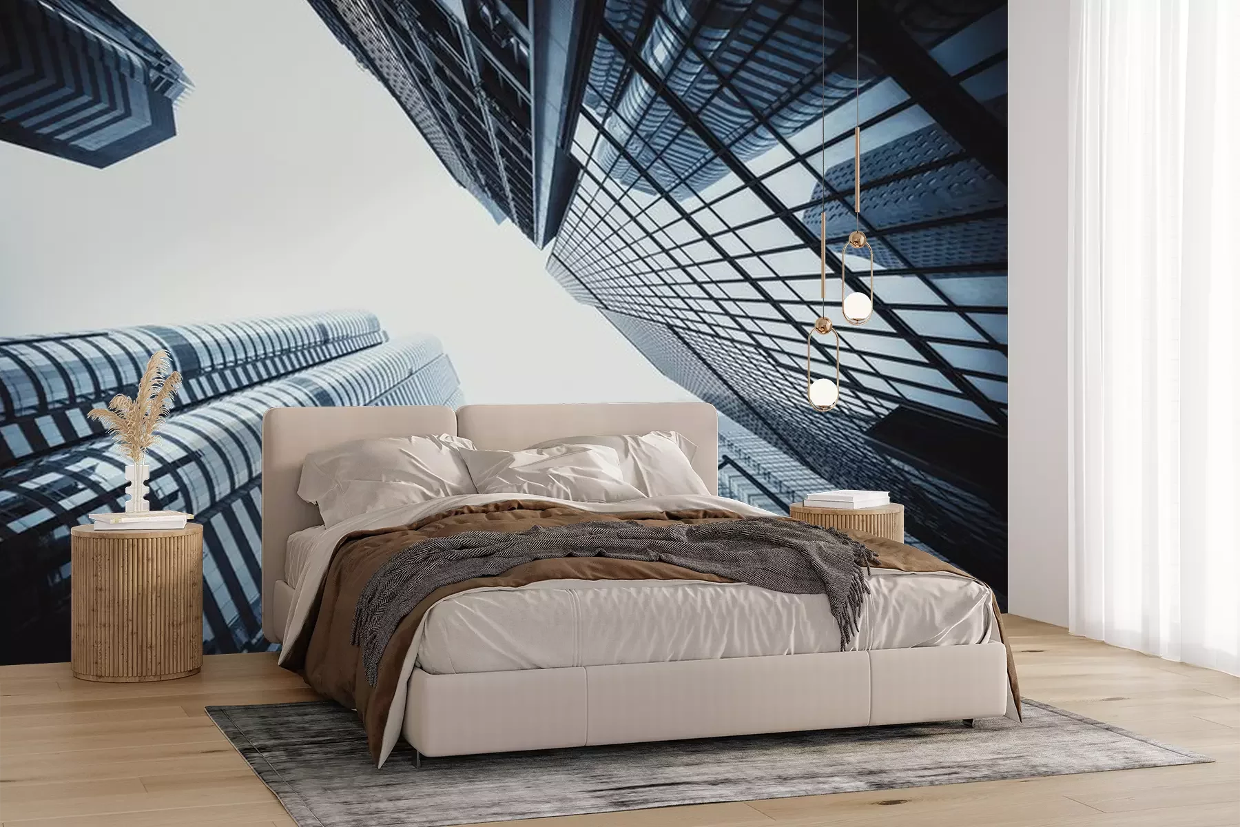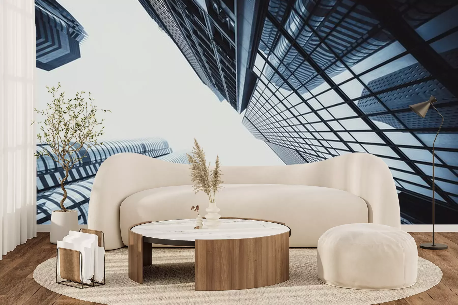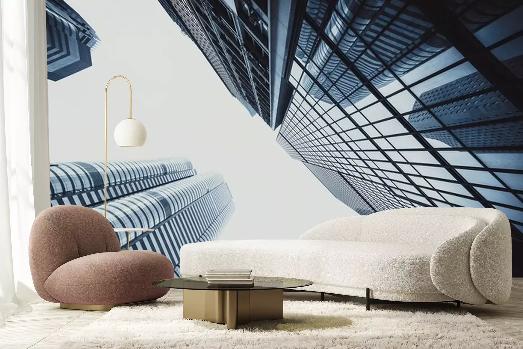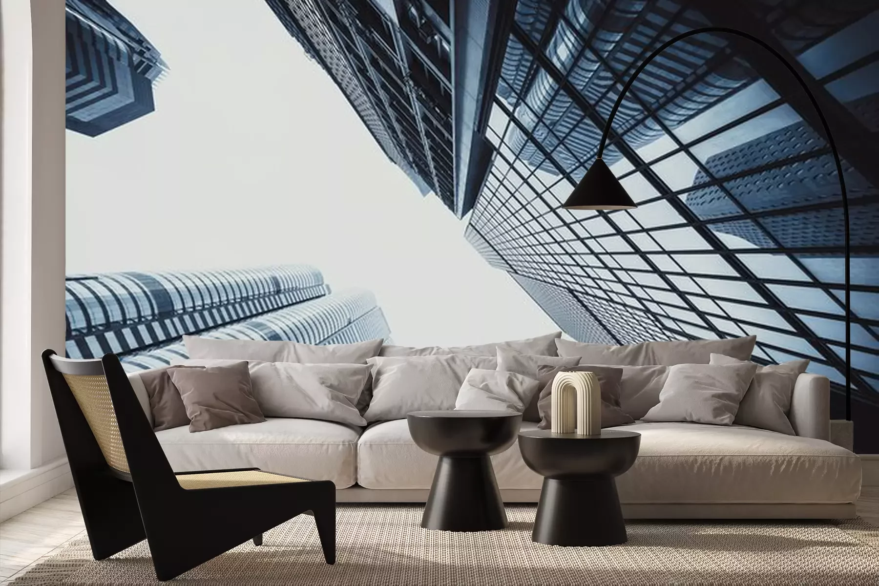 Fotobehang Zwart-witte wolkenkrabbers in Hong Kong
