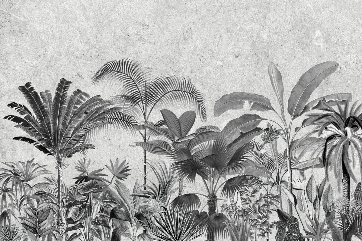 Fotobehang: Zwart-witweergave van tropische planten