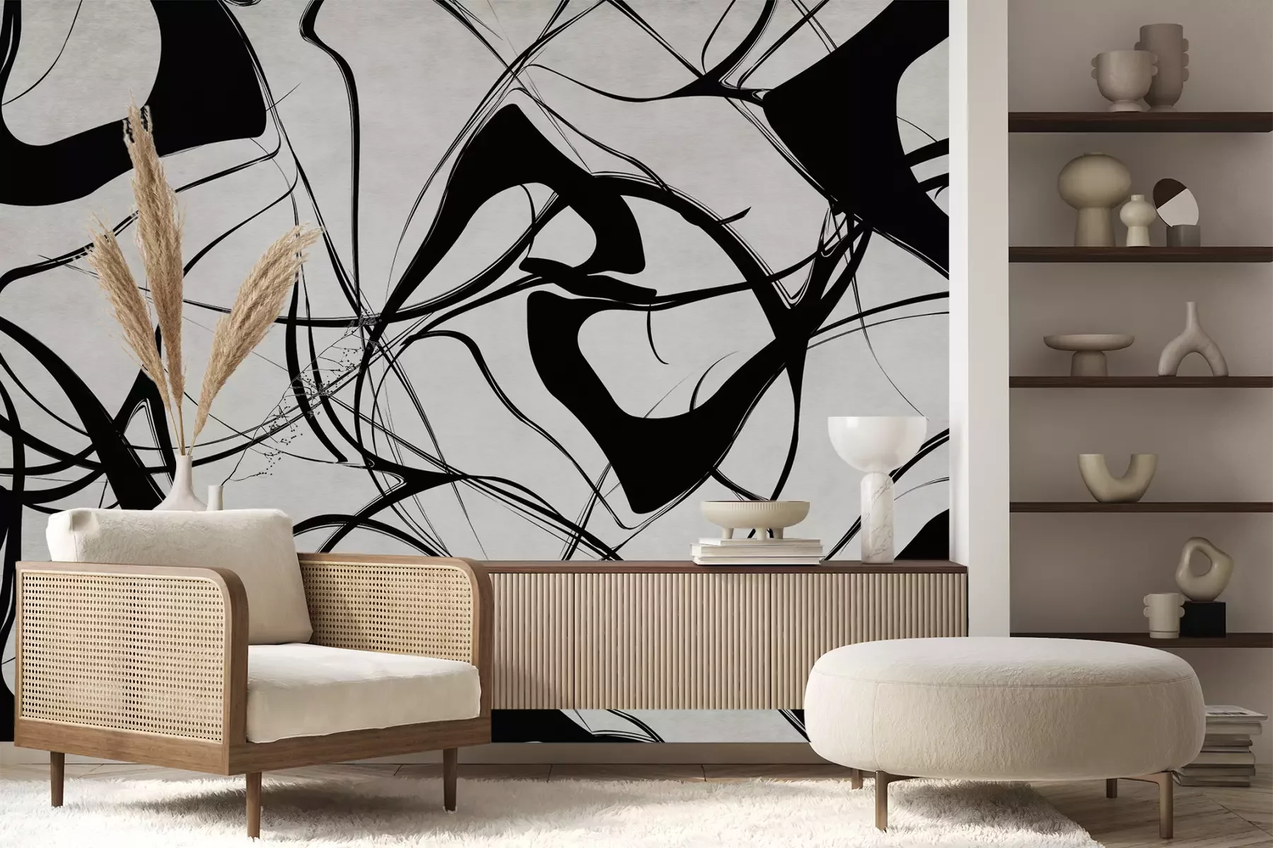 Het materiaal Premium+ is een gestructureerd vinyl op vlies met een gewicht van 255 g/m², dat kleine oneffenheden in de muur effectief camoufleert. De subtiele structuur van fijn zand geeft het oppervlak een exclusieve uitstraling, terwijl de halfmatte afwerking de diepte van de kleuren benadrukt. Het materiaal is dampdoorlatend, waardoor het ook in de keuken en badkamer kan worden gebruikt. De maximale breedte van één baan bedraagt 100 cm – bij grotere afmetingen wordt het fotobehang in meerdere gelijke banen verdeeld. De lijm wordt direct op de muur aangebracht en het behang wordt rand-aan-rand geplakt, wat zorgt voor een esthetisch resultaat zonder zichtbare naden. Het oppervlak kan gemakkelijk worden schoongemaakt door het voorzichtig af te nemen met een vochtige doek.