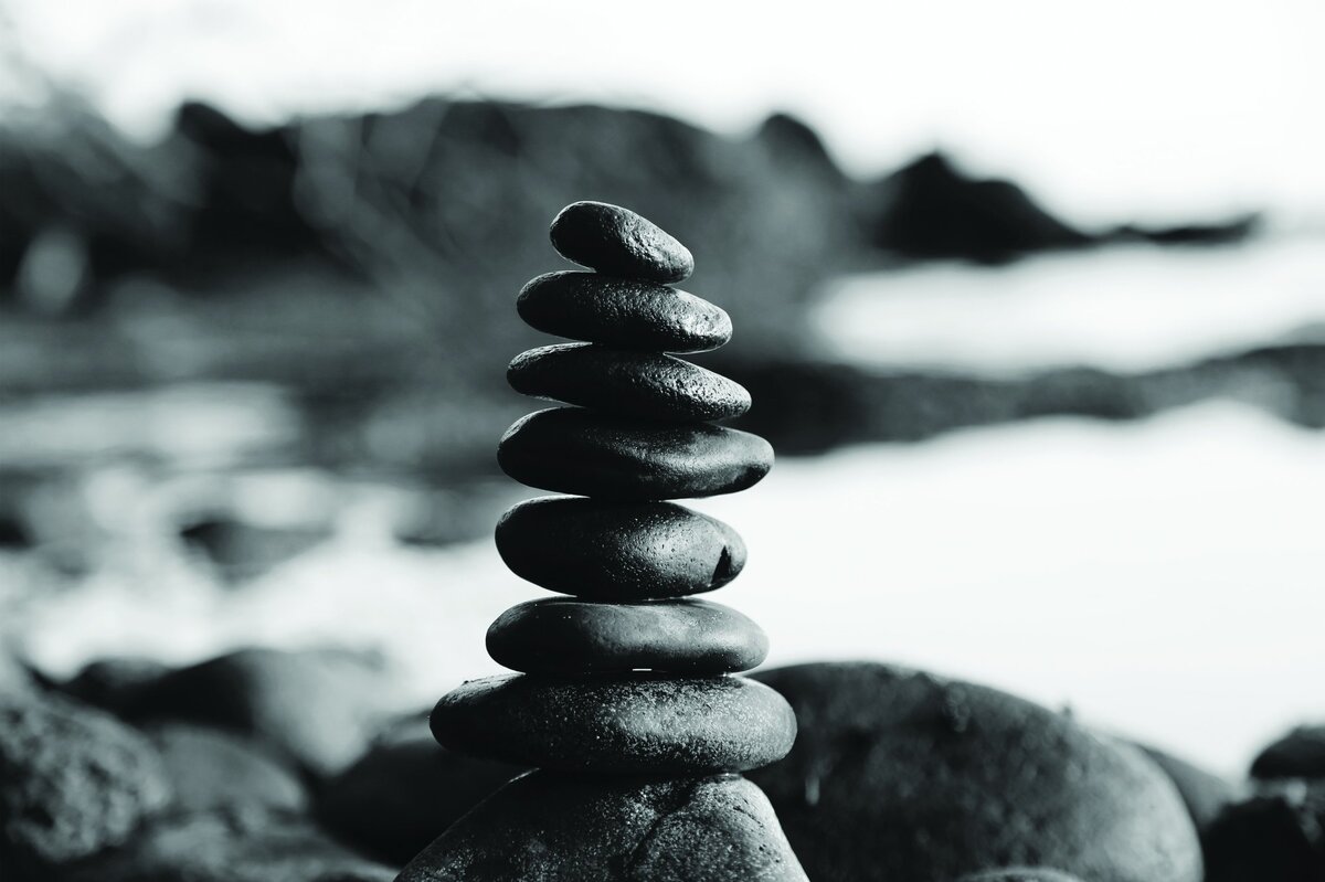 Fotobehang: Zwarte en witte kiezels tegen de achtergrond van de zee