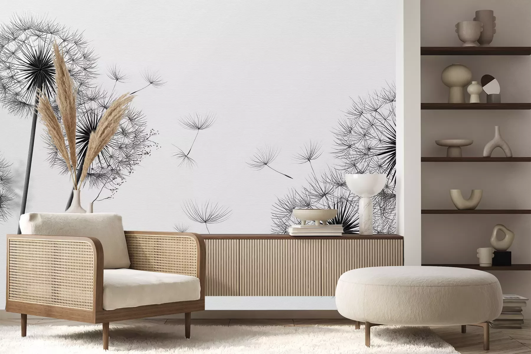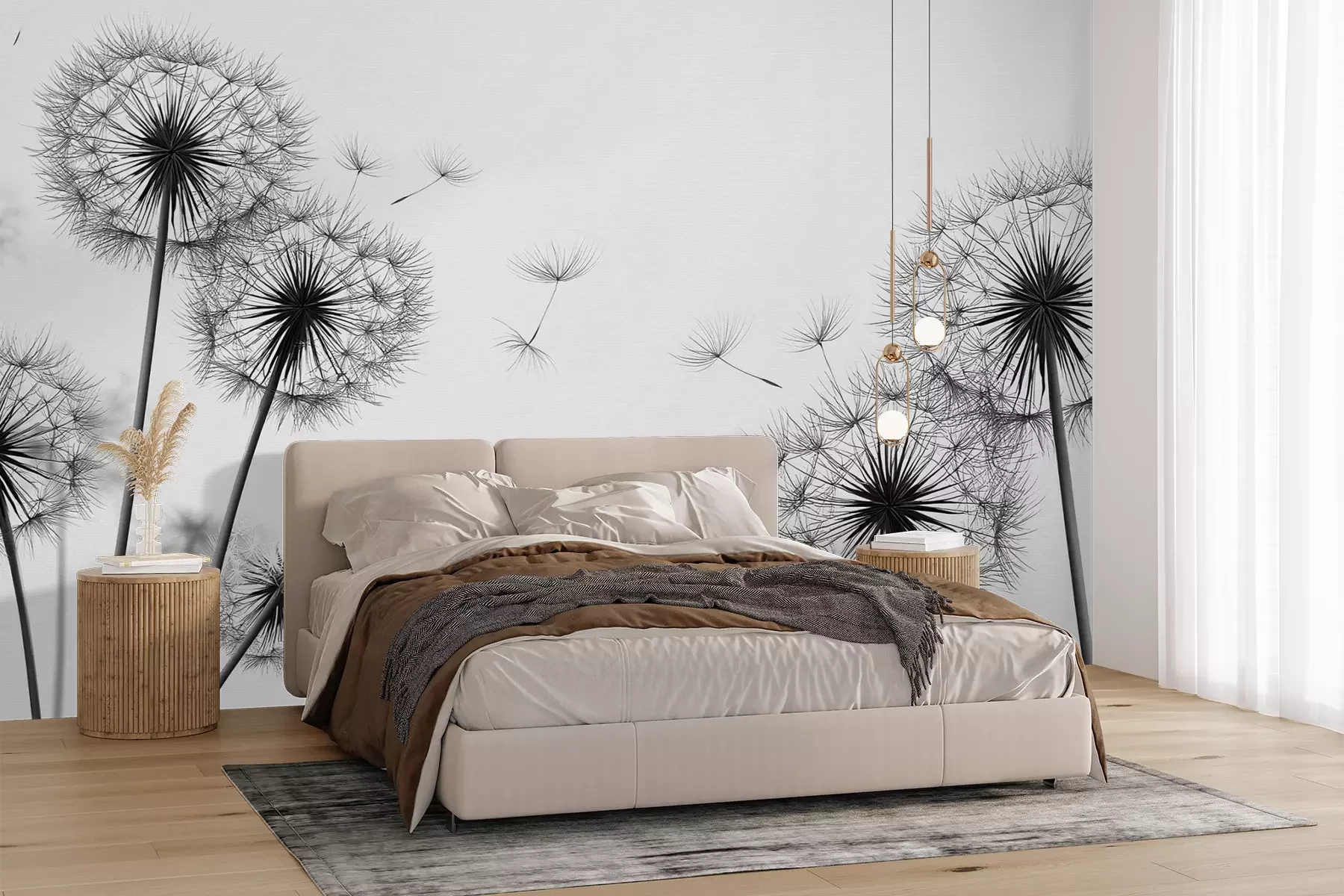 Het materiaal Premium+ is een gestructureerd vinyl op vlies met een gewicht van 255 g/m², dat kleine oneffenheden in de muur effectief camoufleert. De subtiele structuur van fijn zand geeft het oppervlak een exclusieve uitstraling, terwijl de halfmatte afwerking de diepte van de kleuren benadrukt. Het materiaal is dampdoorlatend, waardoor het ook in de keuken en badkamer kan worden gebruikt. De maximale breedte van één baan bedraagt 100 cm – bij grotere afmetingen wordt het fotobehang in meerdere gelijke banen verdeeld. De lijm wordt direct op de muur aangebracht en het behang wordt rand-aan-rand geplakt, wat zorgt voor een esthetisch resultaat zonder zichtbare naden. Het oppervlak kan gemakkelijk worden schoongemaakt door het voorzichtig af te nemen met een vochtige doek.