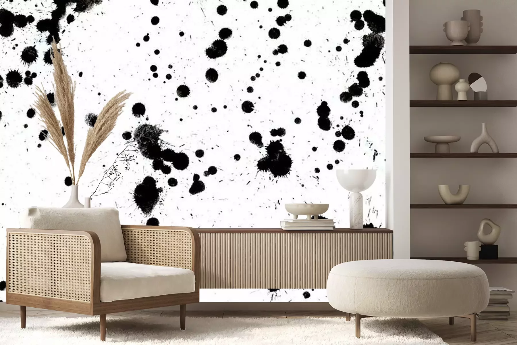 Het materiaal Standard is een hoogwaardig latexmateriaal met een glad, mat oppervlak. Dankzij de HP Latex-printtechnologie zijn de kleuren intens, duurzaam en UV-bestendig, waardoor het patroon jarenlang een onberispelijke uitstraling behoudt. Vervuilde oppervlakken kunnen voorzichtig worden afgeveegd met een droge doek. De maximale breedte van één baan bedraagt 95 cm of 105 cm – afhankelijk van de bestelde fotobehangbreedte. Bij grotere afmetingen wordt het patroon verdeeld over meerdere gelijkmatige banen. Het fotobehang wordt rand-aan-randaangebracht, wat vrijwel onzichtbare naden mogelijk maakt.