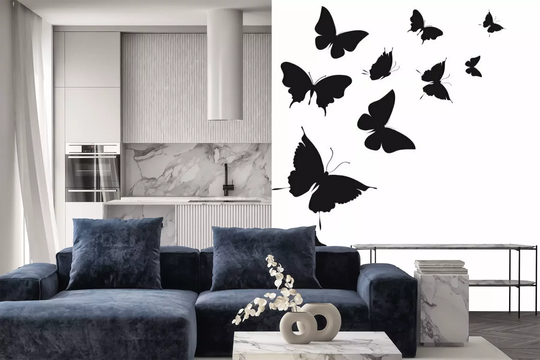 Fotobehang Zwarte vlinders op een lichte achtergrond