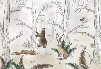 Schattige bosdieren en vogels voor kinderenFotobehang