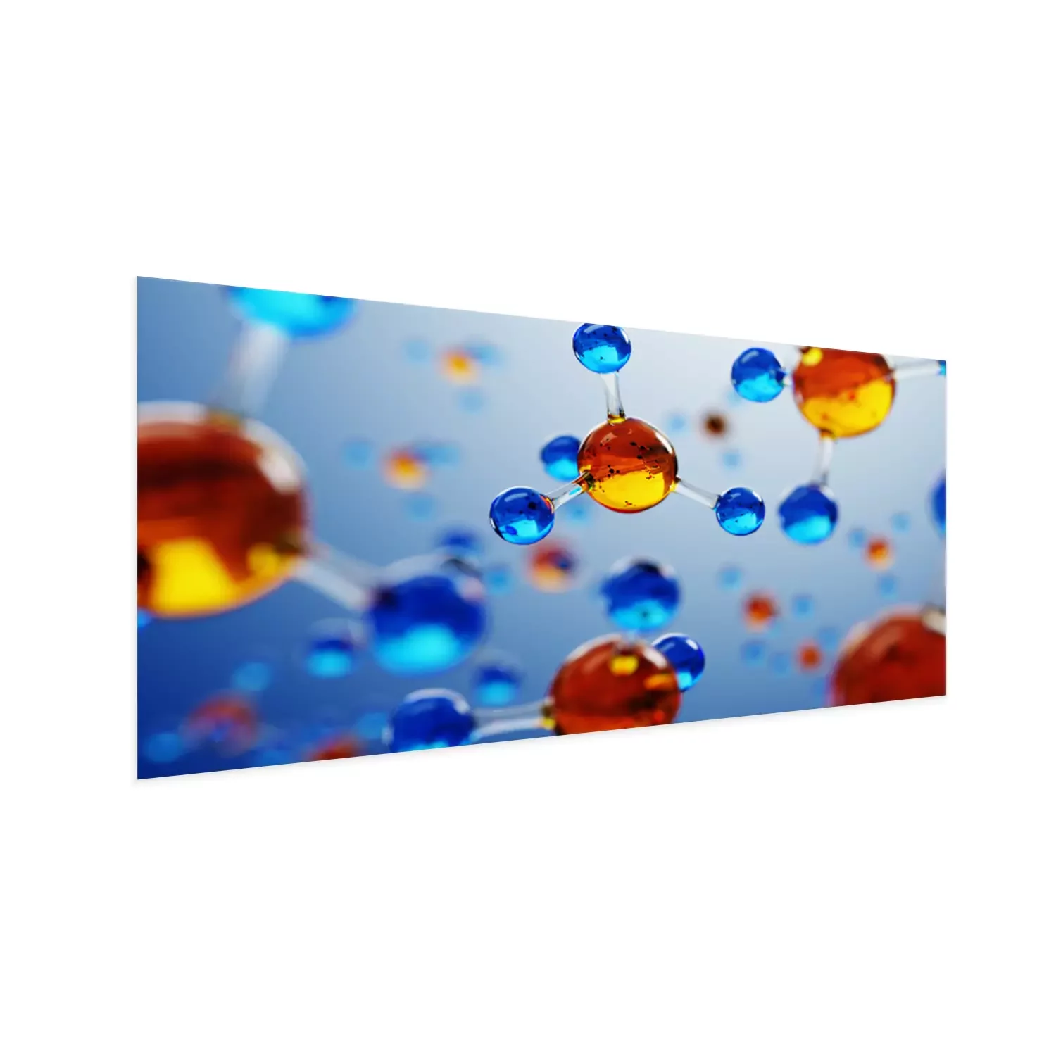Poster 3D-afbeelding van molecule model. Science achtergrond met moleculen en atomen.