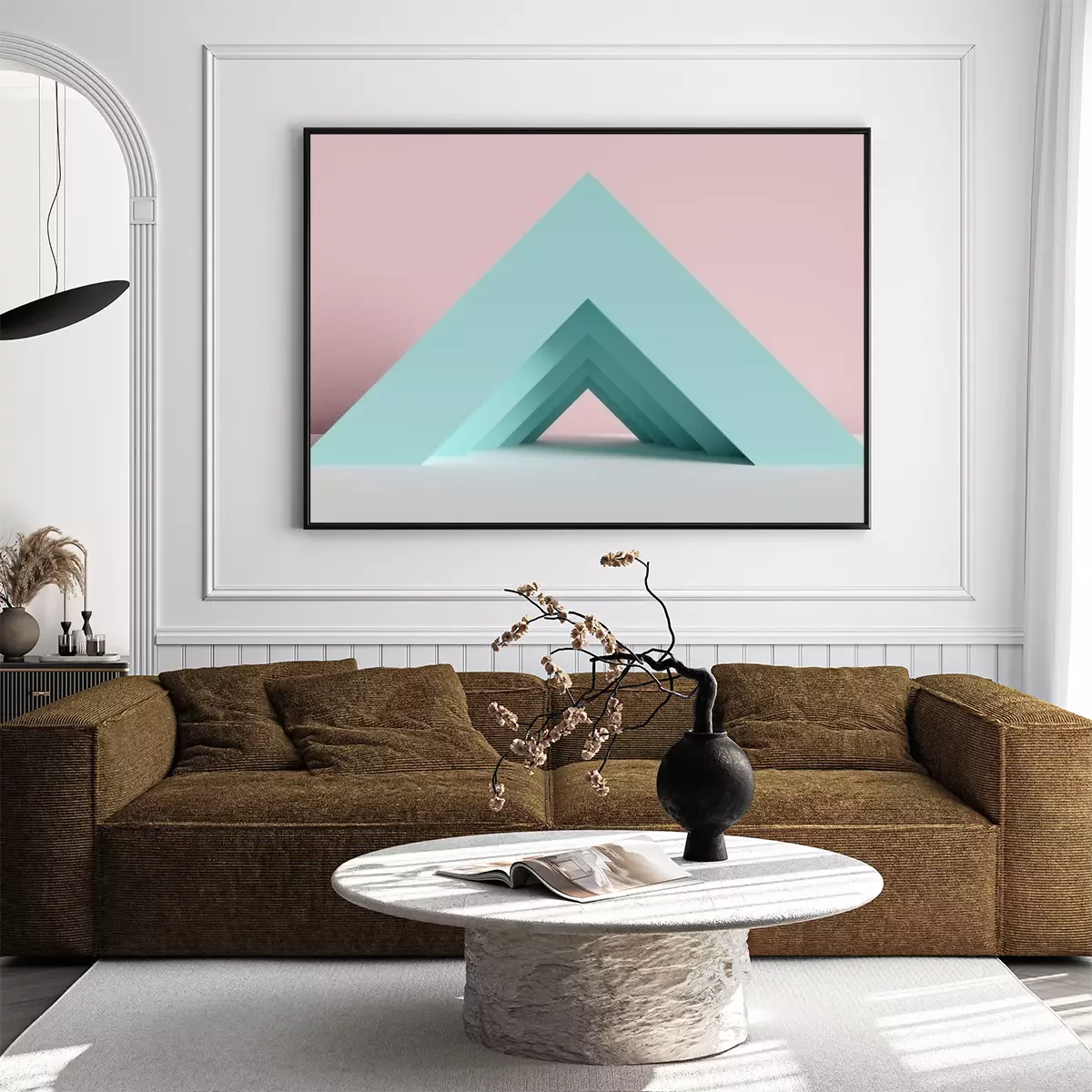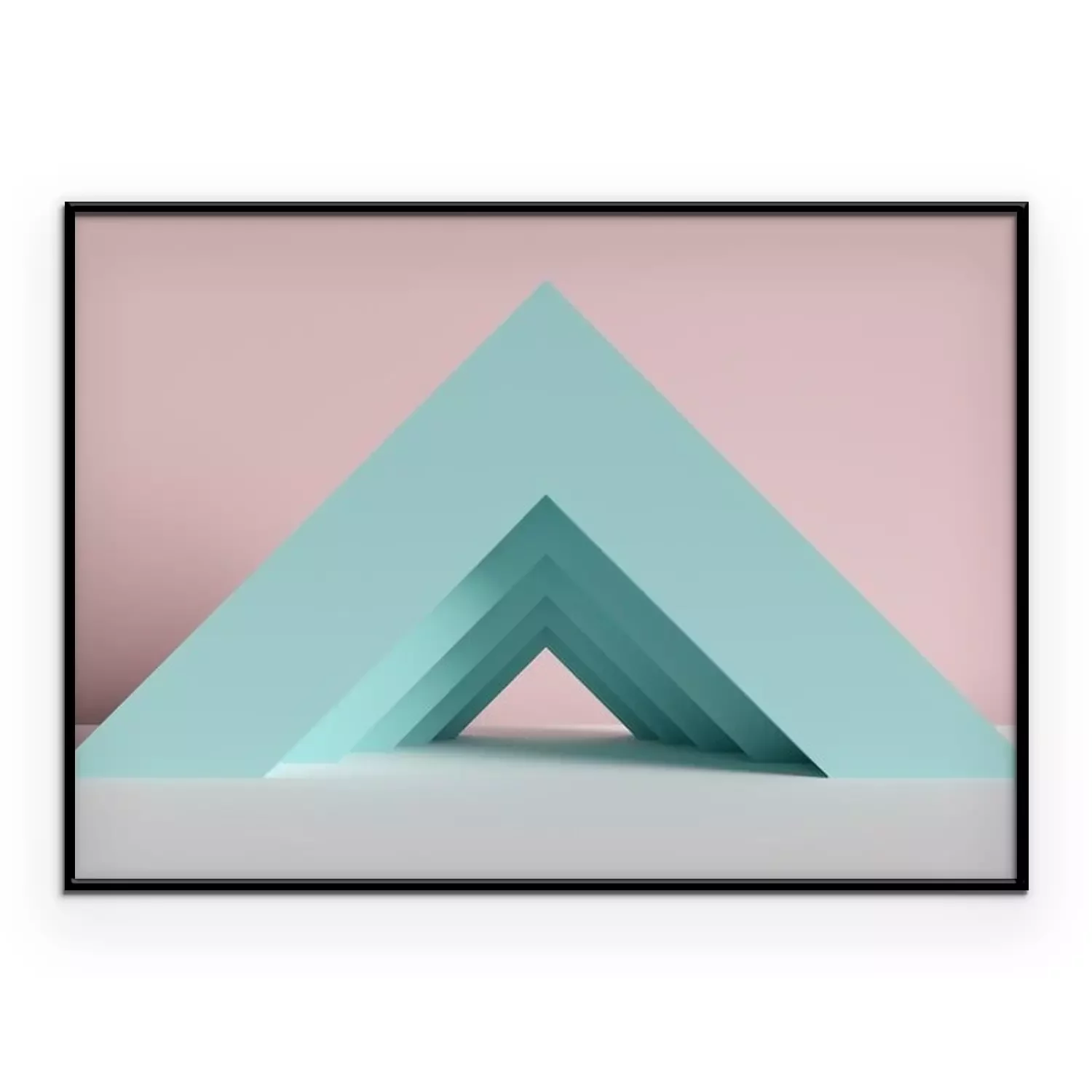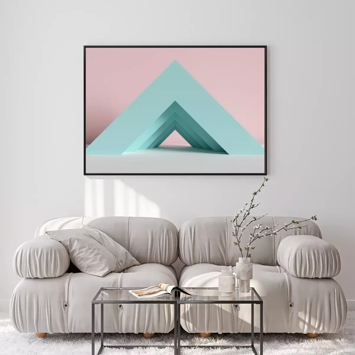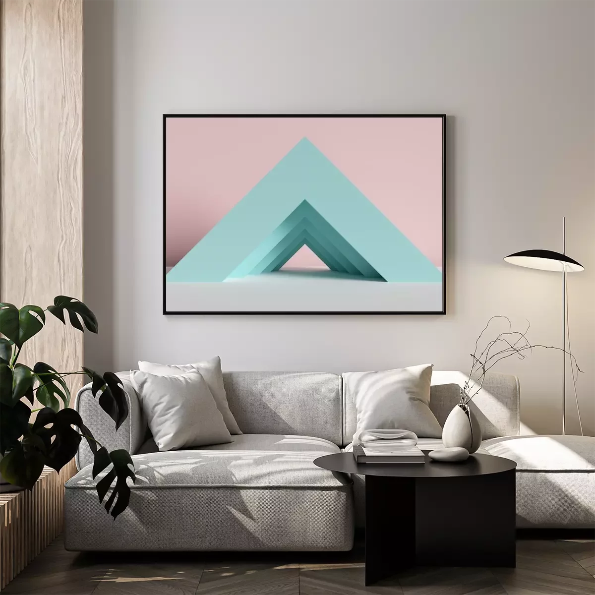Poster: 3d render, abstract background, triangle, corner, primitive geometric shapes, pastel color palette, simple mockup, minimal design elements
