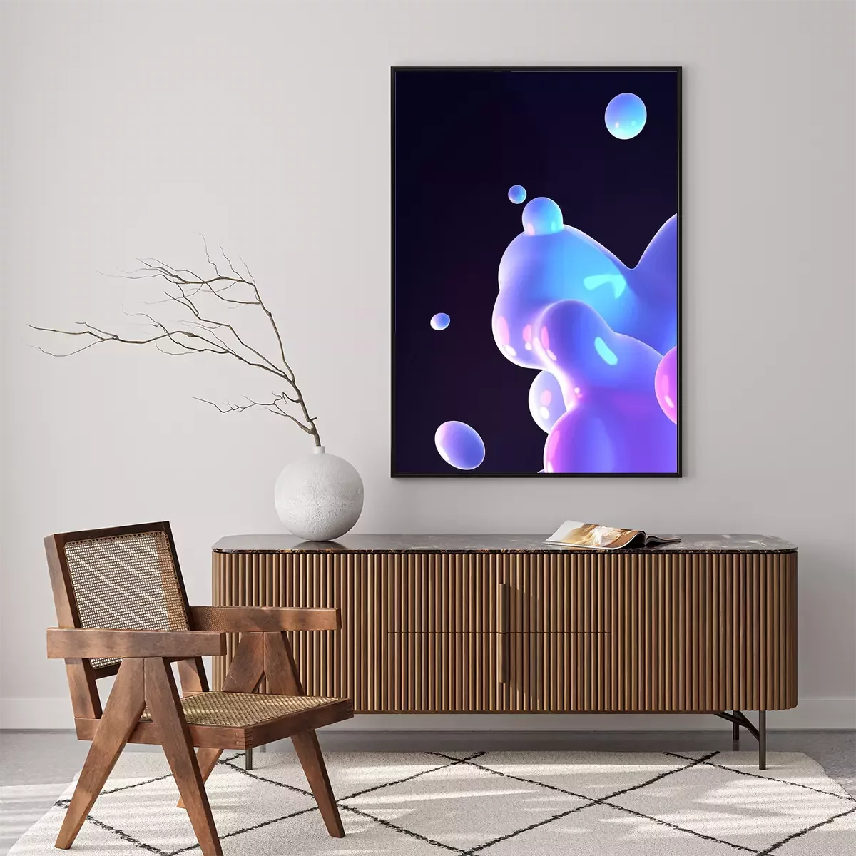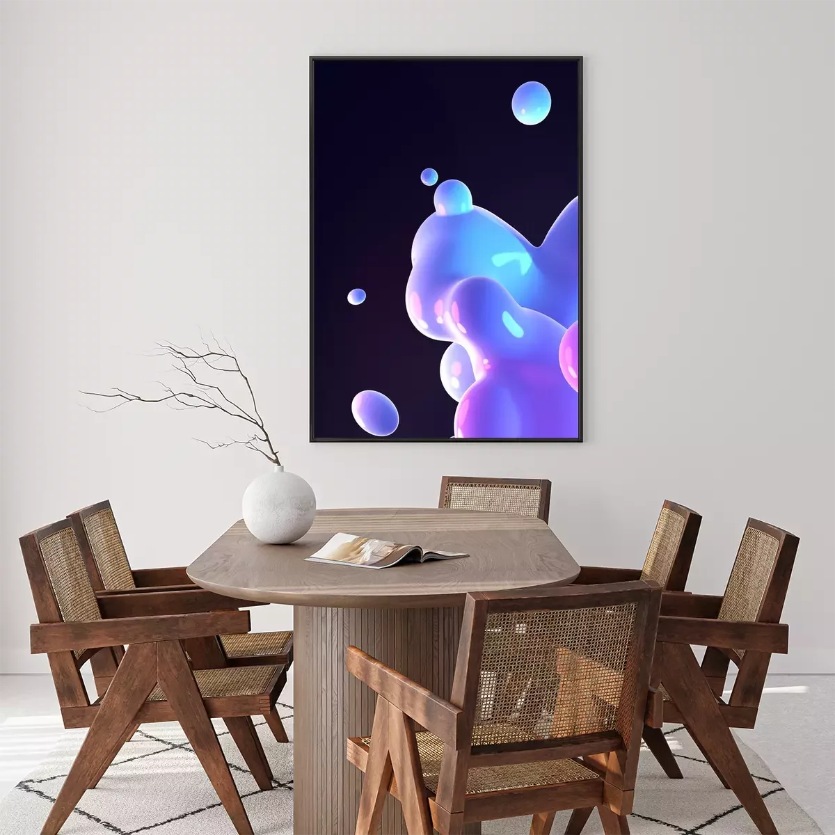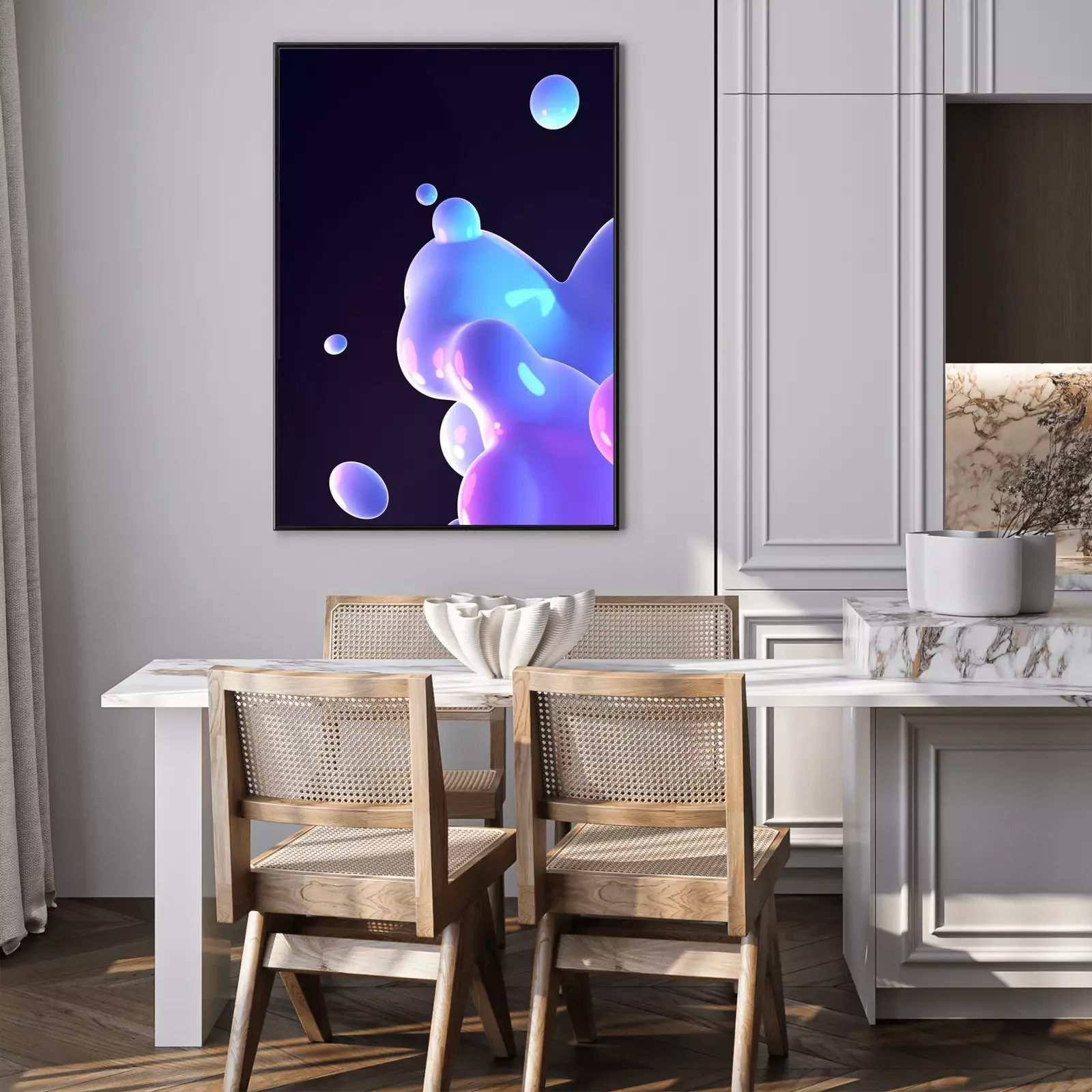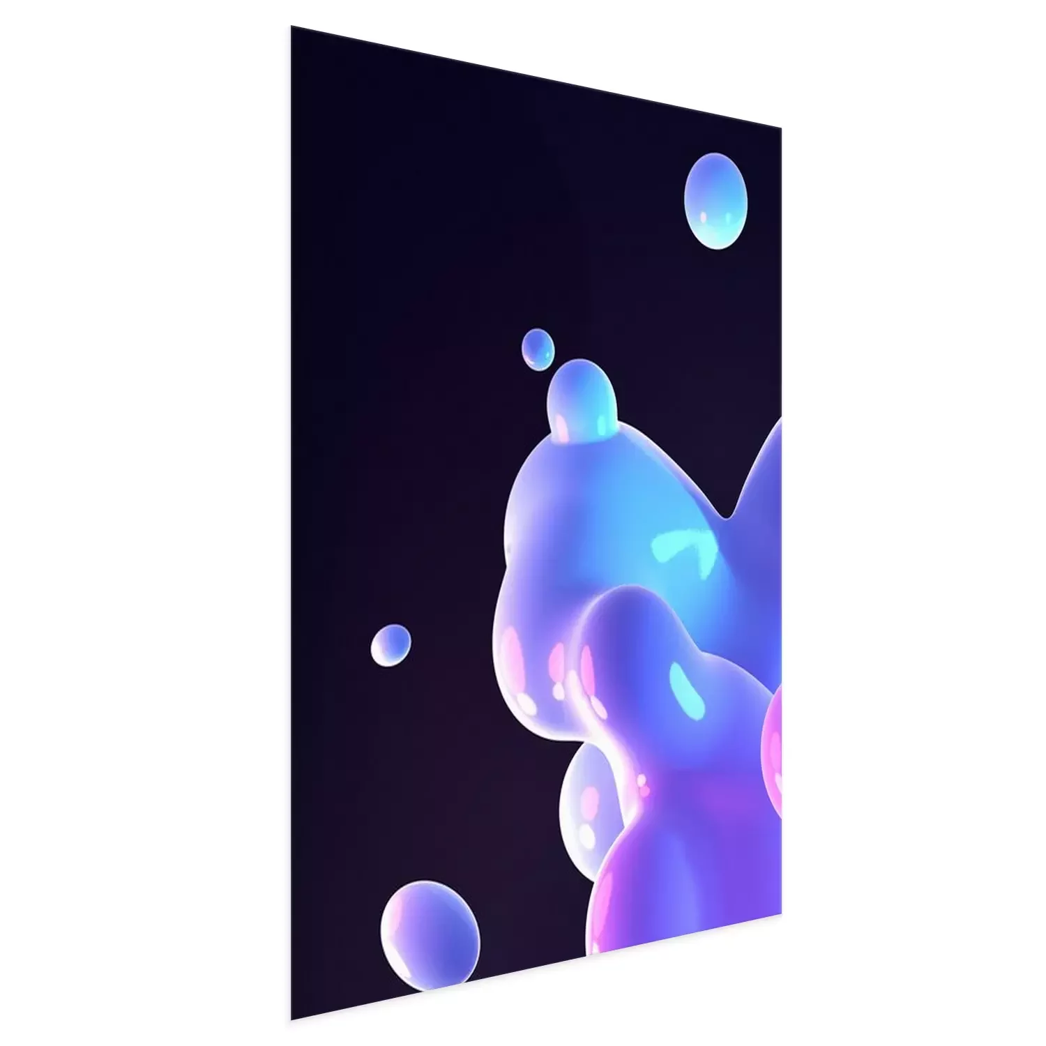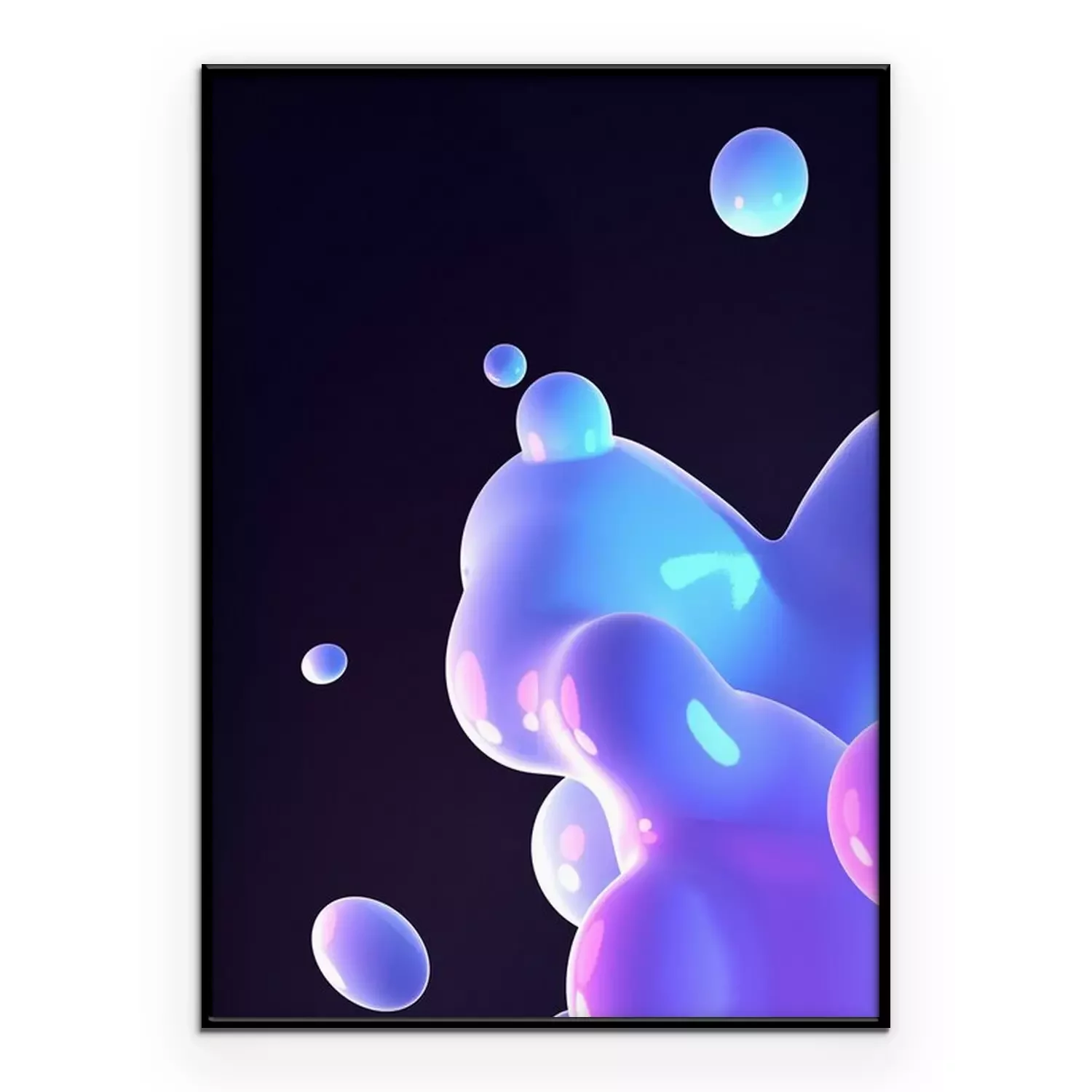 Poster: 3d render abstract blue and purple gradient color floating liquid blob close-up. (vertical)