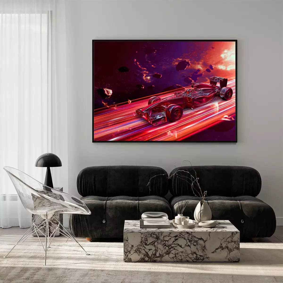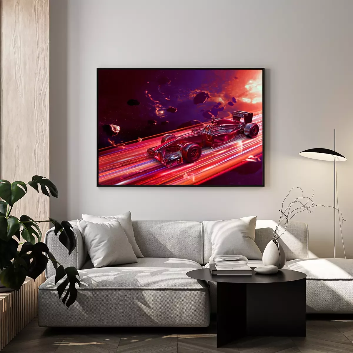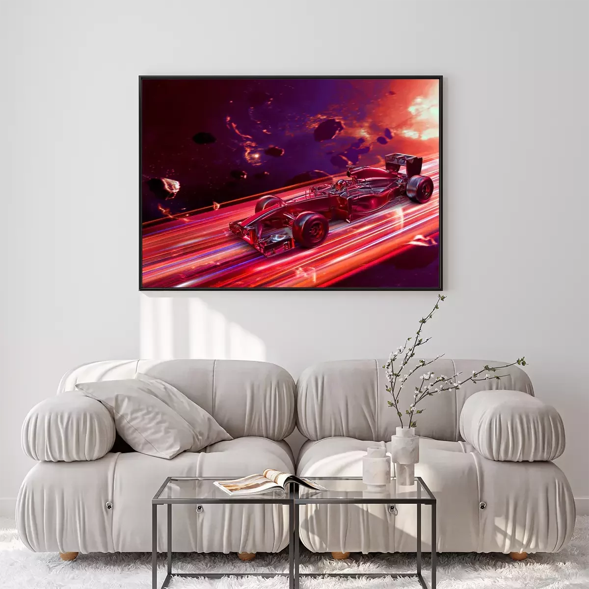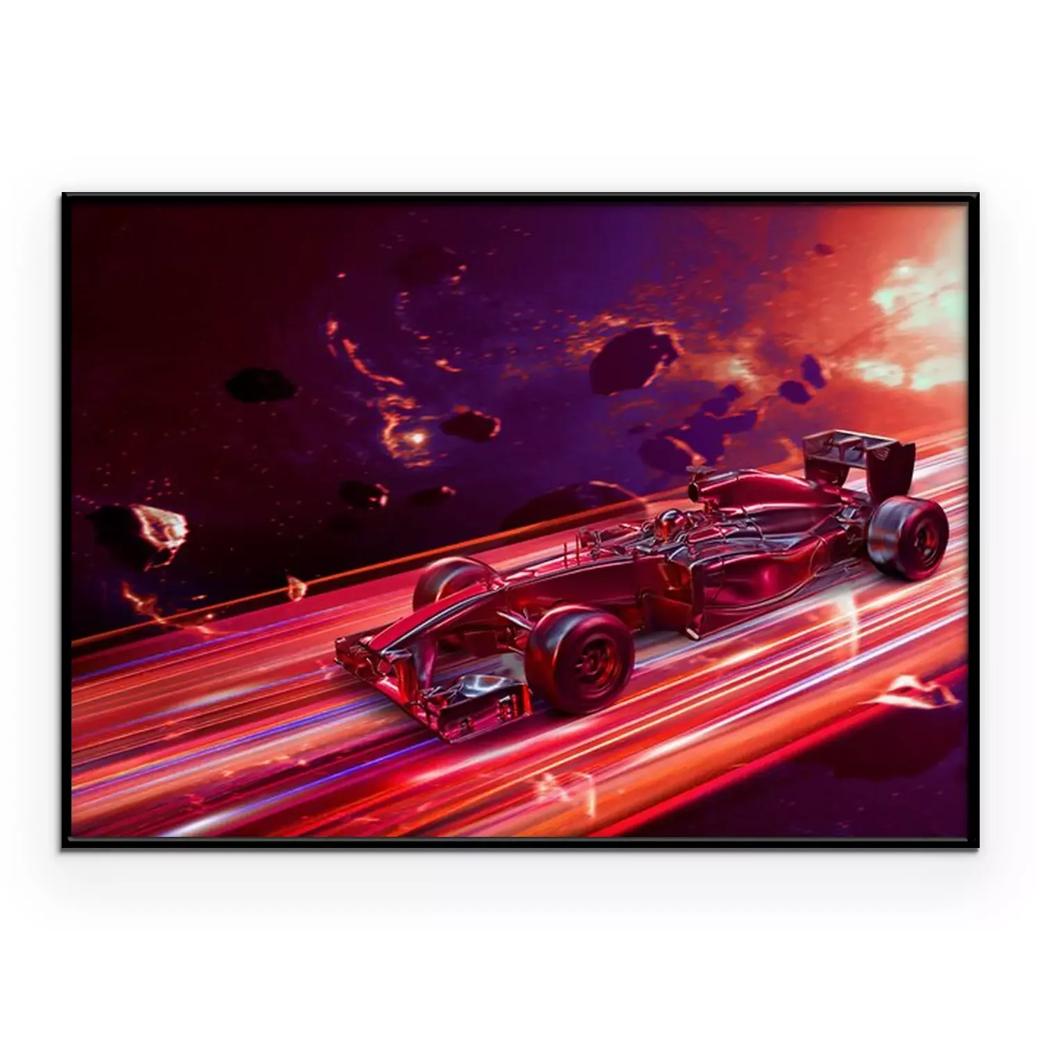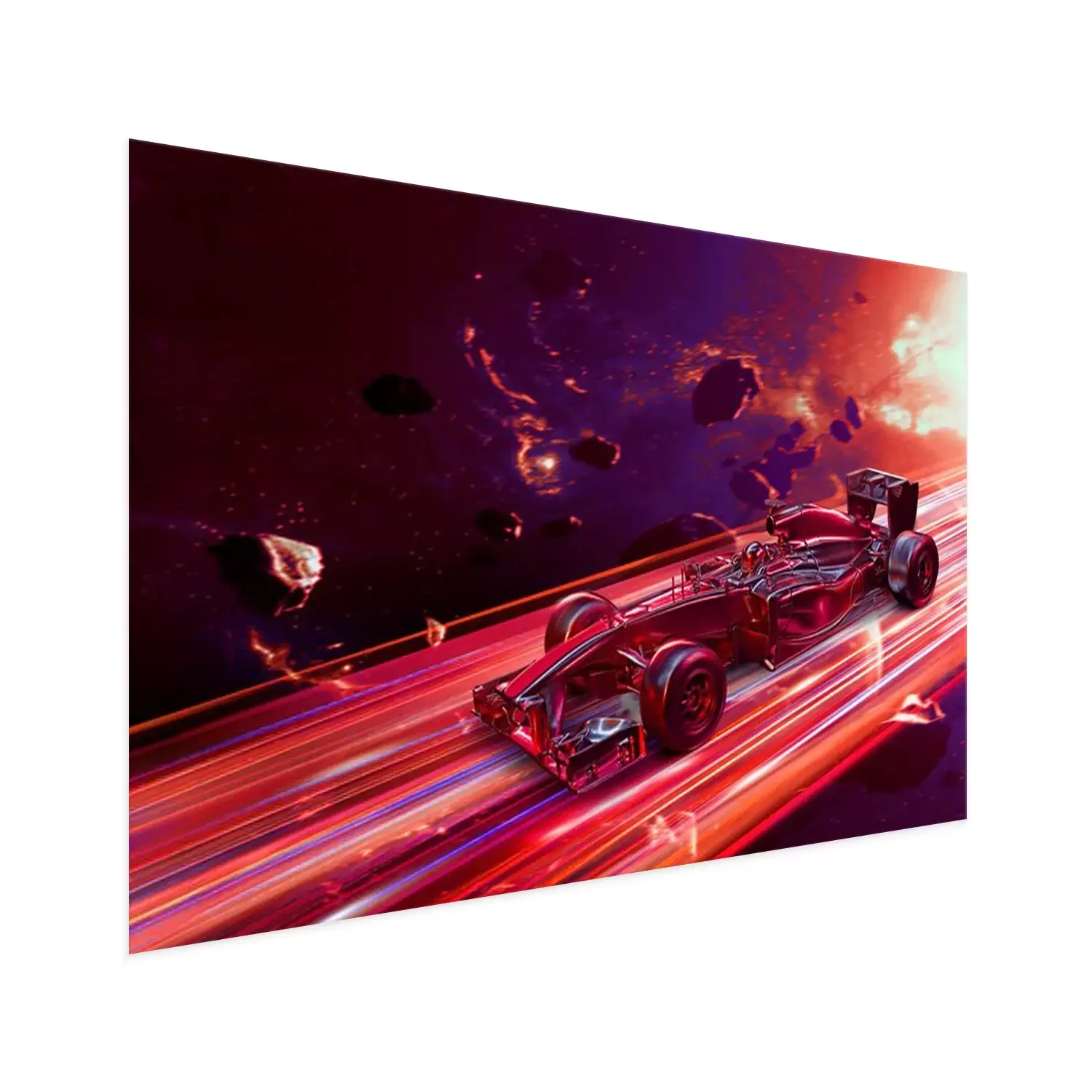 Poster 3D Render Illustration F1 Racing Car With Abstract Out Of Space  Speed Effect Background