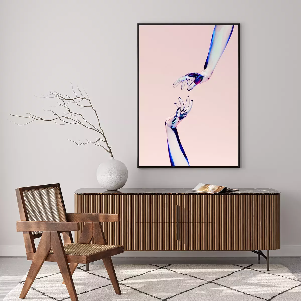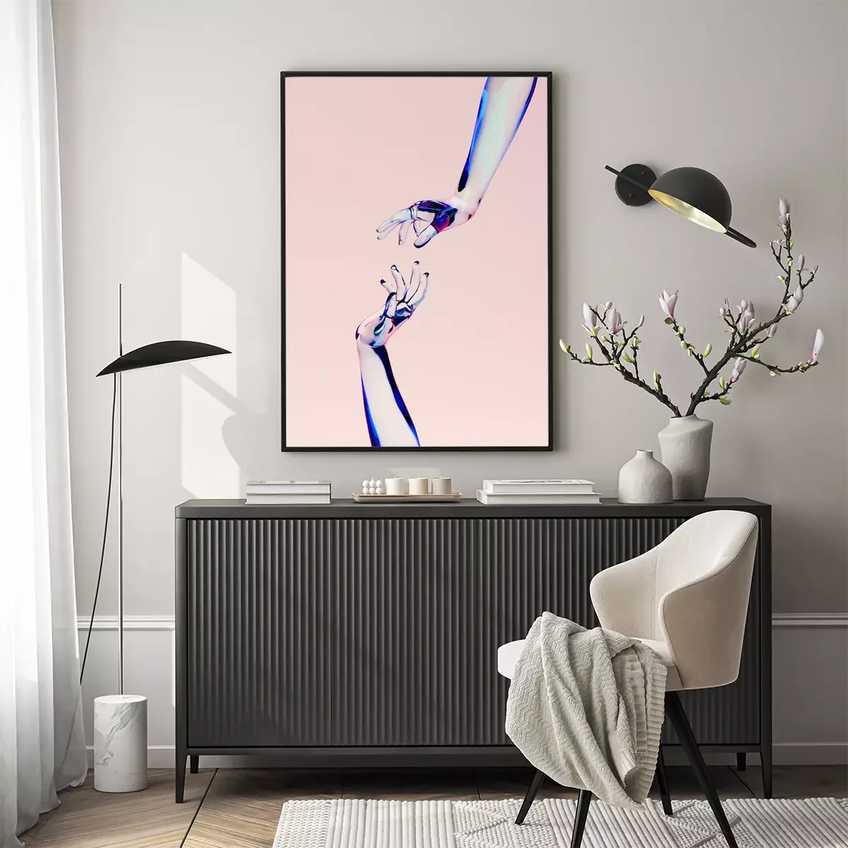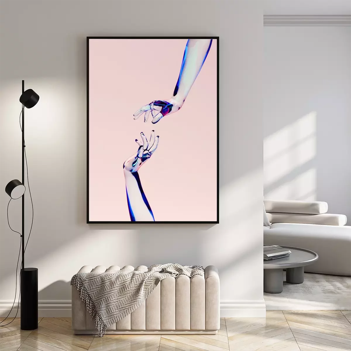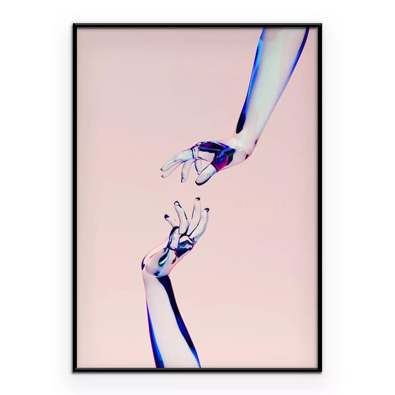 Poster: 3d rendering illustration of glass woman hands. Human body parts. Concept scene for graphic design projects. Modern look template, abstract idea. Free imagination. People artistic creative theme.