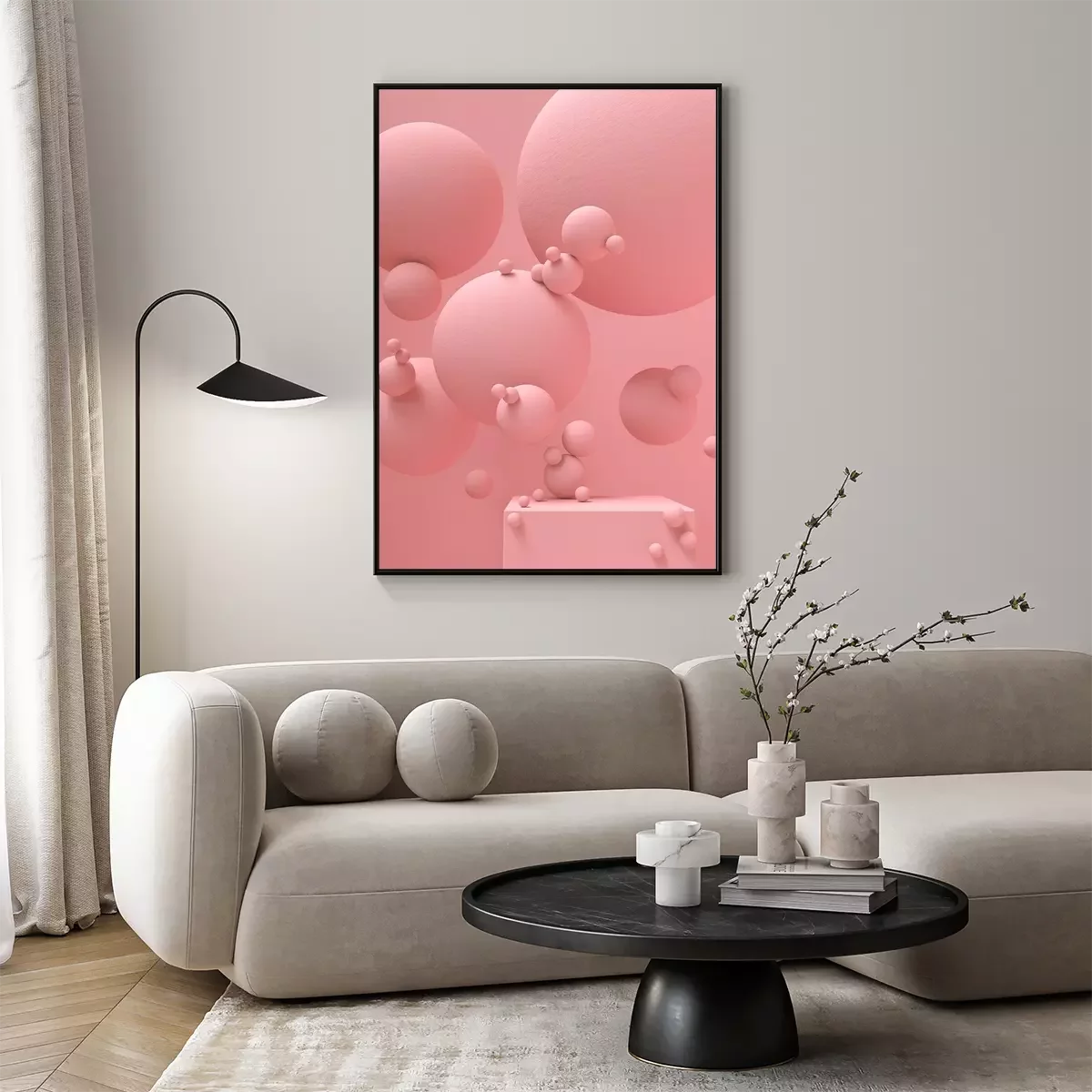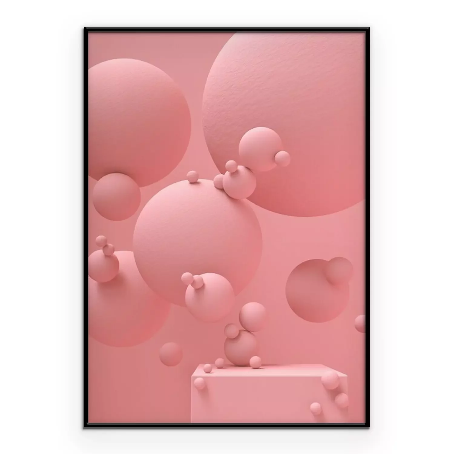 Poster: 3d rendering of pink podium display minimal scene, pastel color abstract geometric shape.