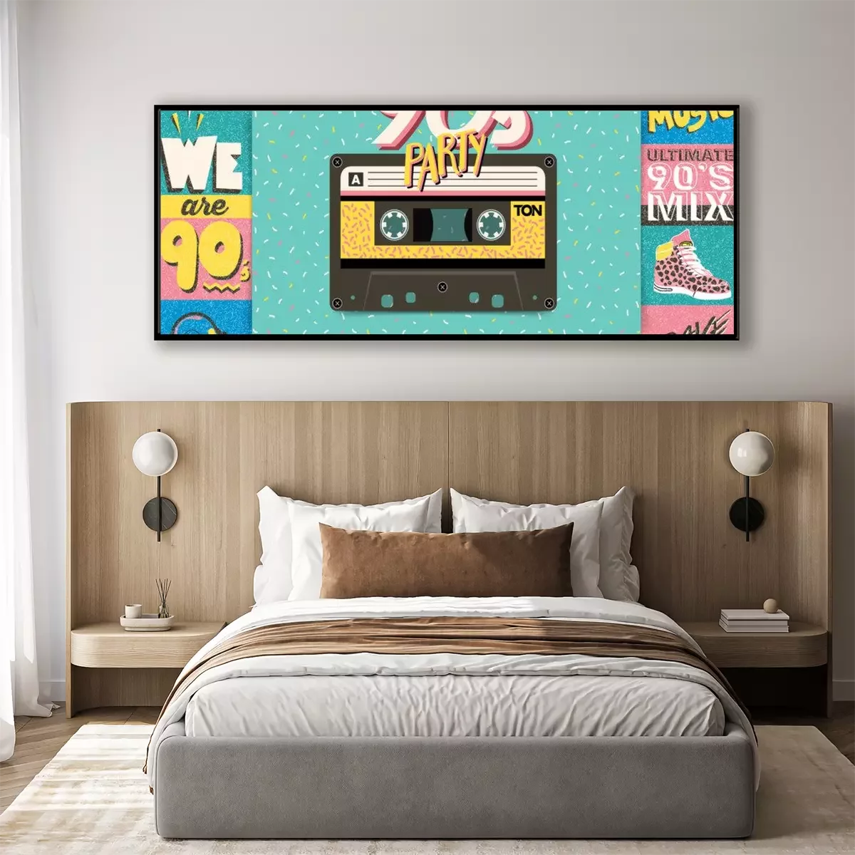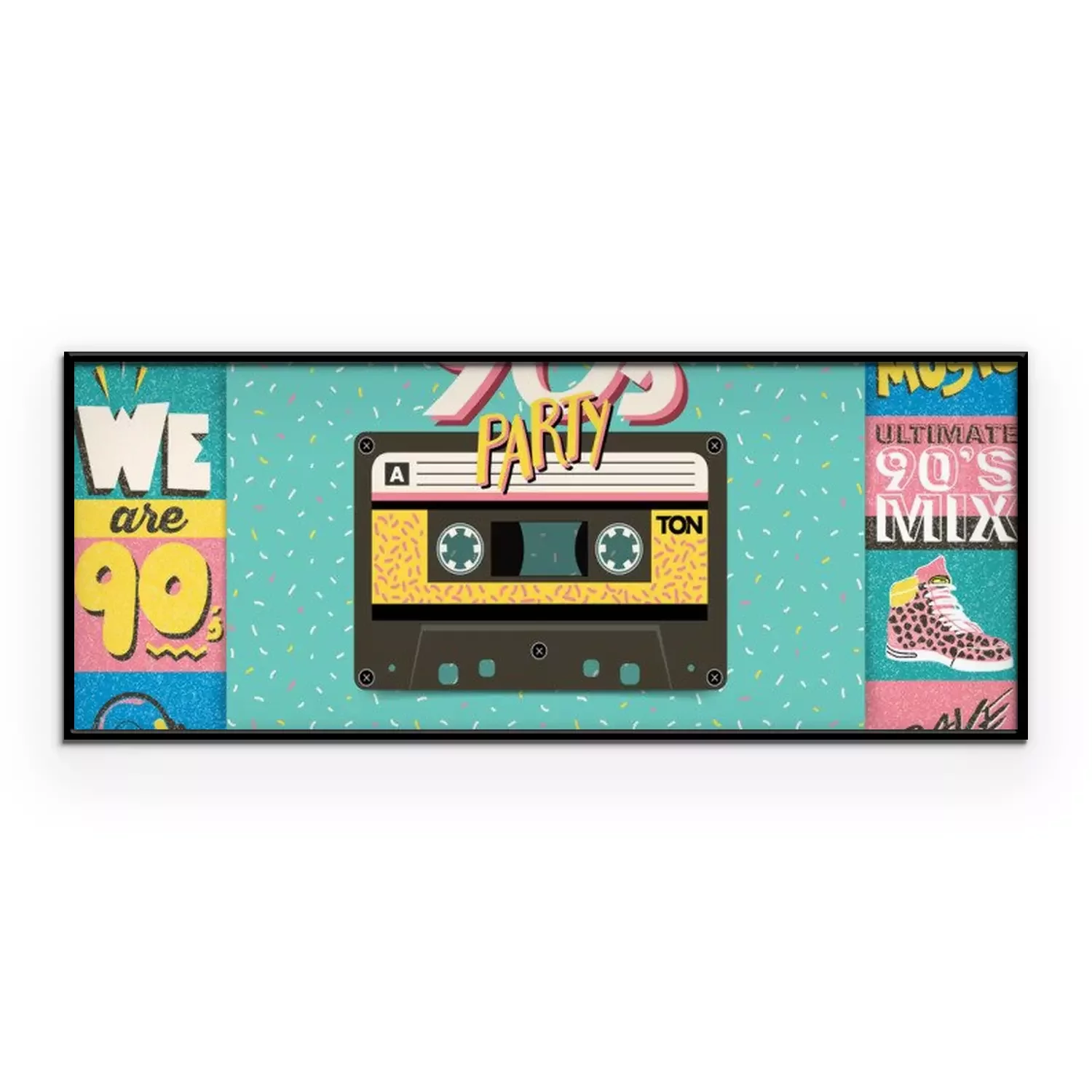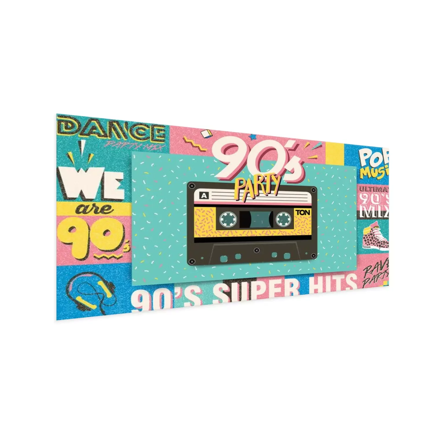 Poster: 90's muziekmix. Trendy. Retro-stijl ontwerp club. 90's party, 90s fashion, 90s background, 90's and 80's graphic, jaren 90 stijl, popmuziekfeest 1990, vintage night. Gemakkelijk bewerkbaar Memphis pos