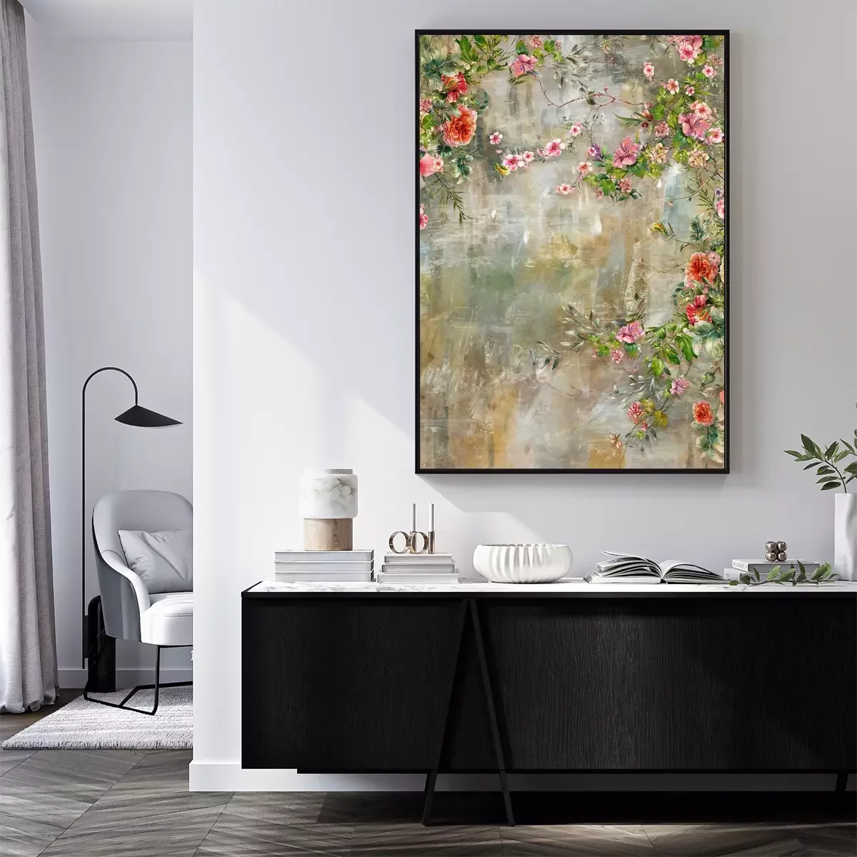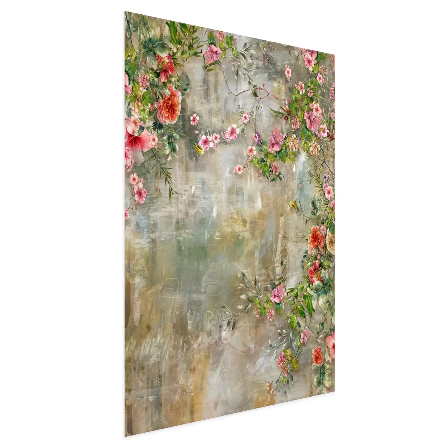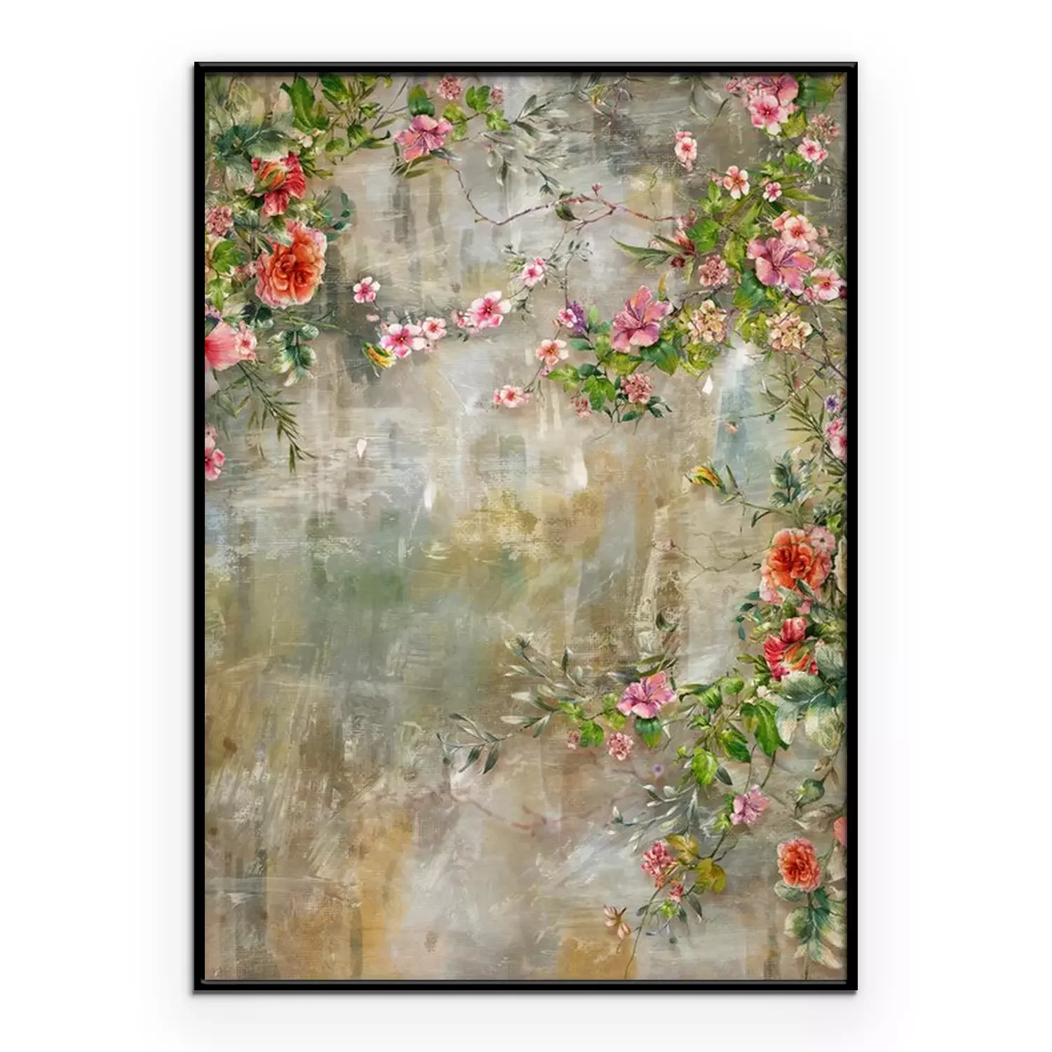 Poster Abstract art colorful flowers  painting. Spring multicolored illustration.
