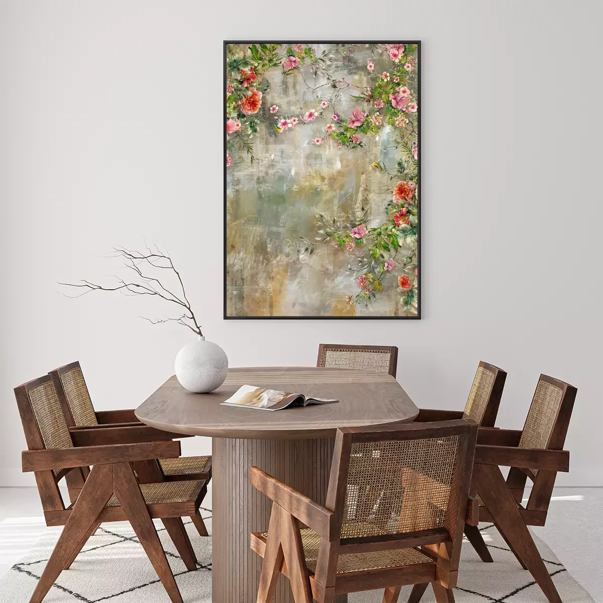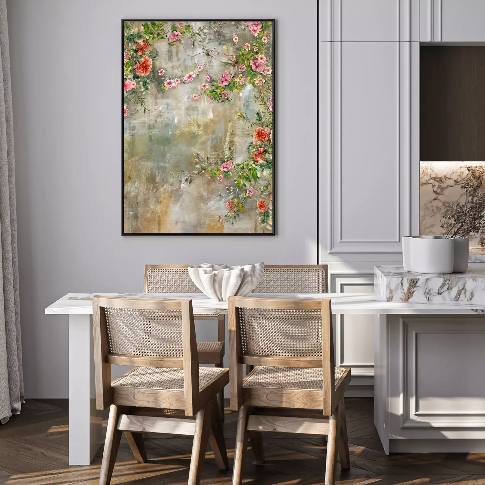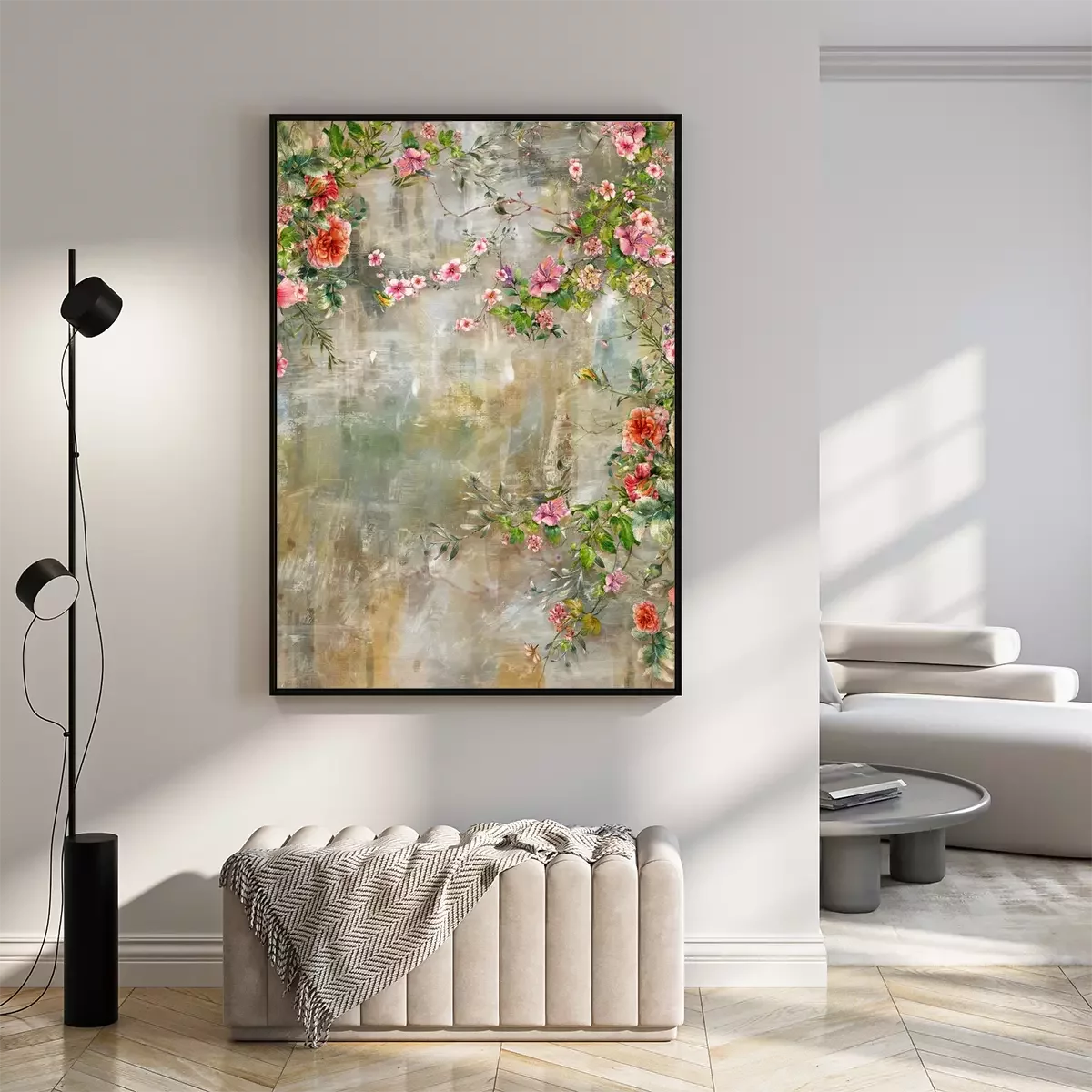 Poster: Abstract art colorful flowers painting. Spring multicolored illustration.