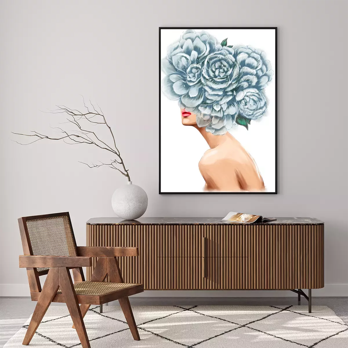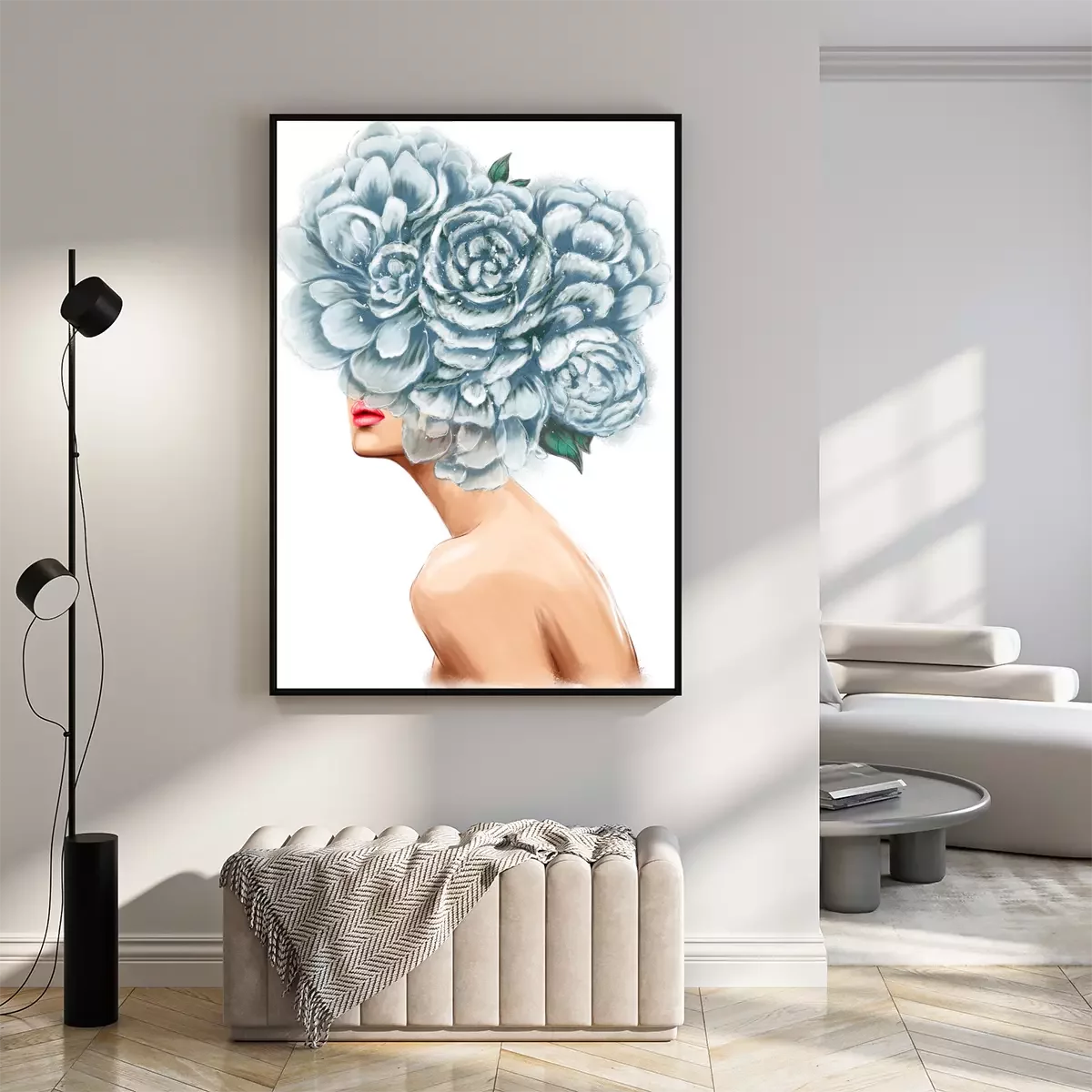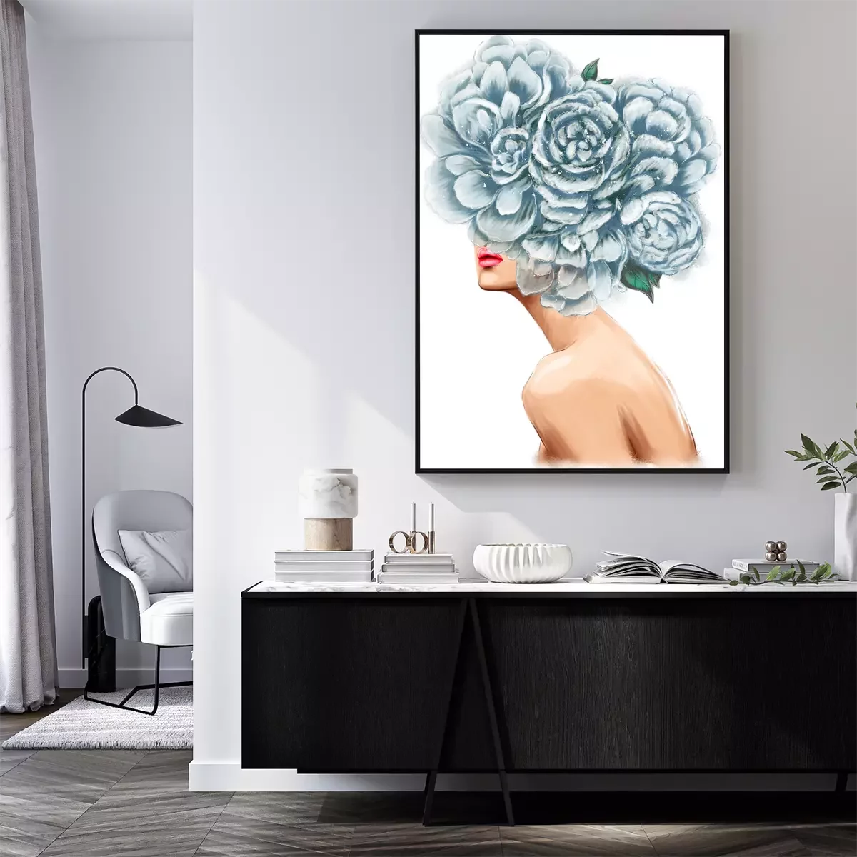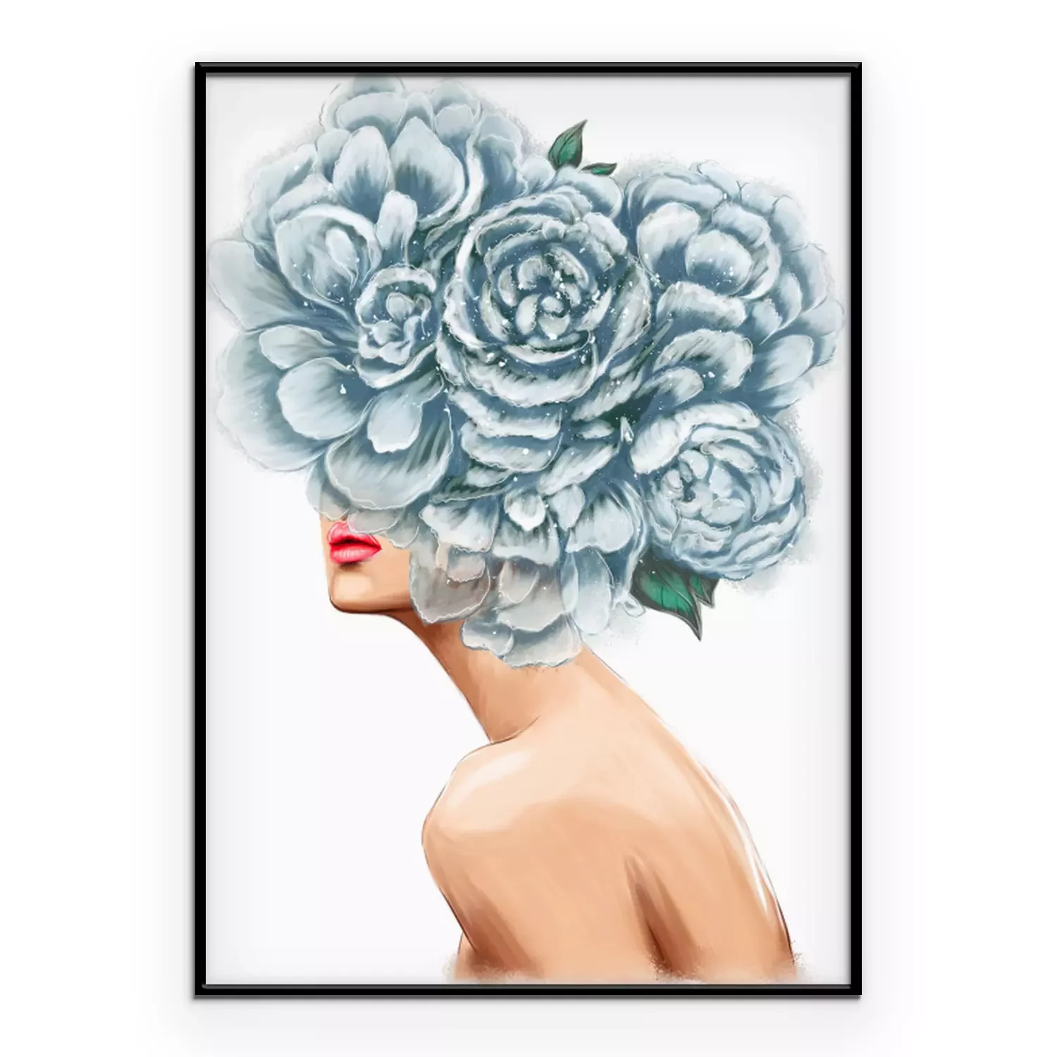 Poster: Abstract beeld van een mooie vrouw met bloemen