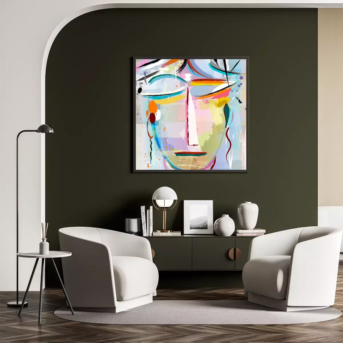 De abstracte vrouw gezicht, met penseelstreken en spatten