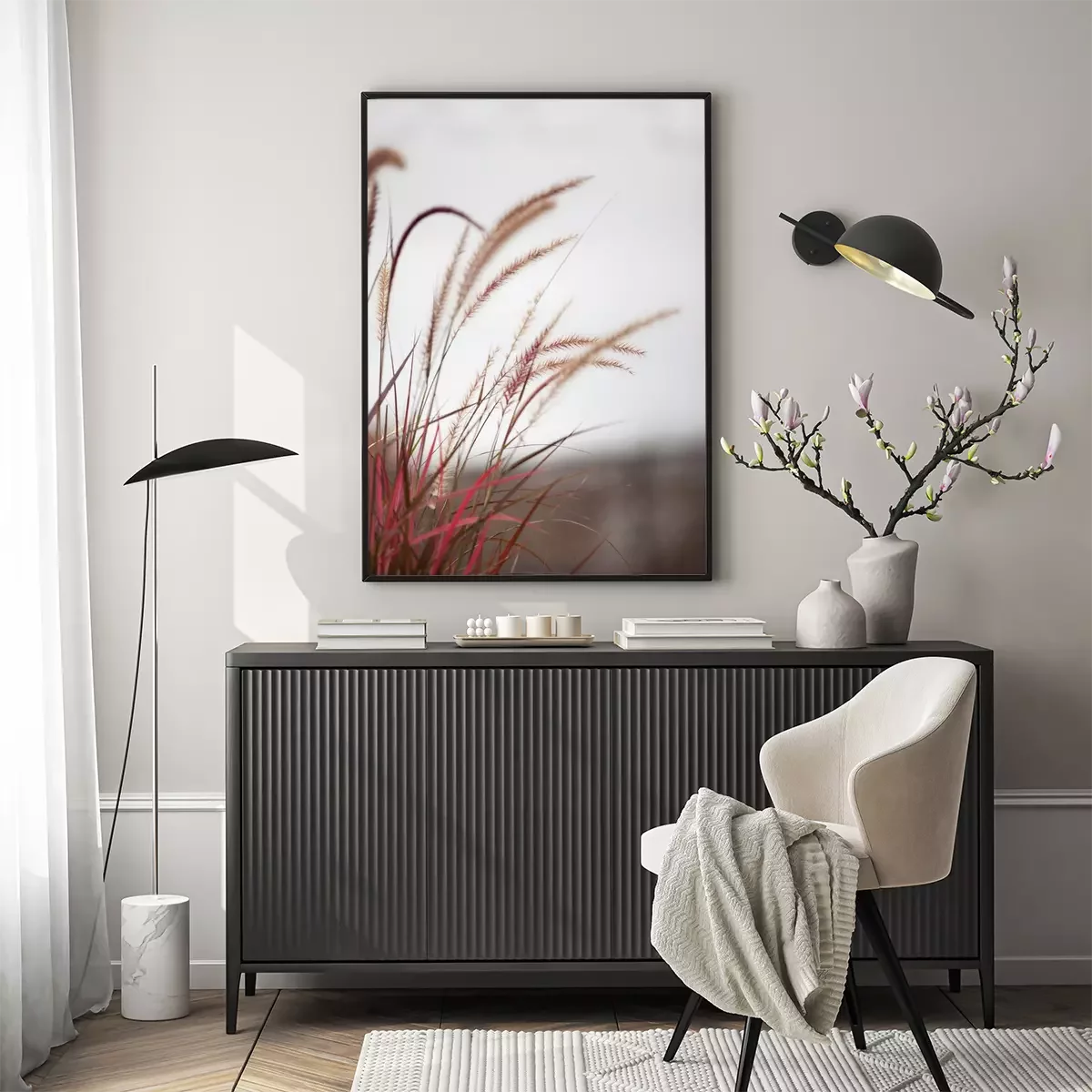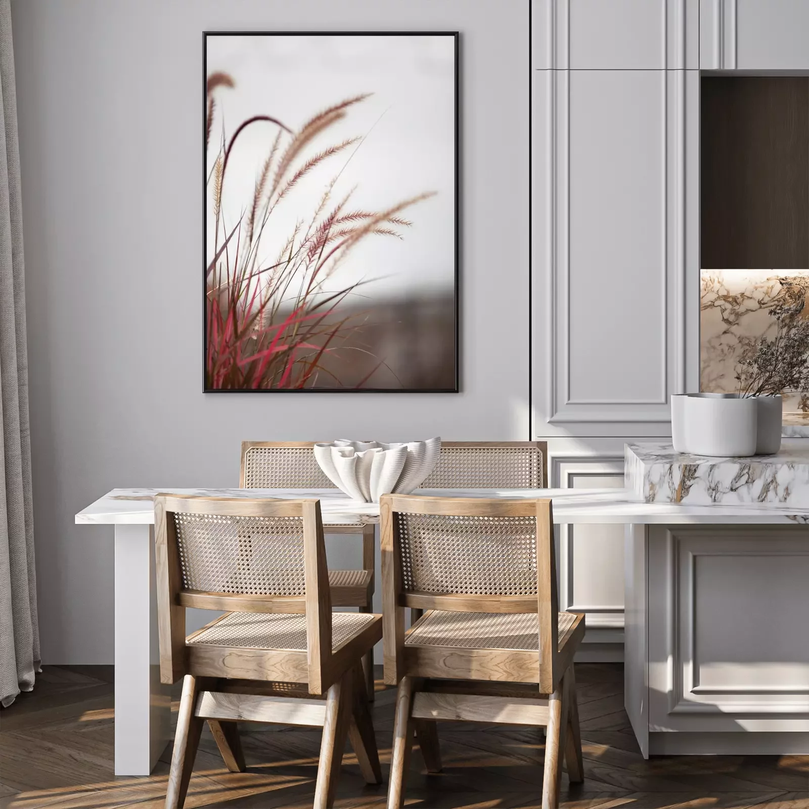 Poster Abstract red and brown aquatic marshland grass pictured with the gray sky as a backdrop