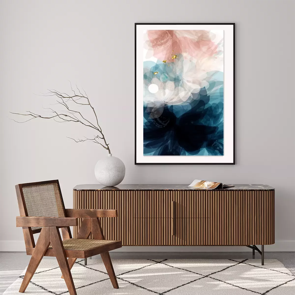 Poster Abstract vector template in floral style deep blue and soft pink colors for wedding invitations