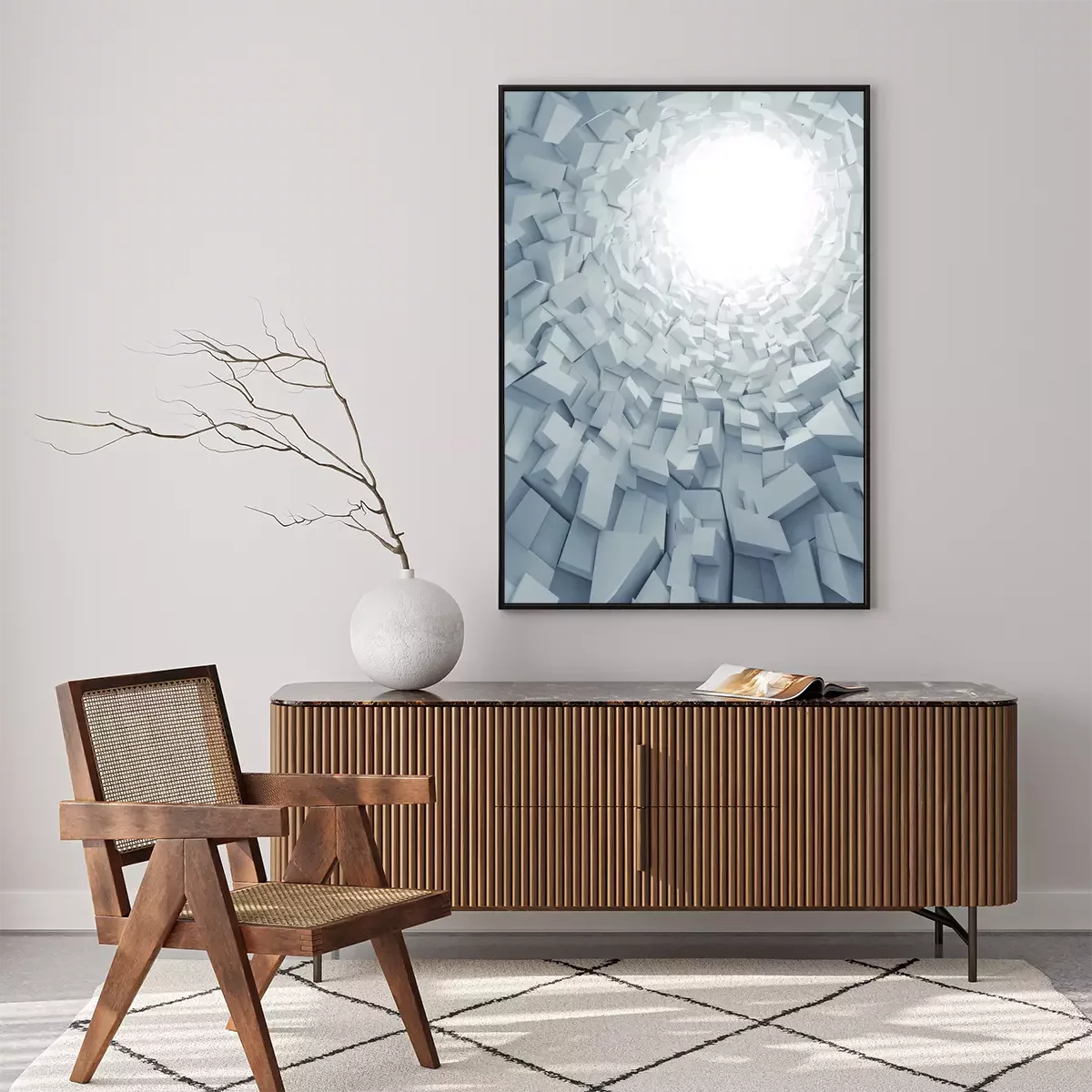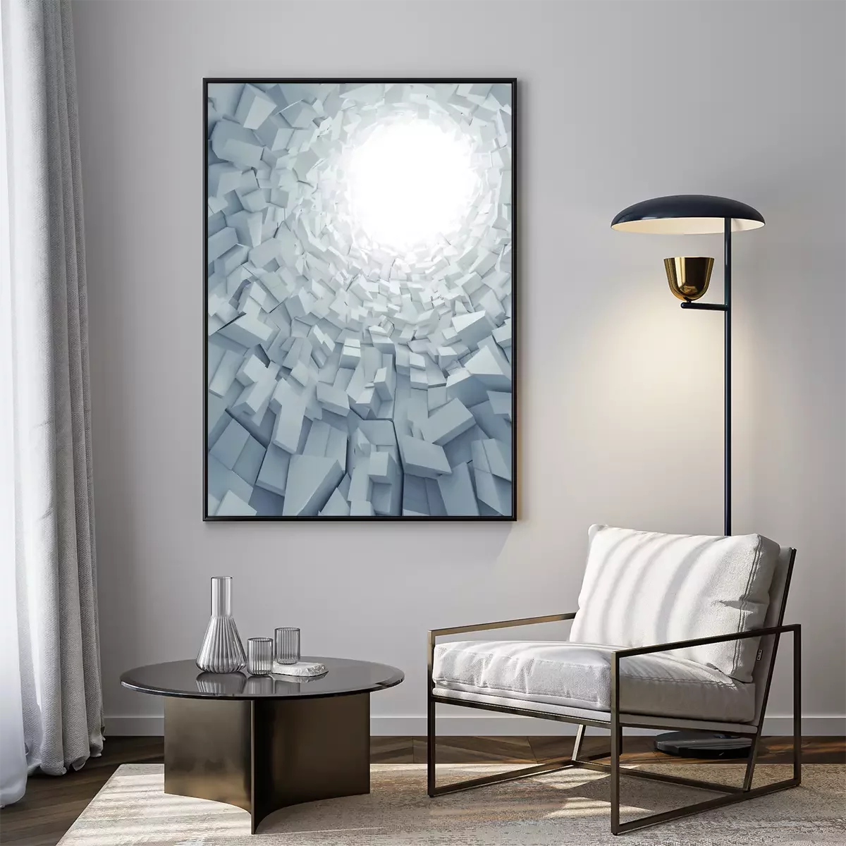 Digitale illustratie van een 3D witte tunnel met diepte-effect