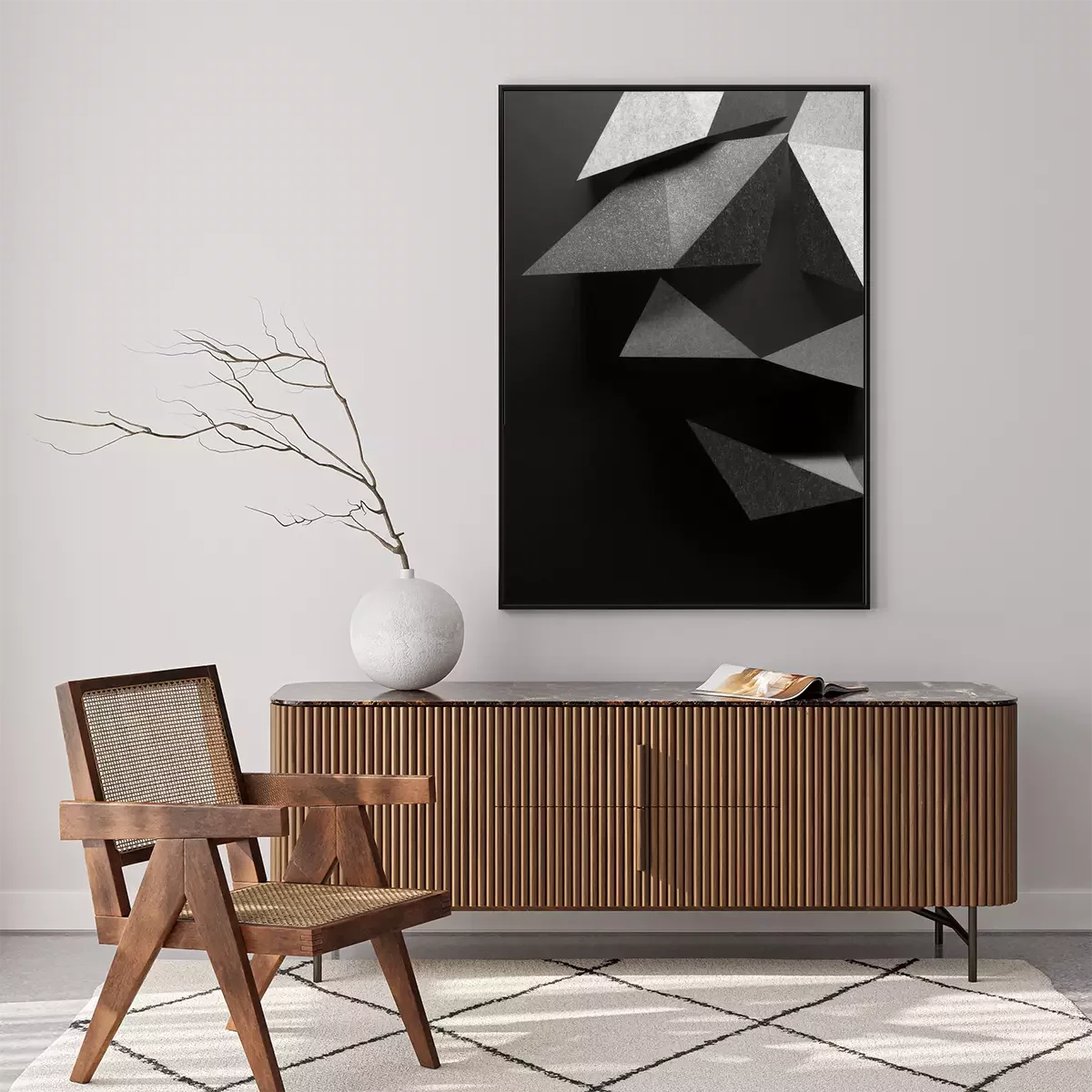 Poster: Abstract with elements of paper, geometric shapes composition