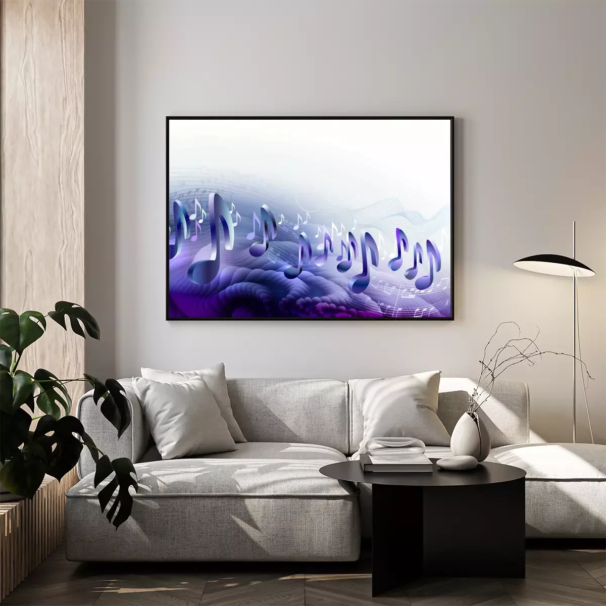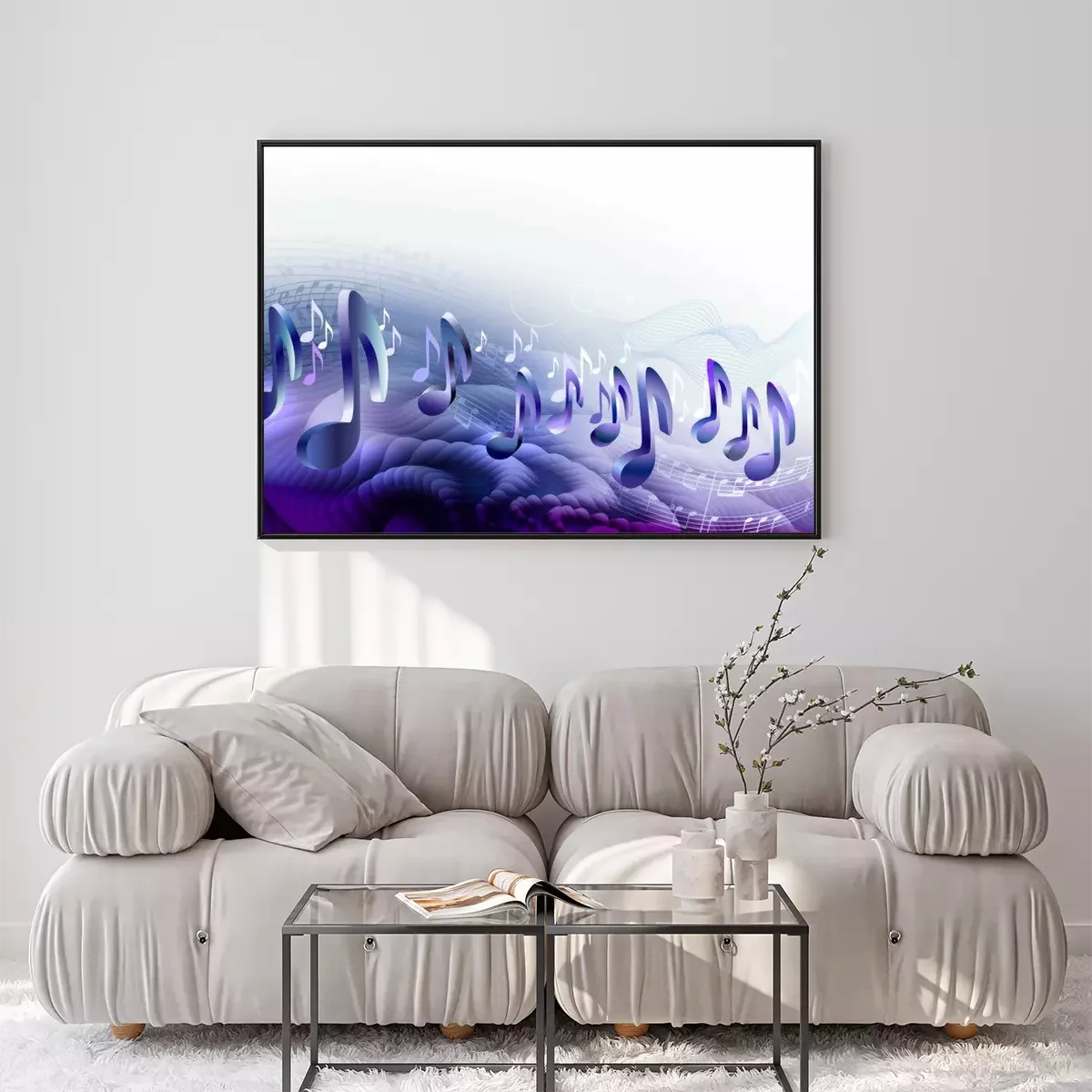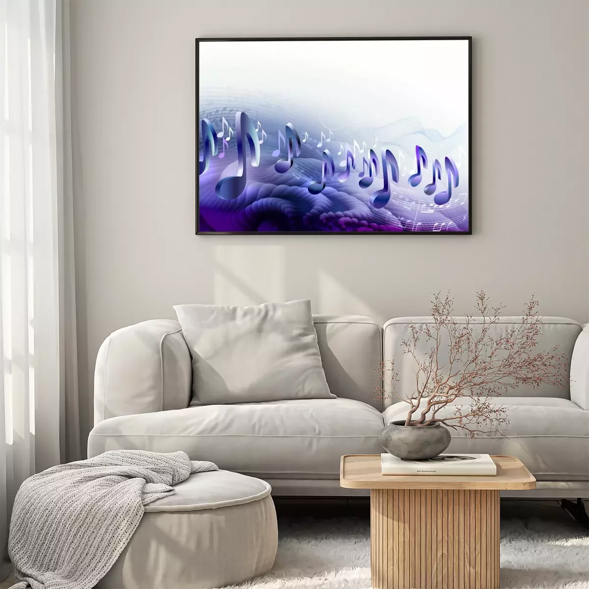 Poster Abstracte bladmuziek ontwerp achtergrond met 3d muzieknoten