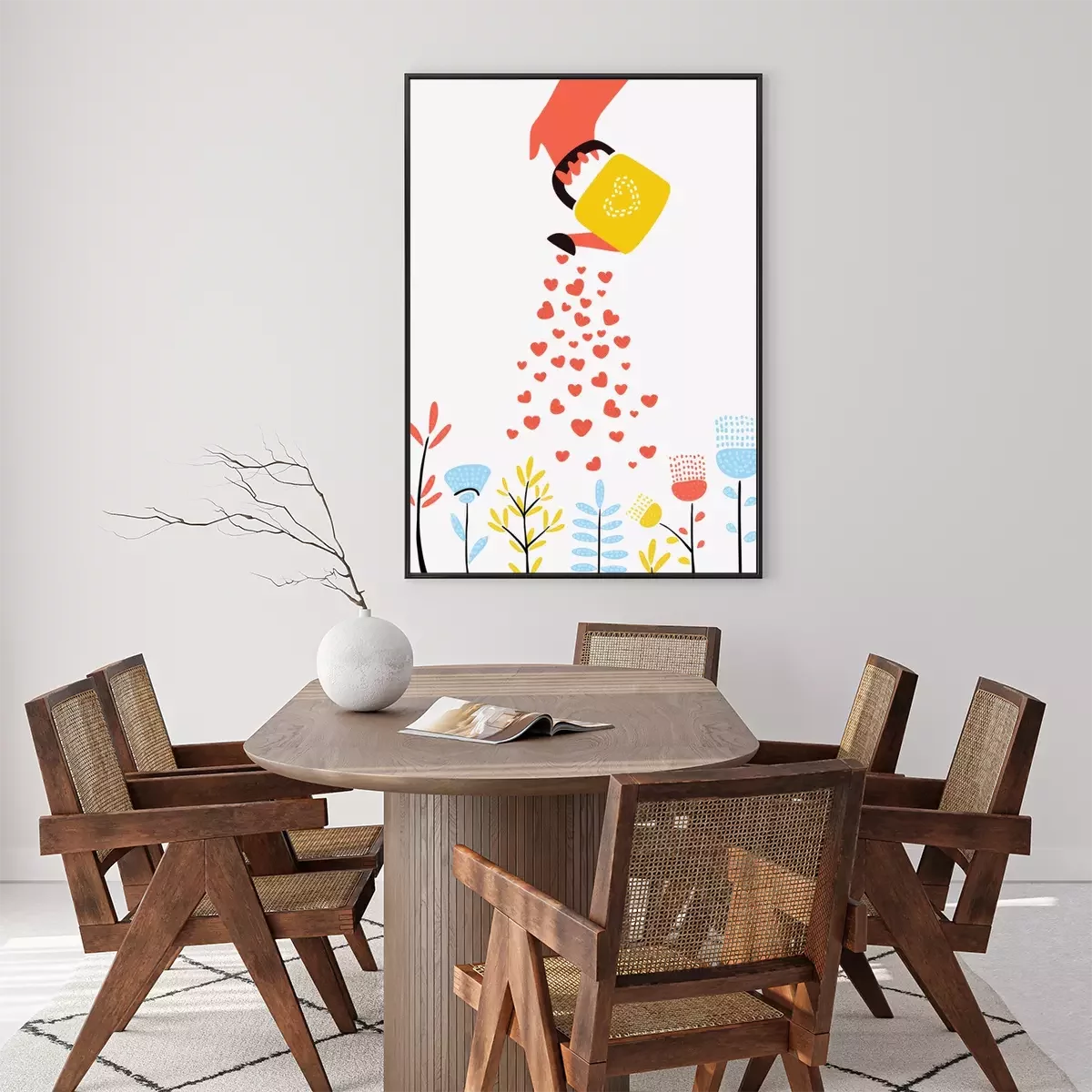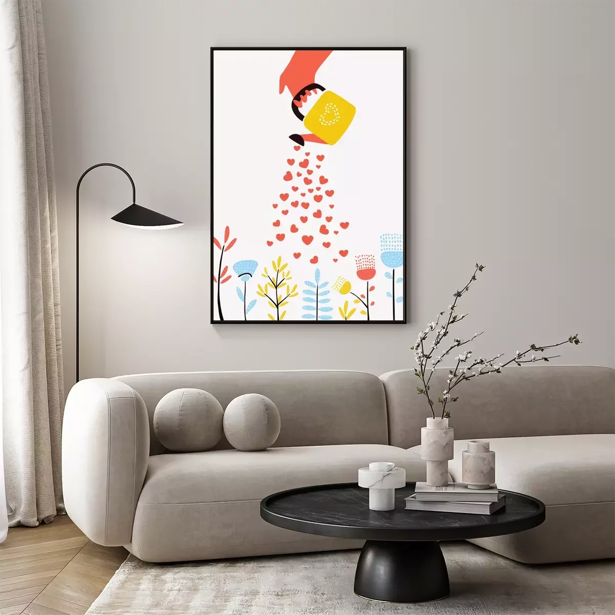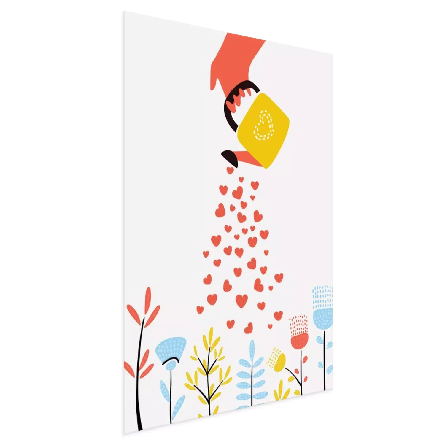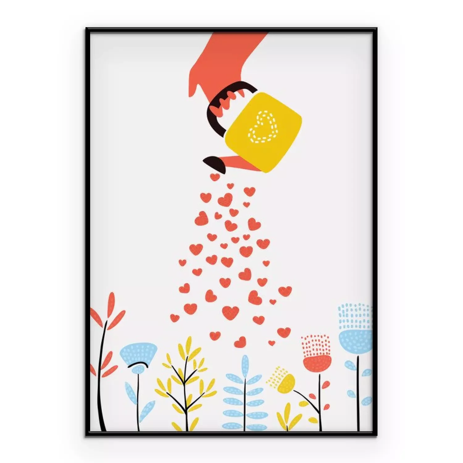 Poster: Abstracte tulpen die met harten worden bewaterd