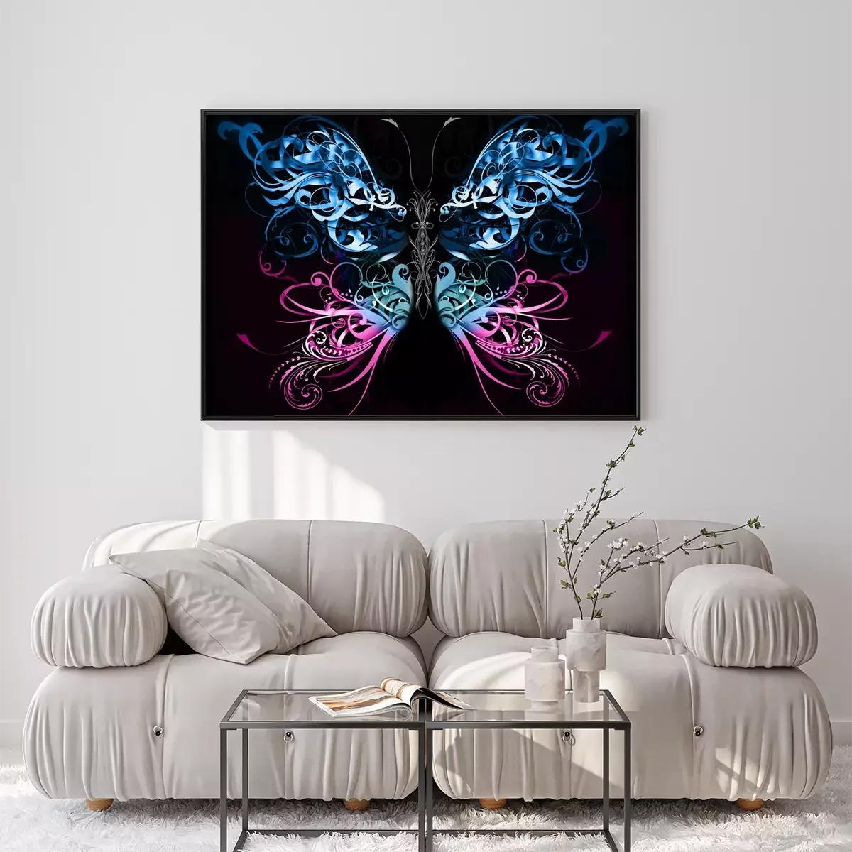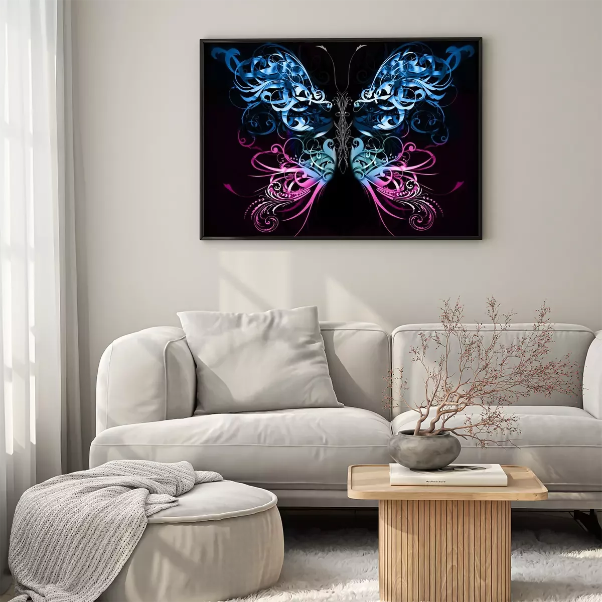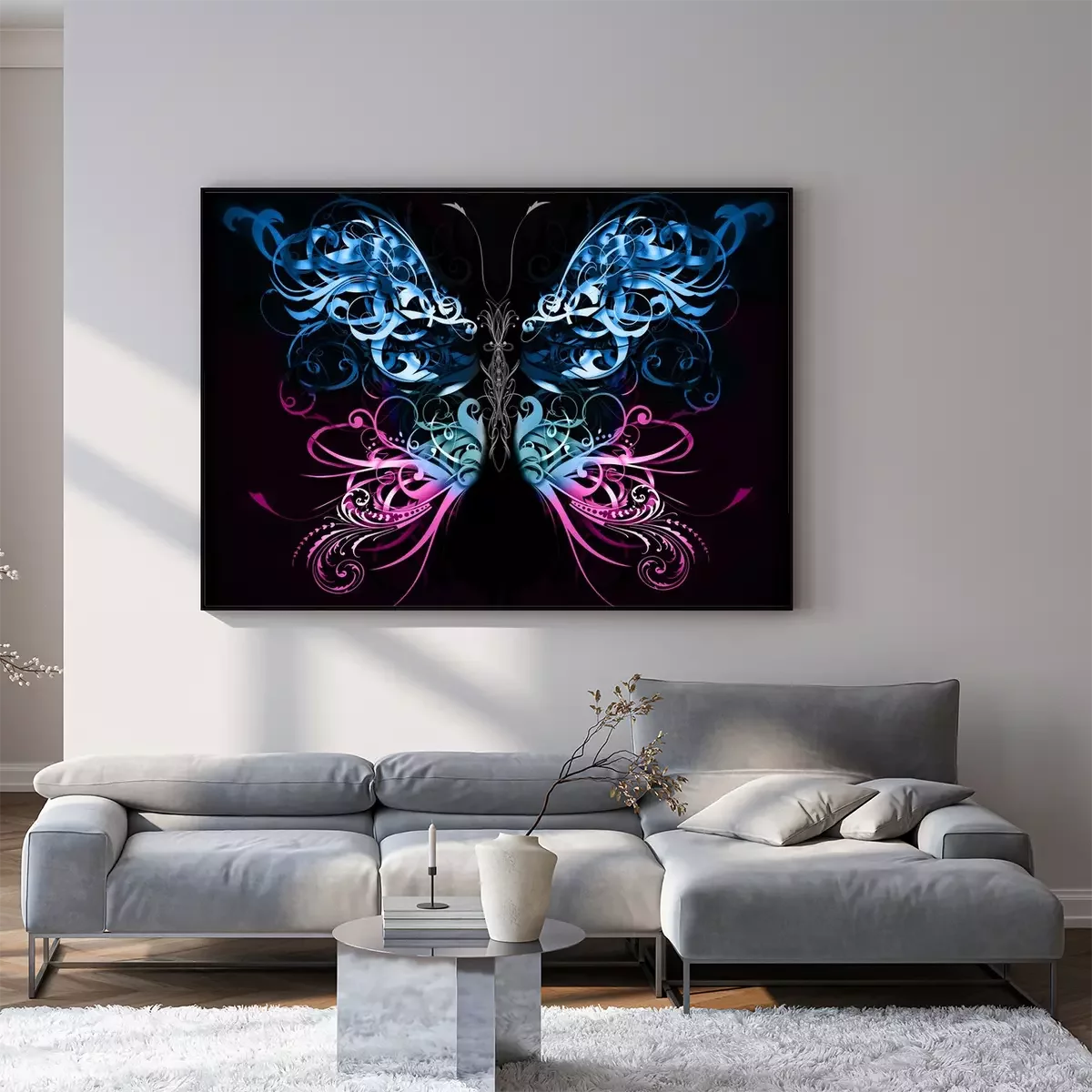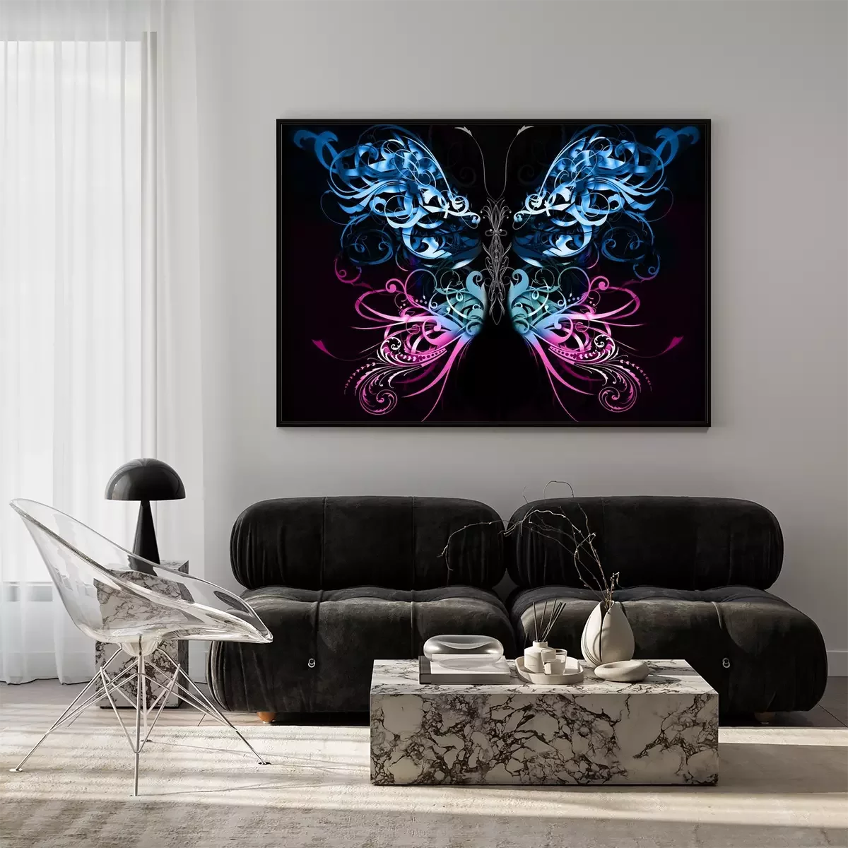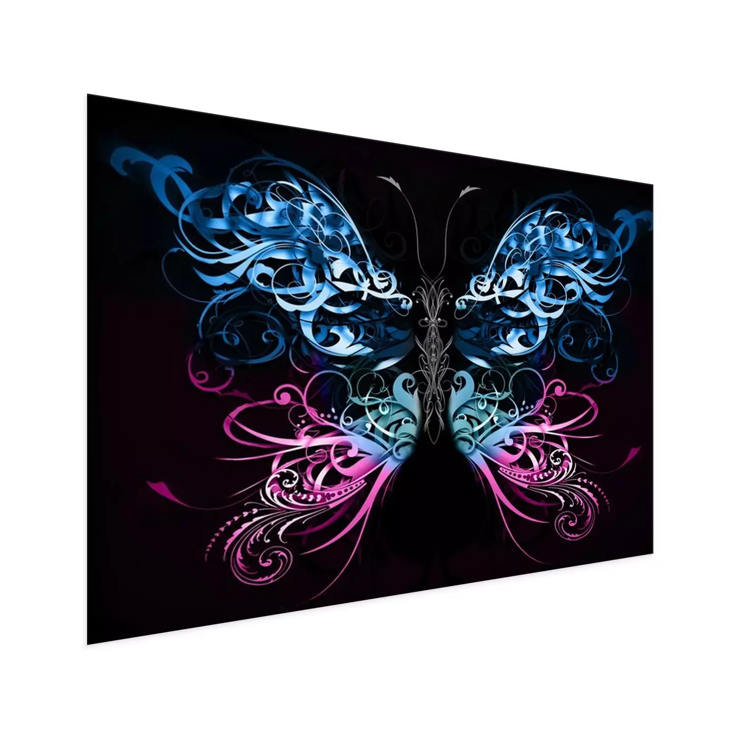 Poster: Abstracte vlinder op een zwarte achtergrond