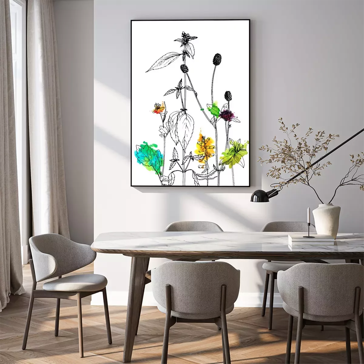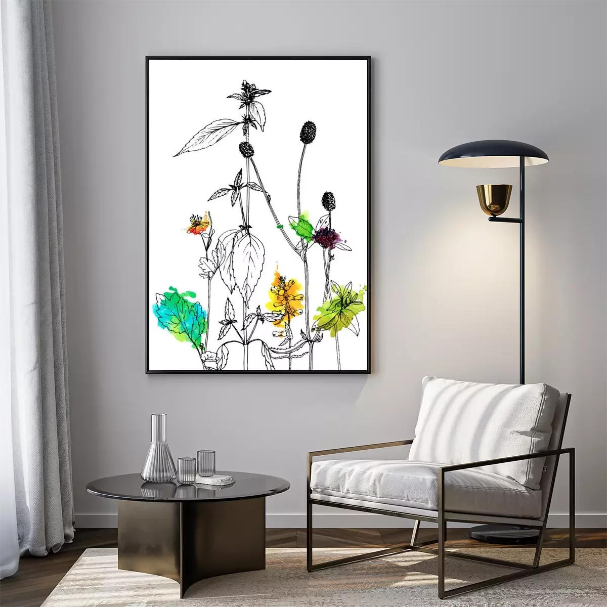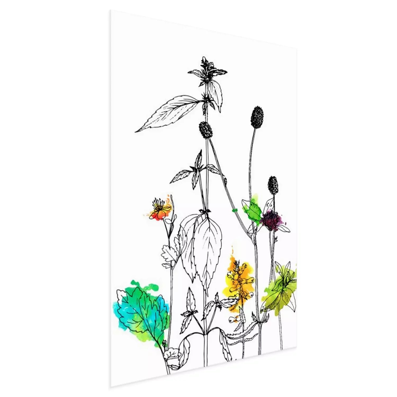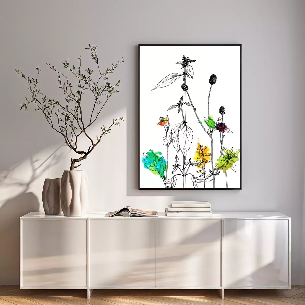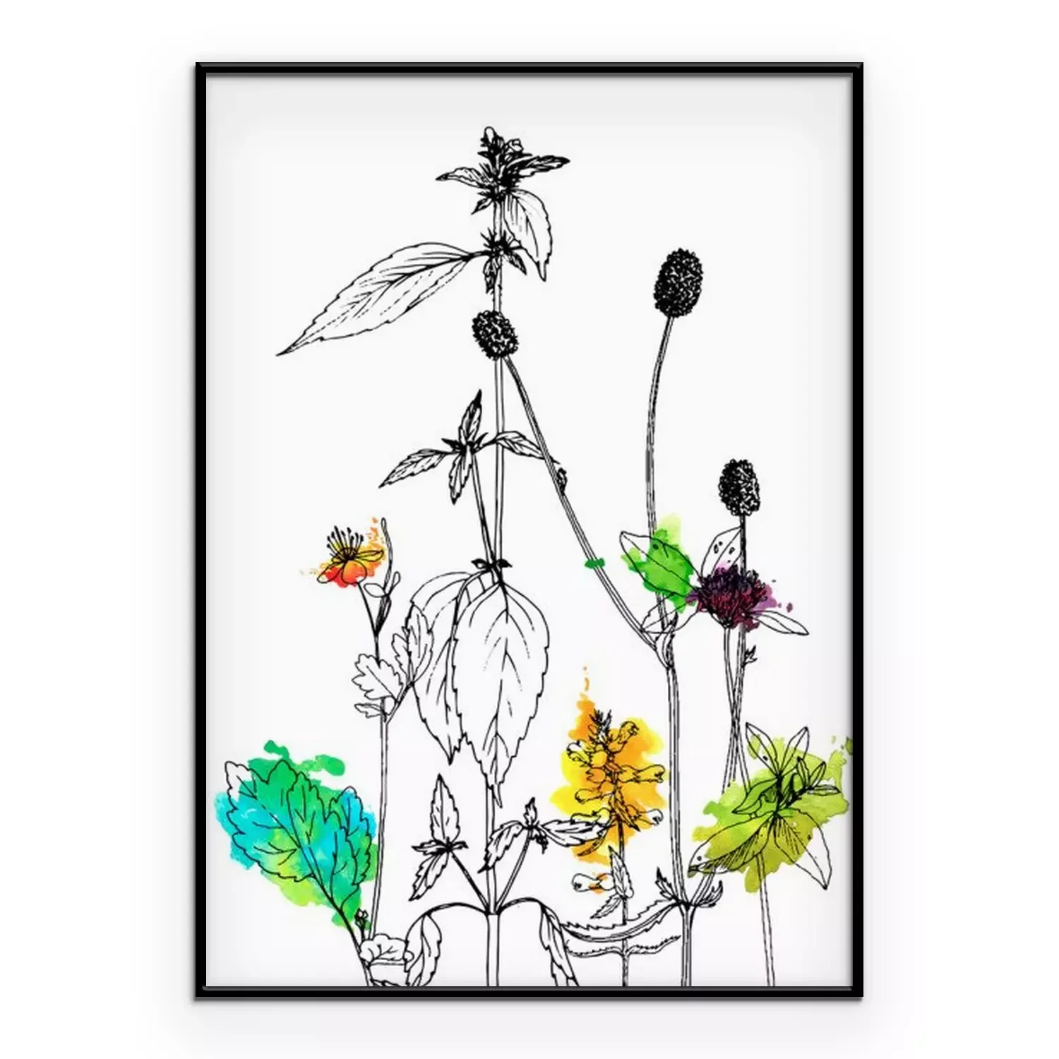 Poster: Achtergrond met tekeningskruiden en bloemen