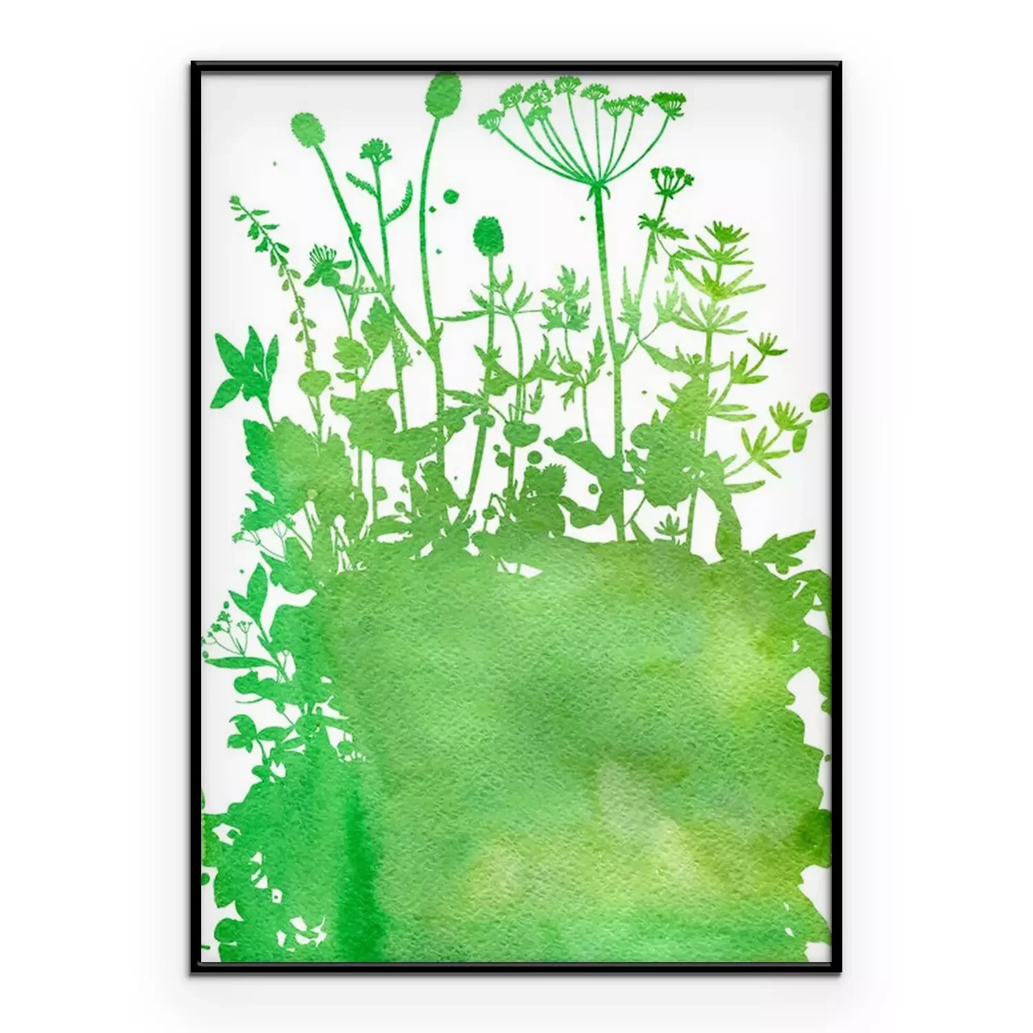 Poster: Achtergrond met tekeningskruiden en bloemen