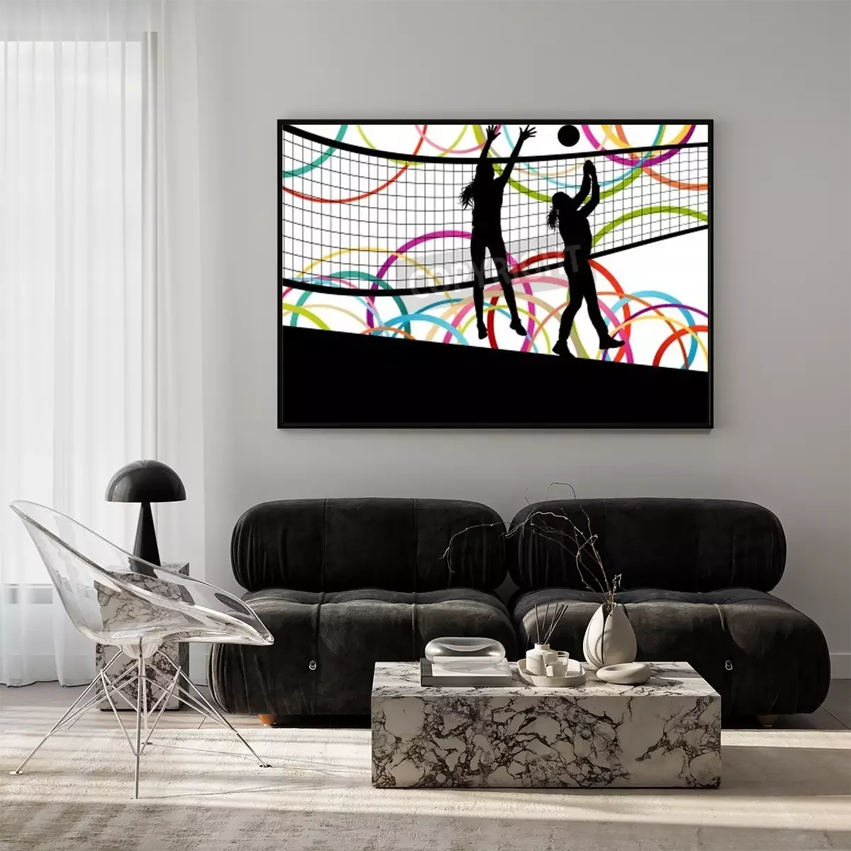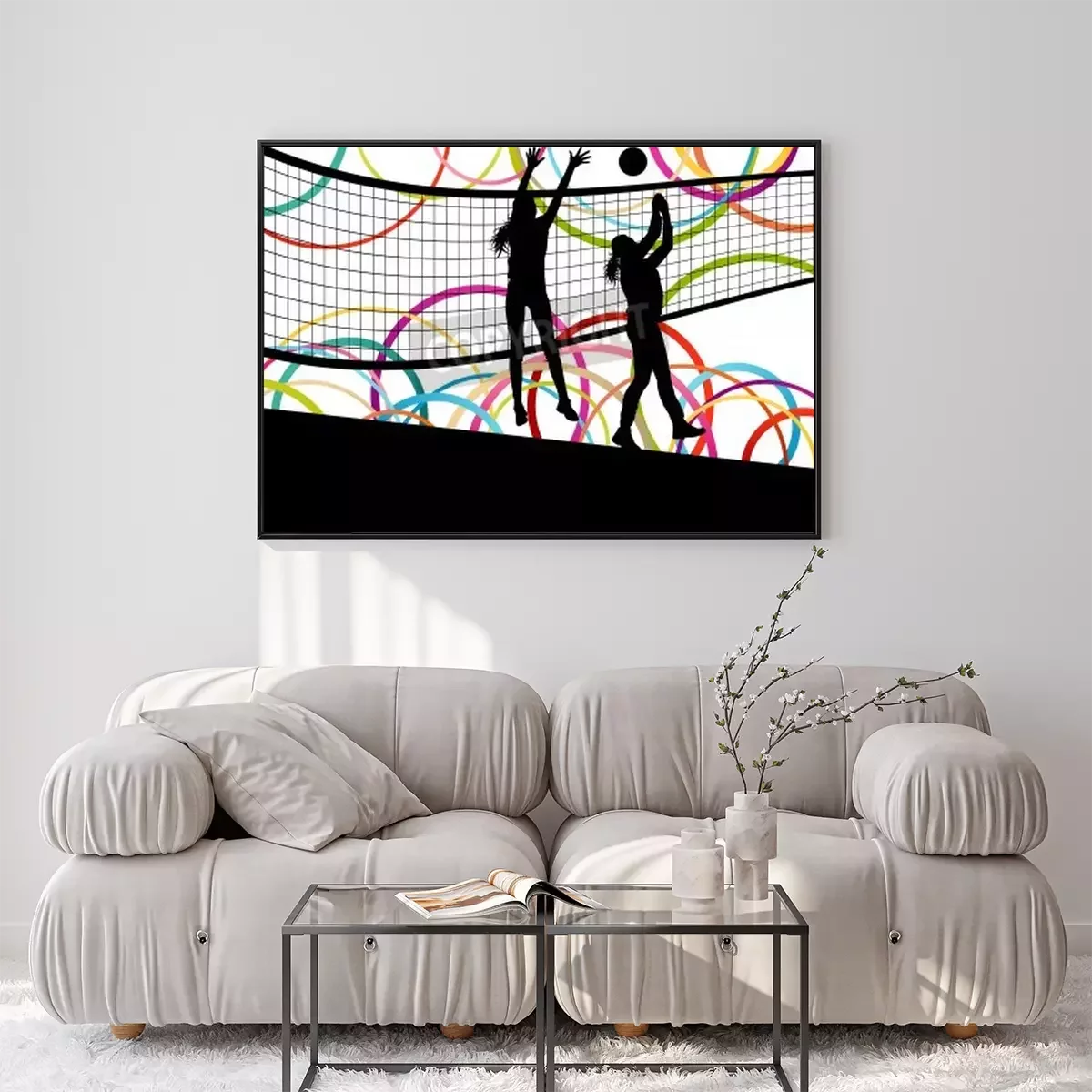 Poster: Active young women volleyball player sport silhouettes in abstract color background illustration vector