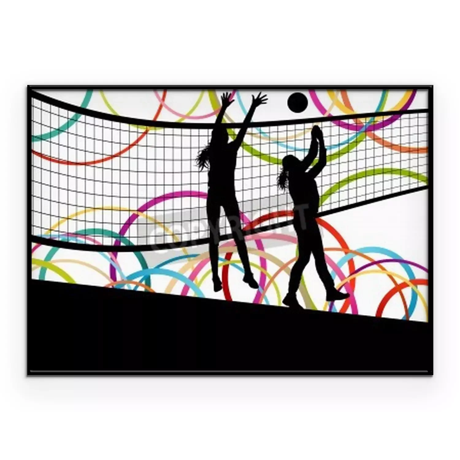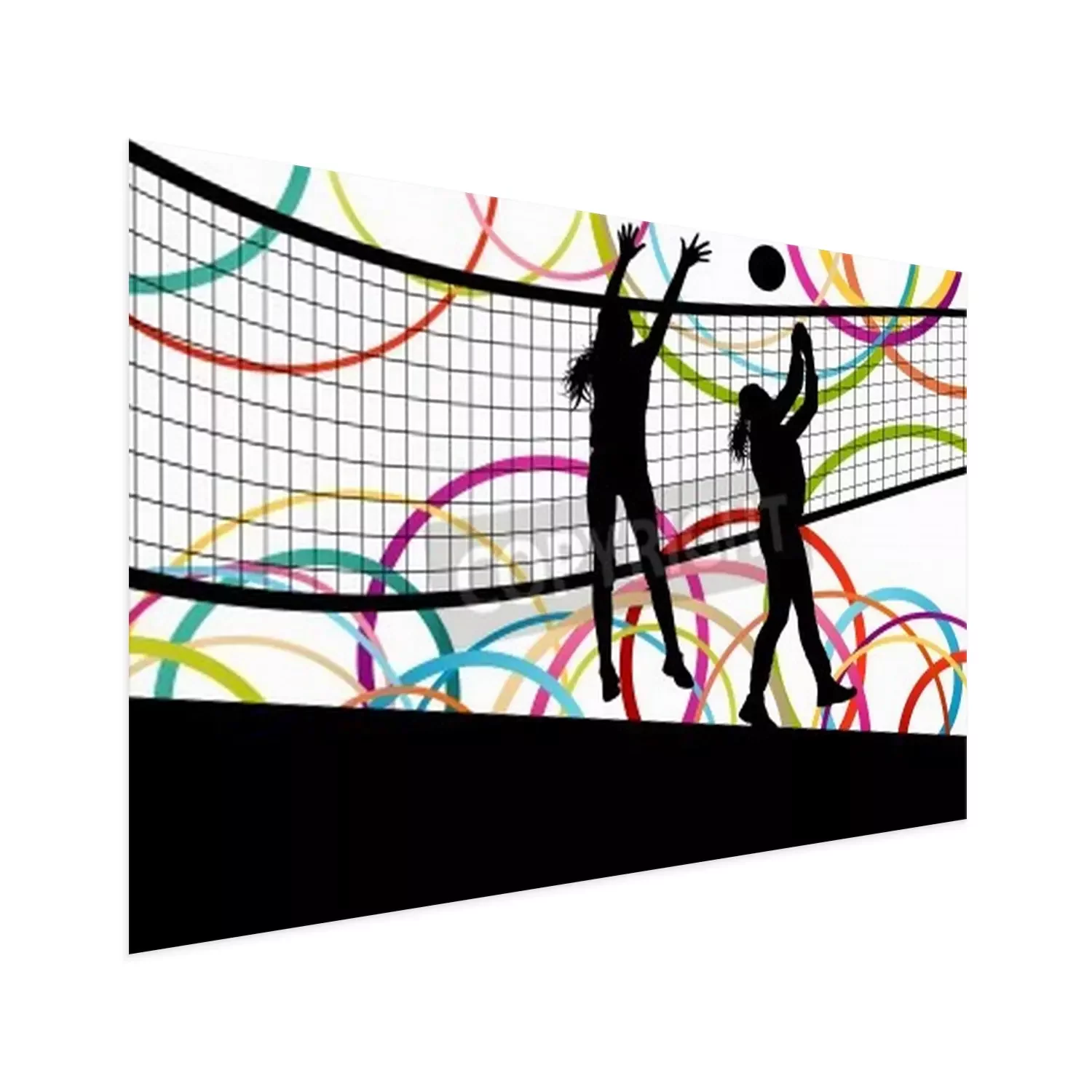 Poster Active young women volleyball player sport silhouettes in abstract color background illustration vector