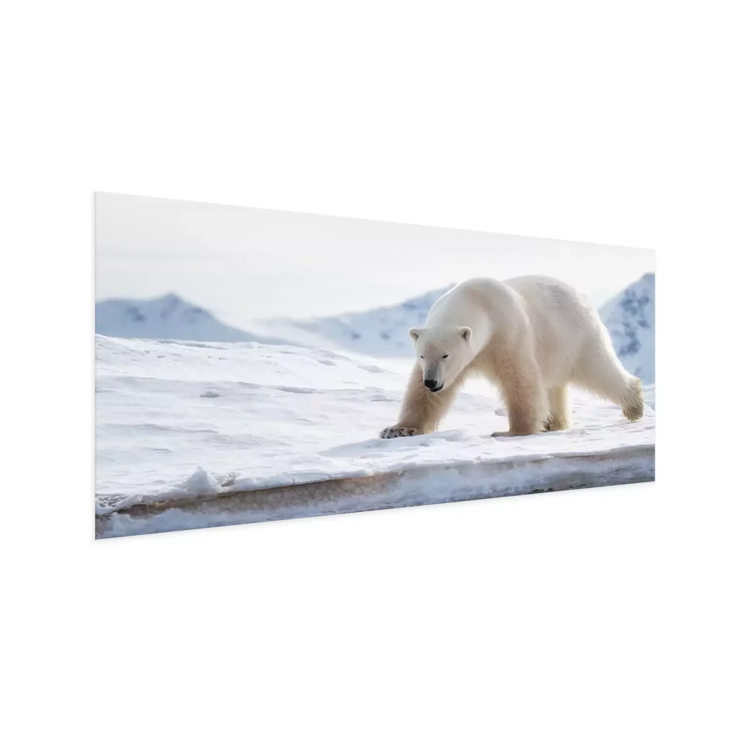 Poster Adult male polar bear stands at the ice edge in Svalbard