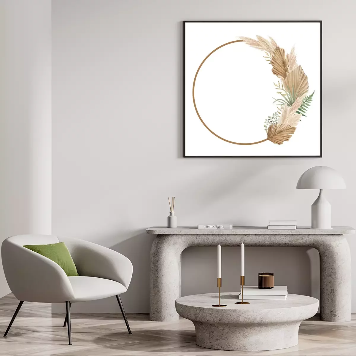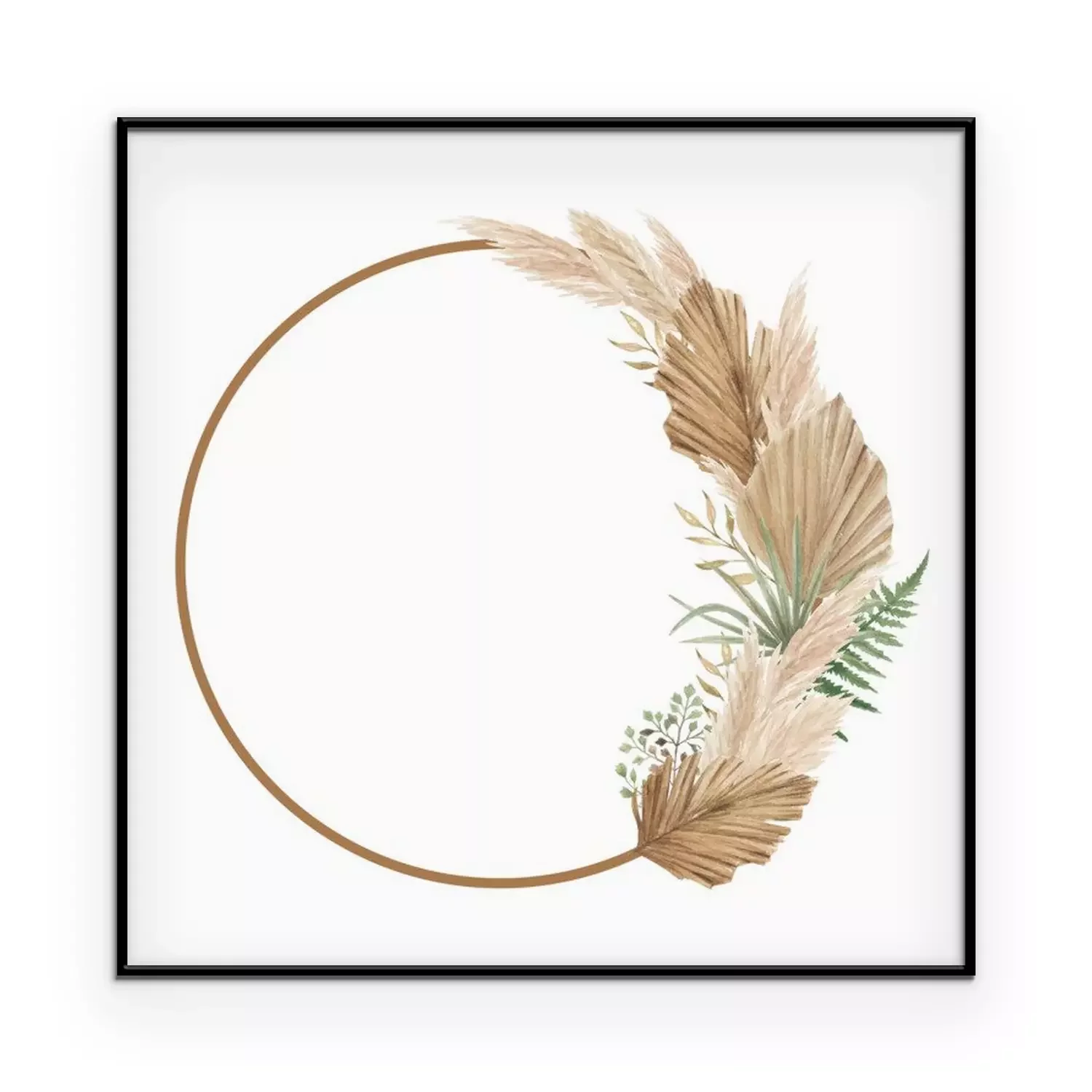 Poster: Aesthetic floral frame with dried palm leaves, pampas grass and fern