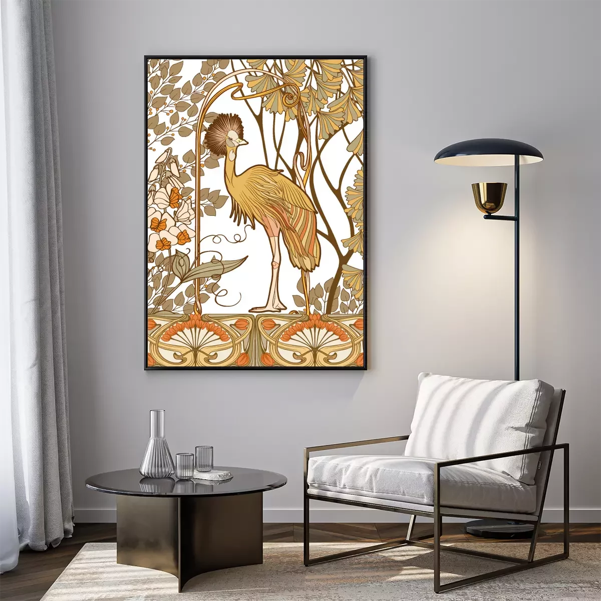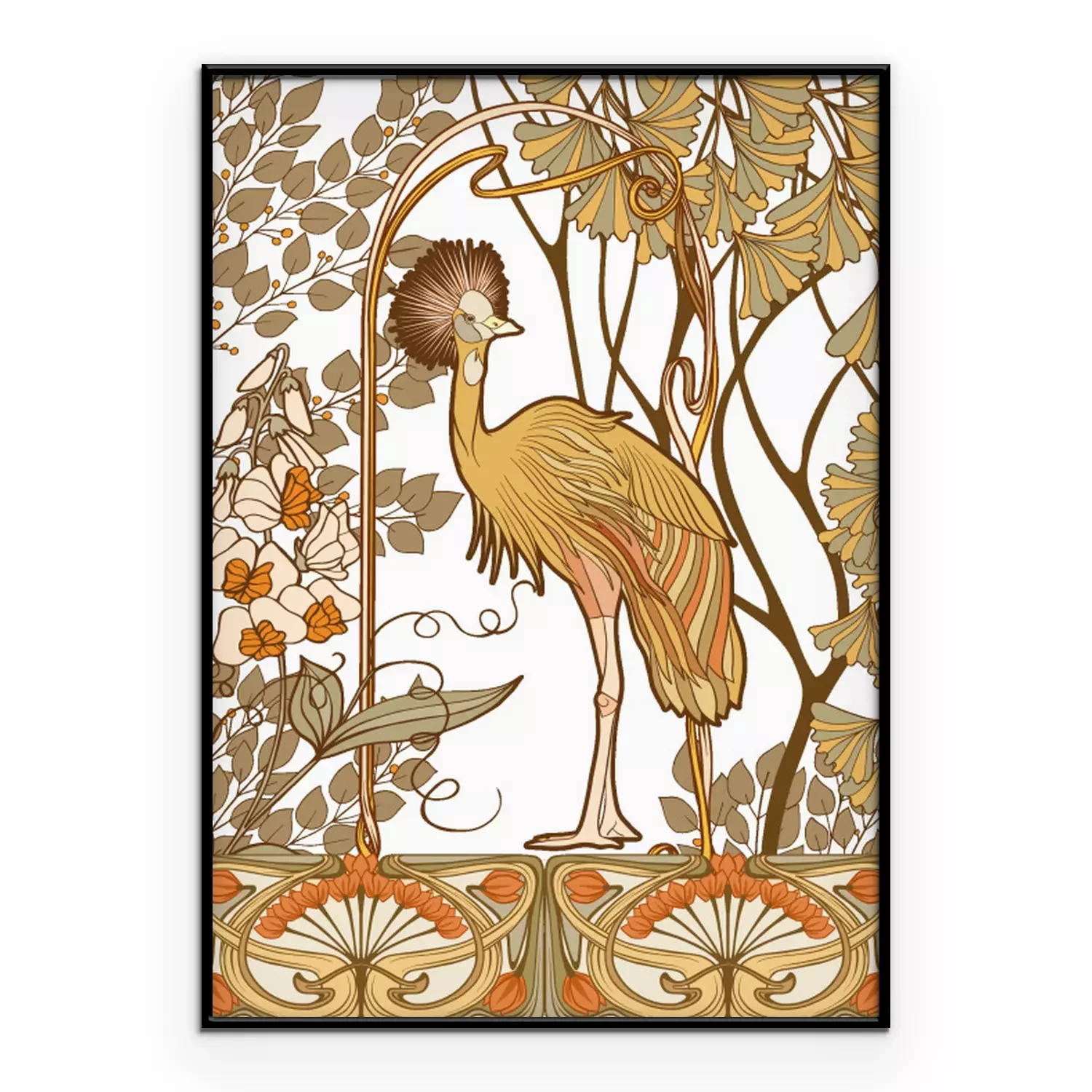 Poster: Affiche, achtergrond met decoratieve bloemen en vogel in Jugendstilstijl, uitstekende, oude, retro stijl.