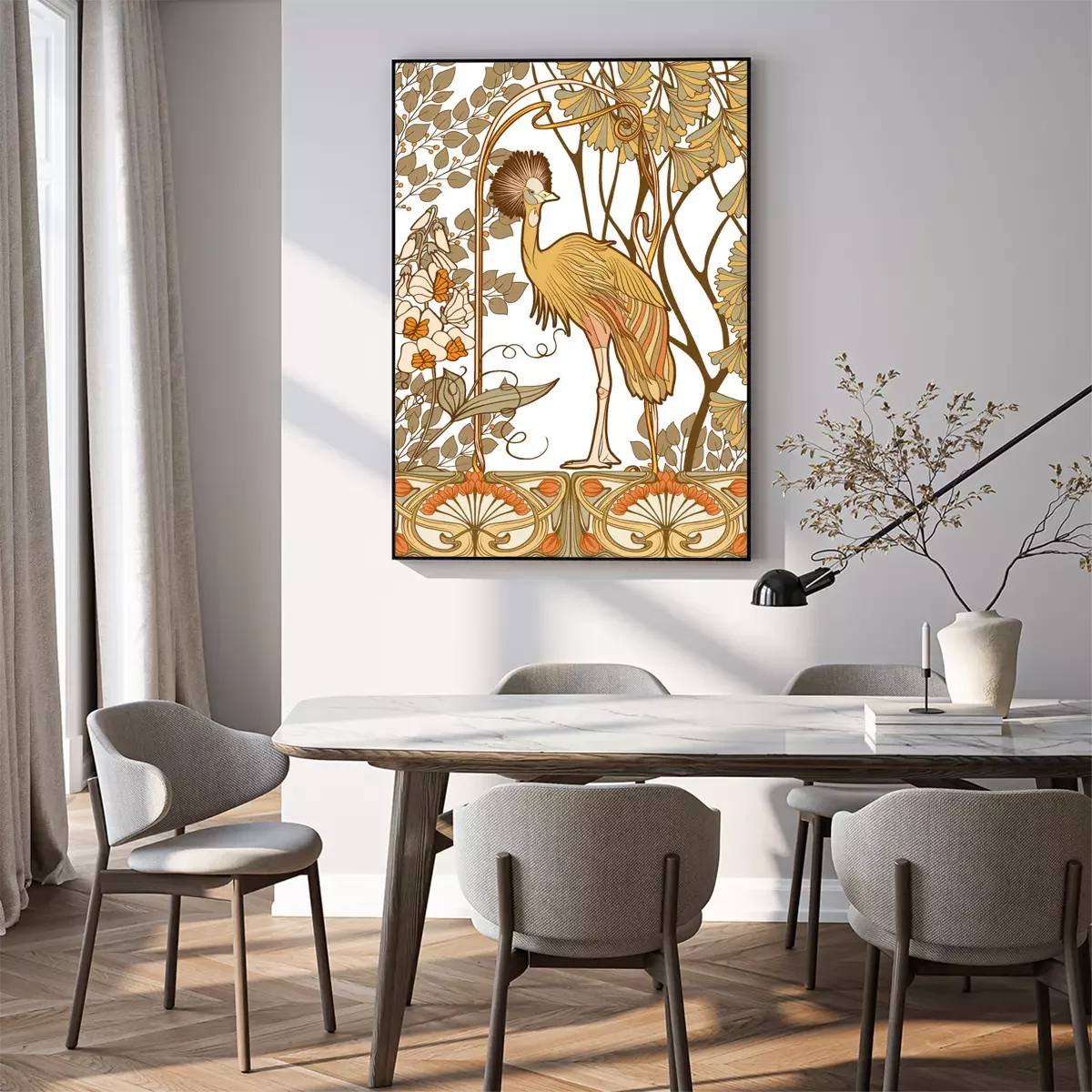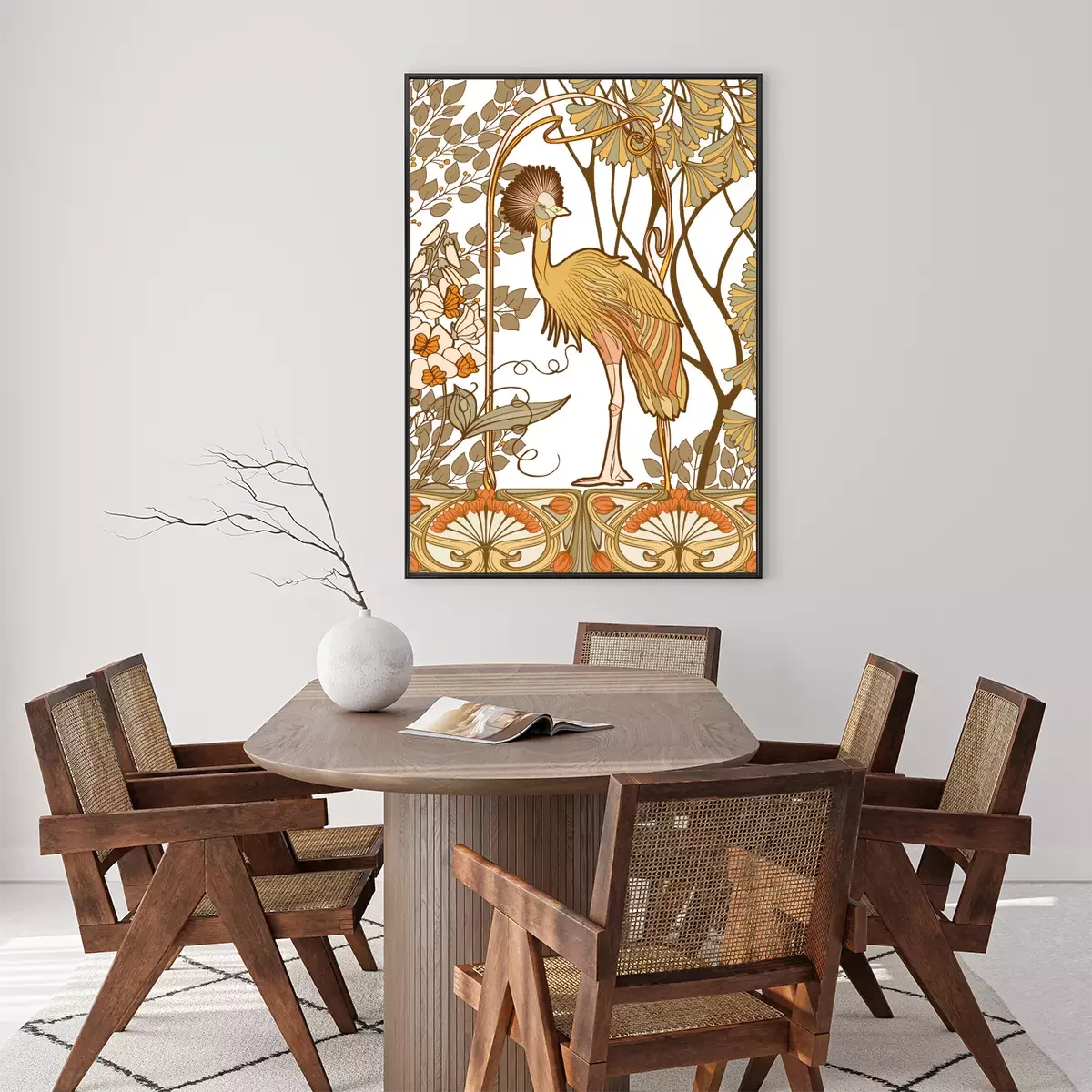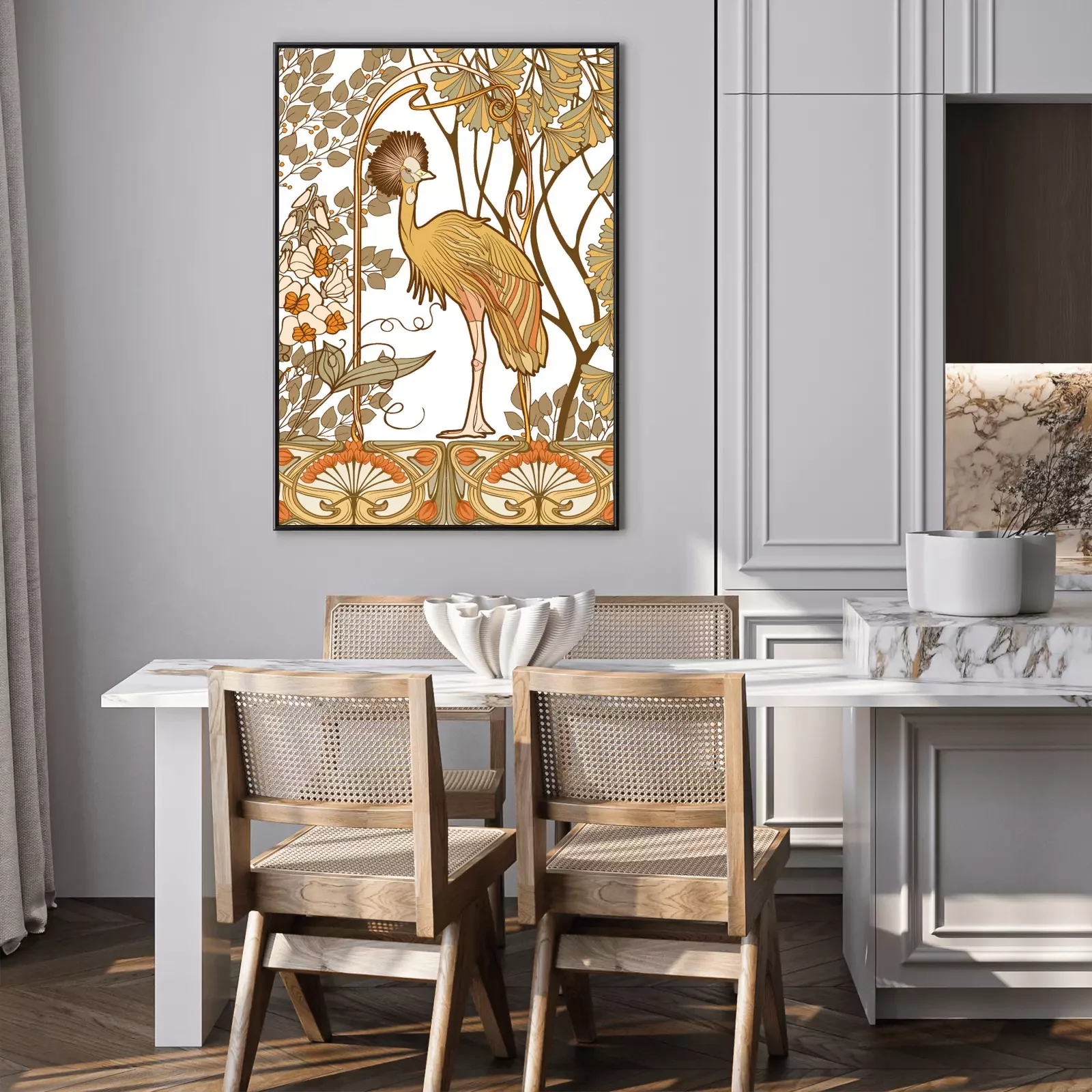 Poster Affiche, achtergrond met decoratieve bloemen en vogel in Jugendstilstijl, uitstekende, oude, retro stijl.