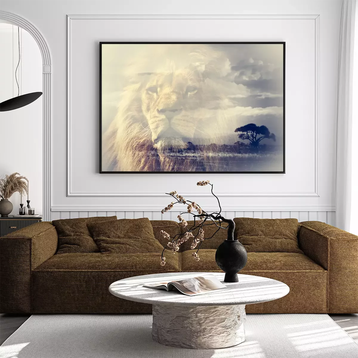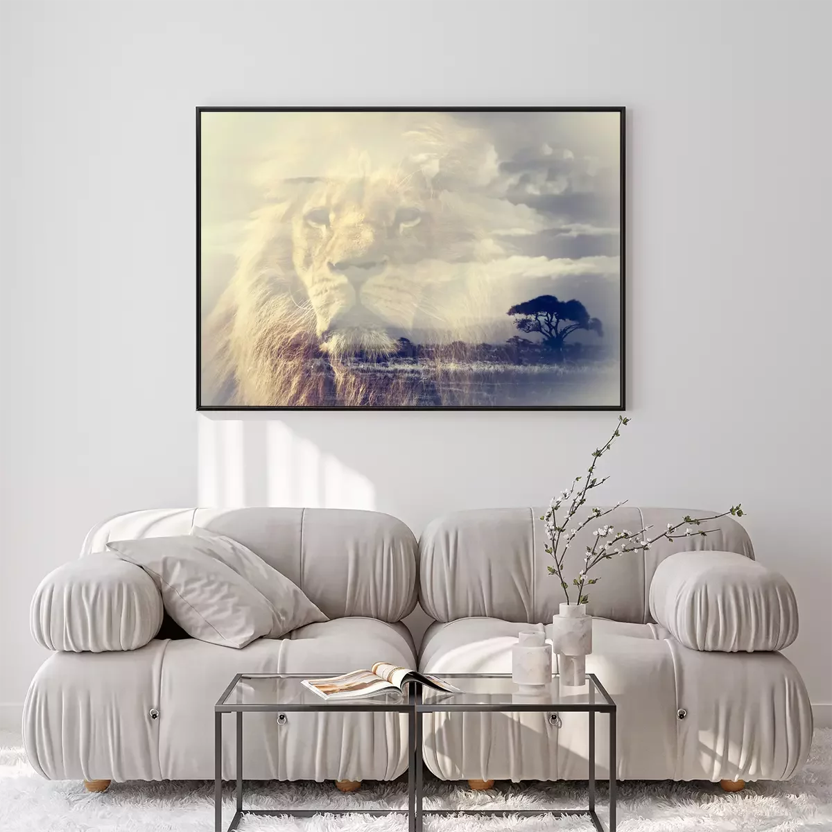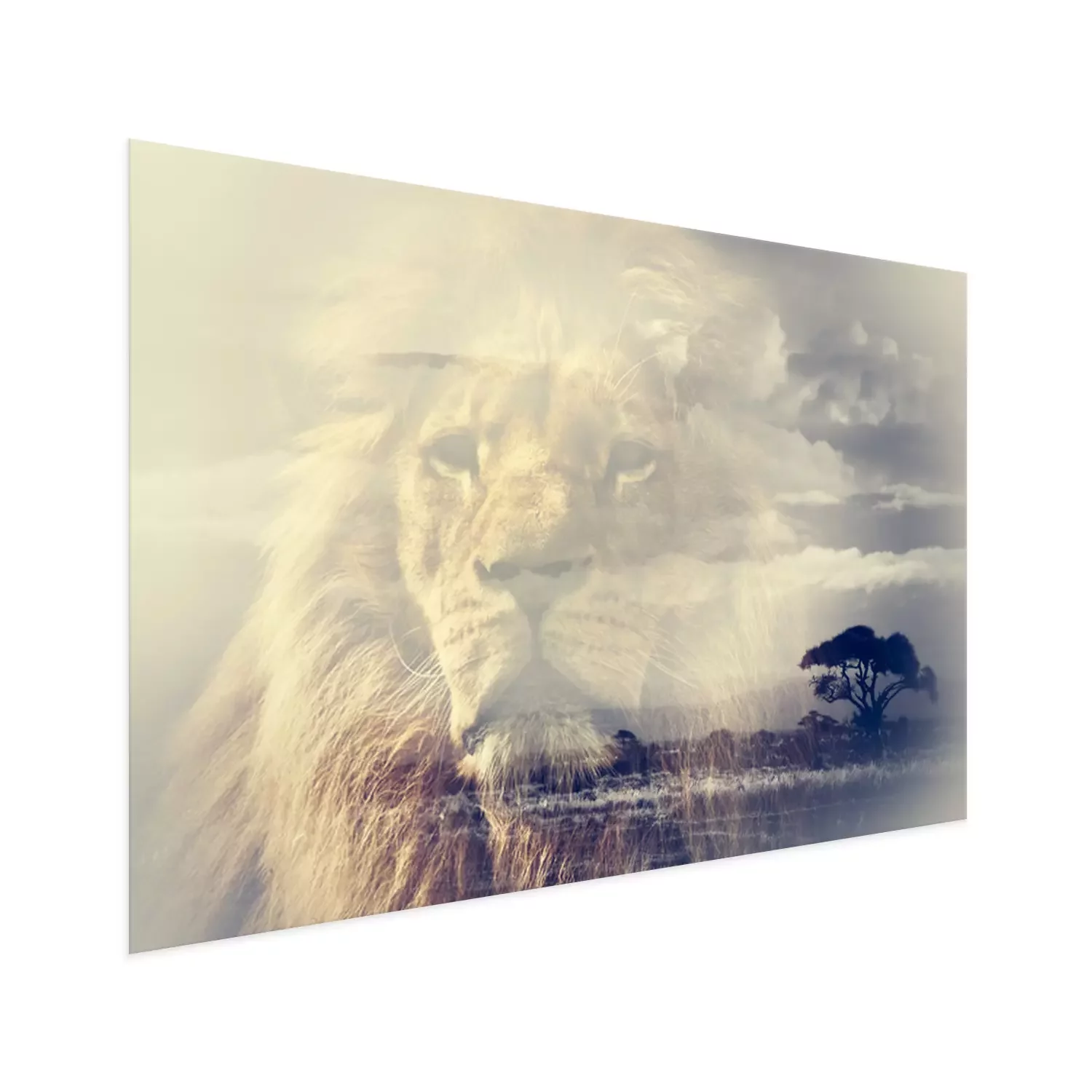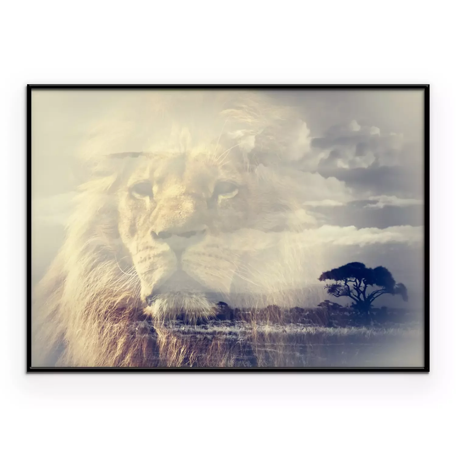 Poster: Afrikaanse leeuw met savanne op de achtergrond