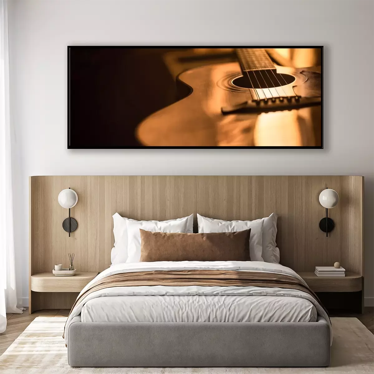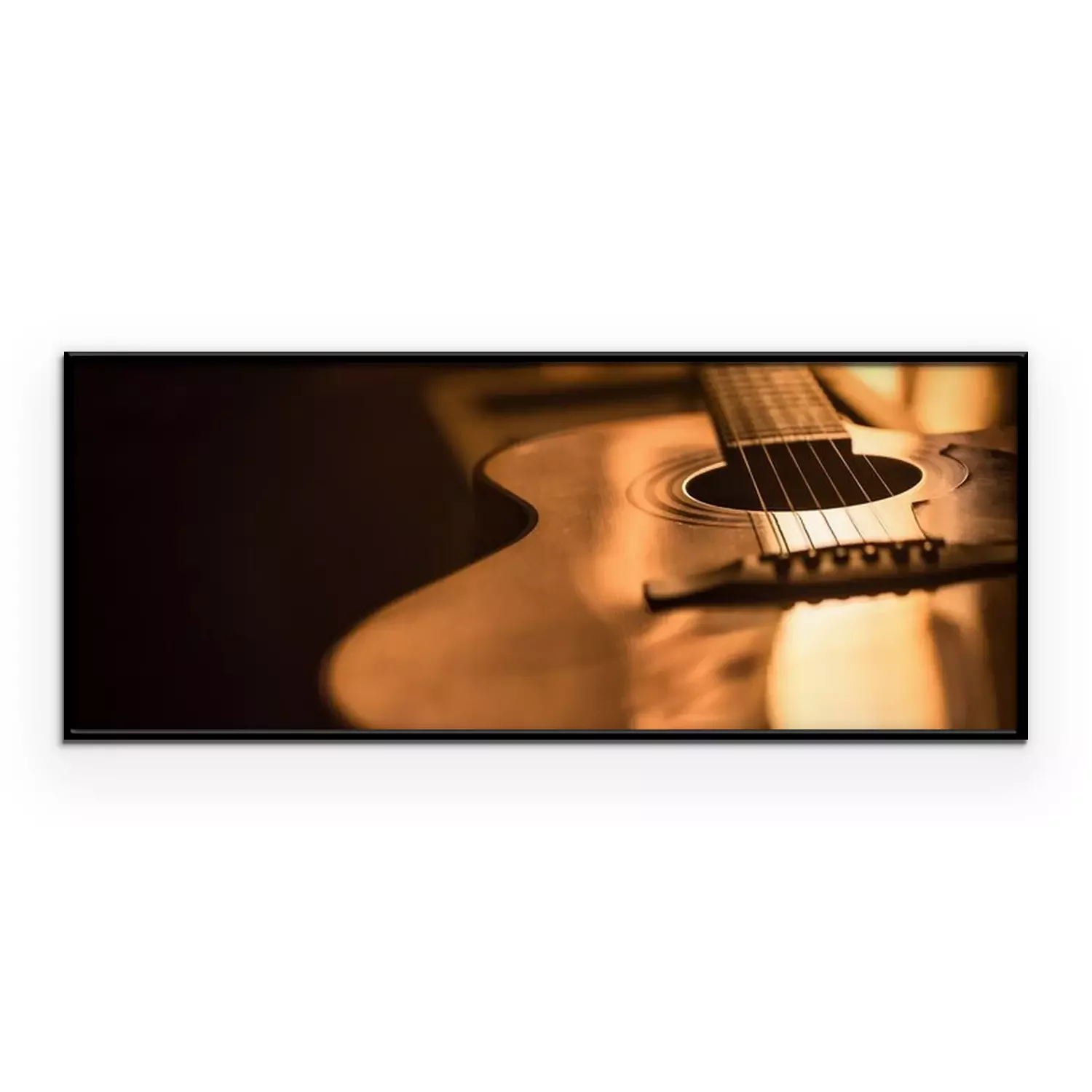 Poster: akoestische gitaar close-up op een mooie gekleurde achtergrond