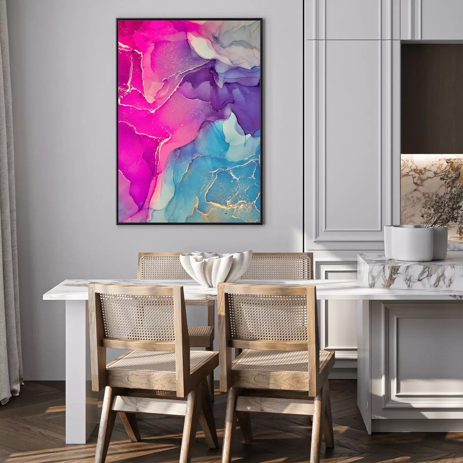Poster: Alcohol ink colors translucent. Abstract multicolored marble texture background. Design wrapping paper, wallpaper. Mixing acrylic paints. Modern fluid art. Alcohol Ink Pattern