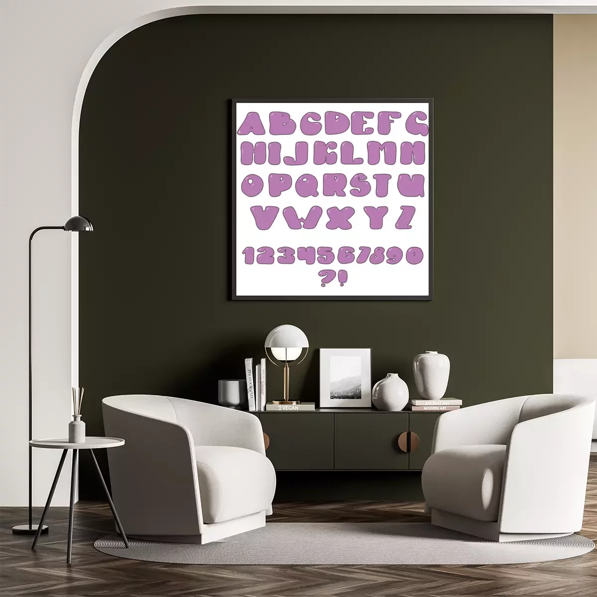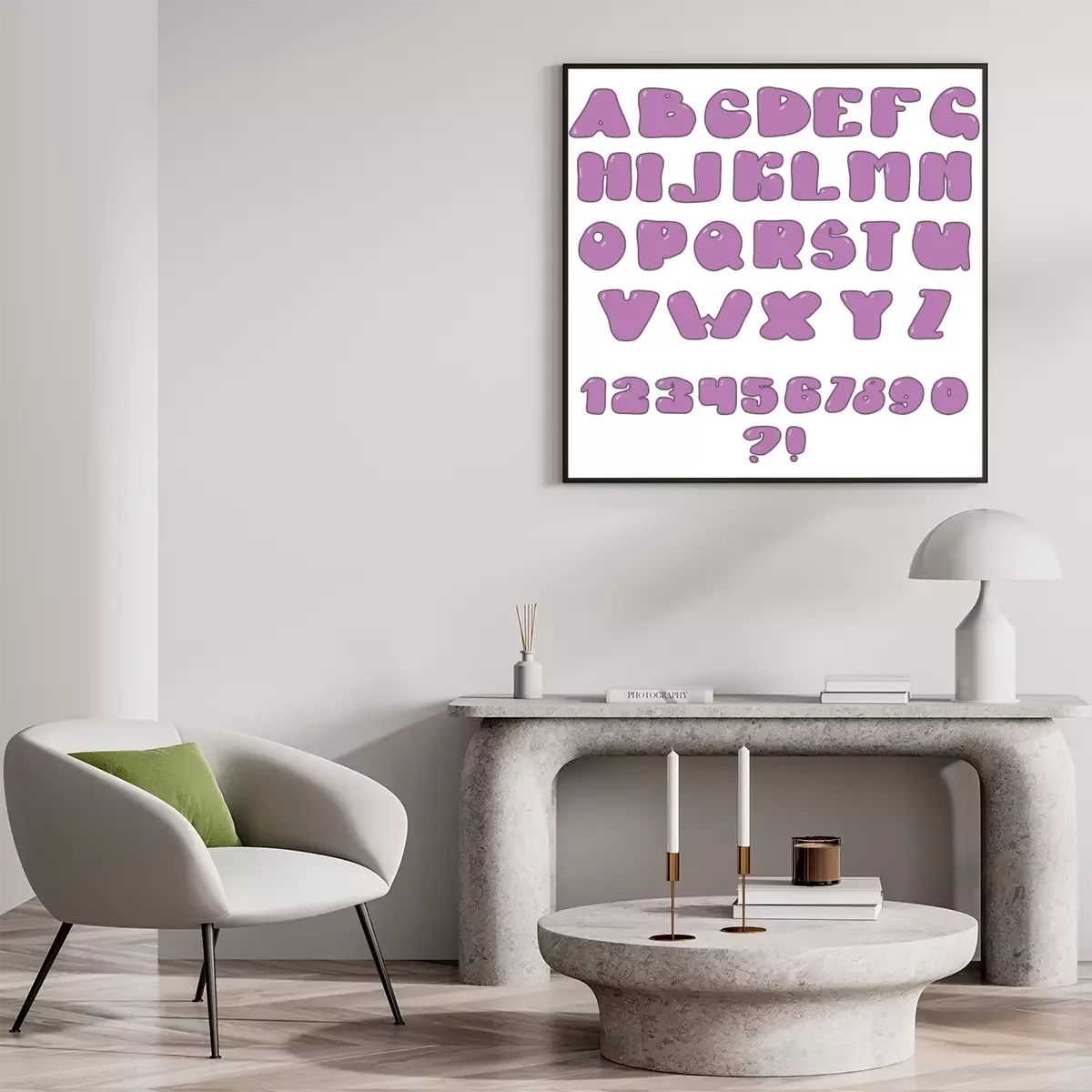 Poster: Alfabet en cijfers in paars