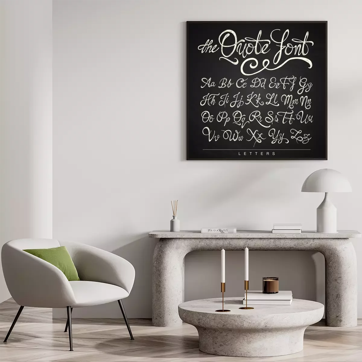All You Need is Coffee - hand drawn quote, white on the blackboard background