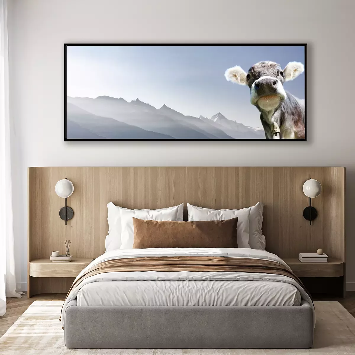 Poster: Alpenkoe op een bergachtergrond