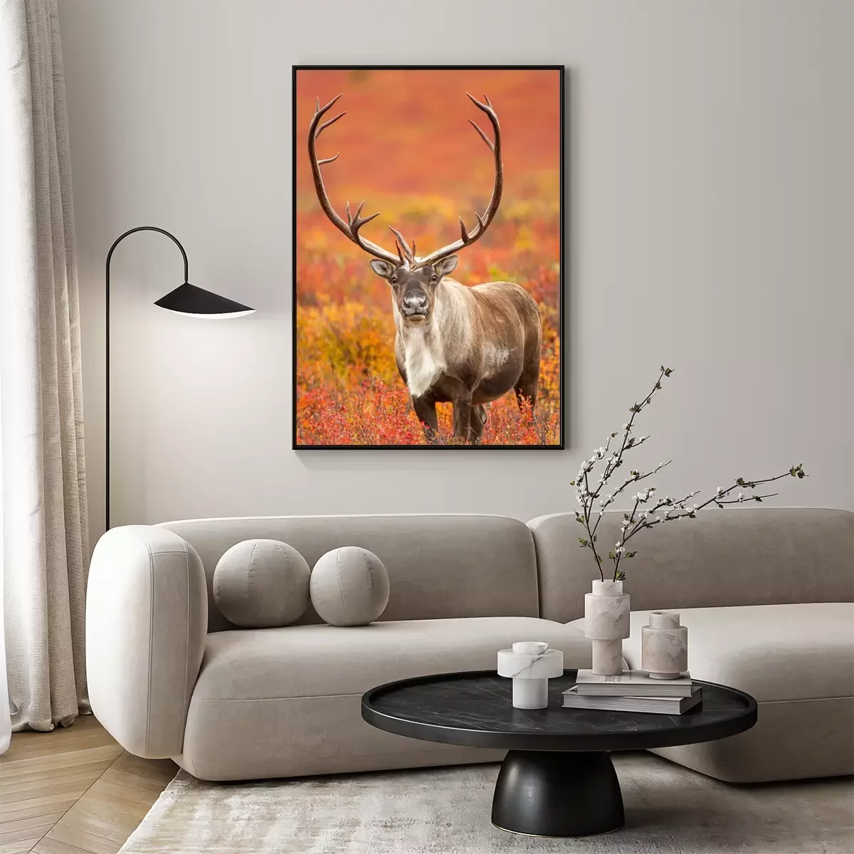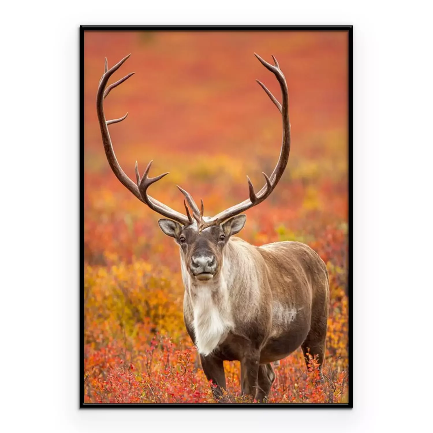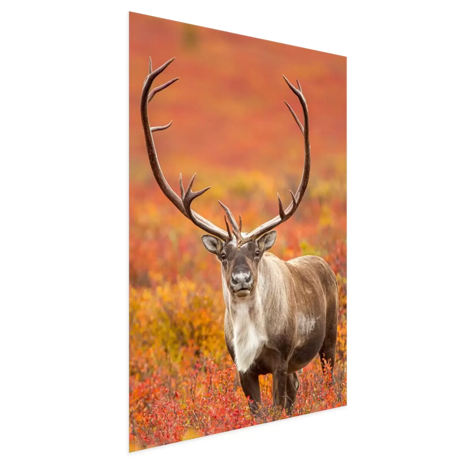 Poster: Amerikaans rendier op een weide in herfstkleuren