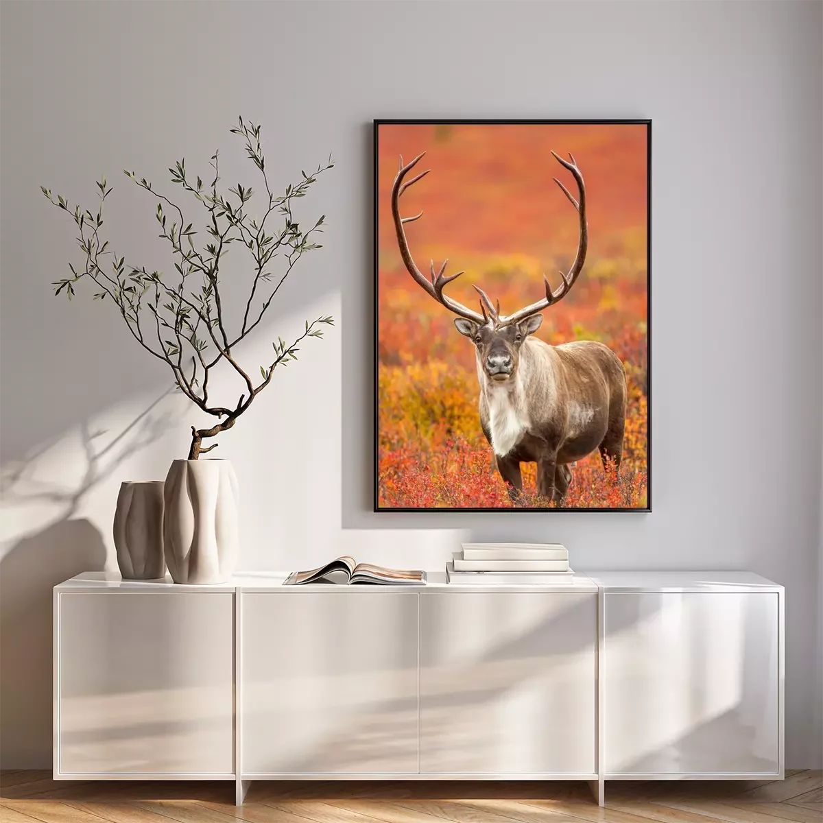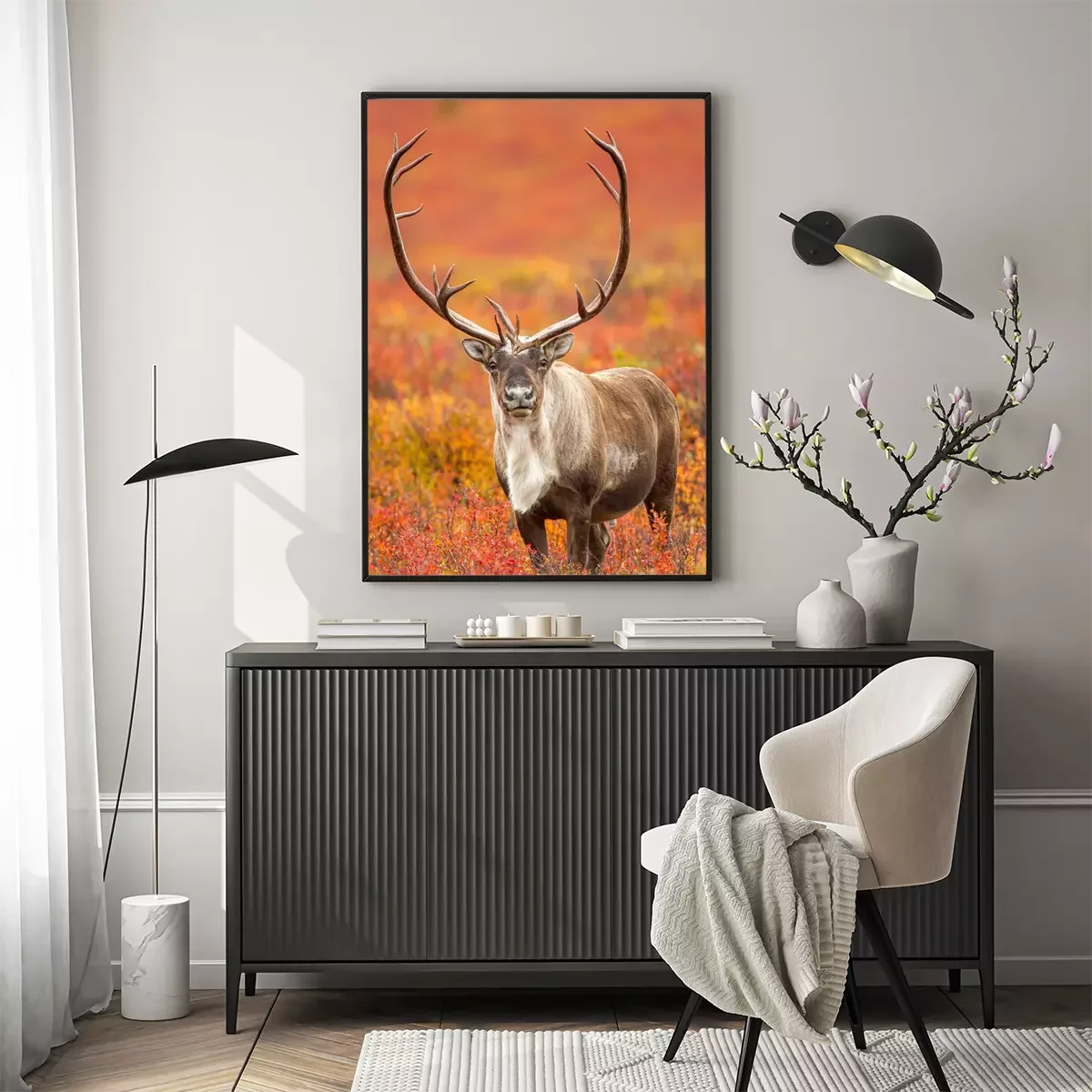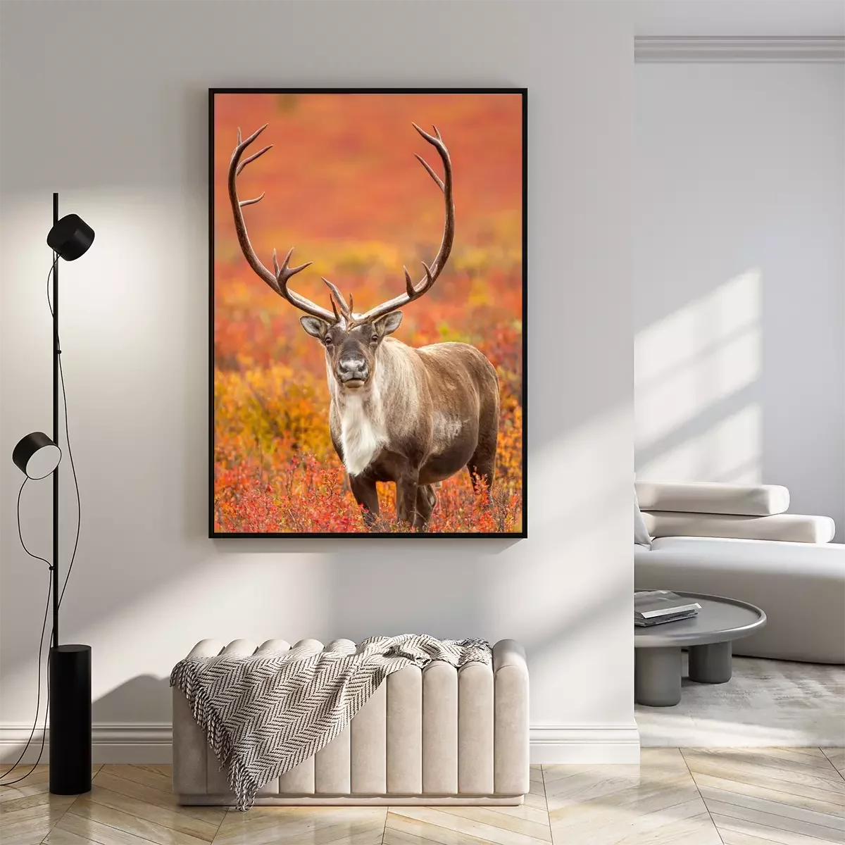 Poster: Amerikaans rendier op een weide in herfstkleuren