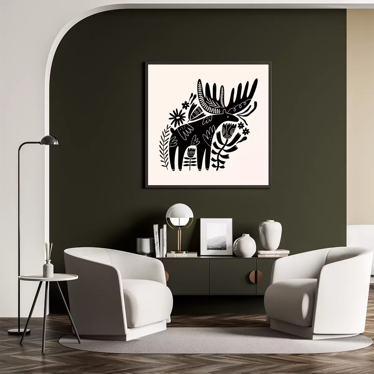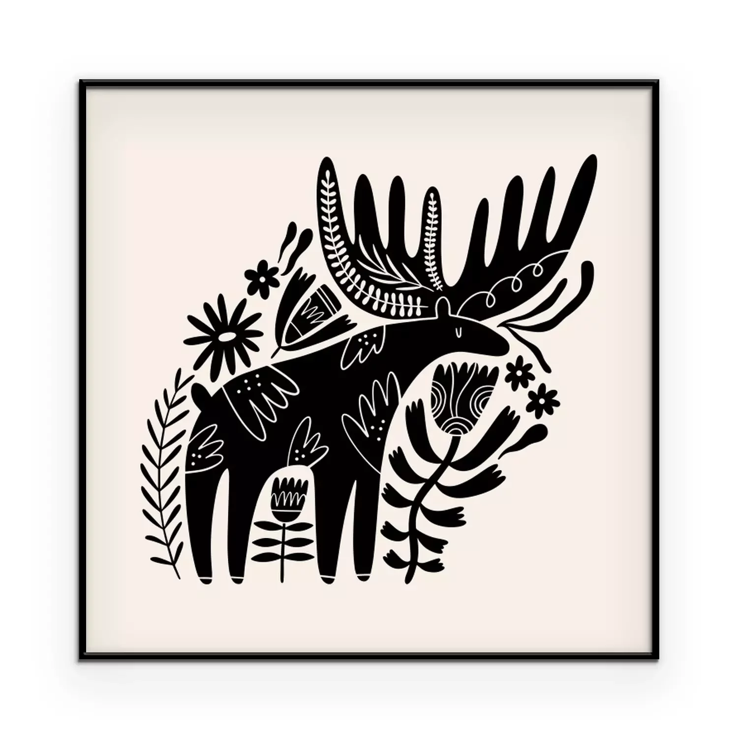 Poster Amerikaanse elanden in bloemenornamenten