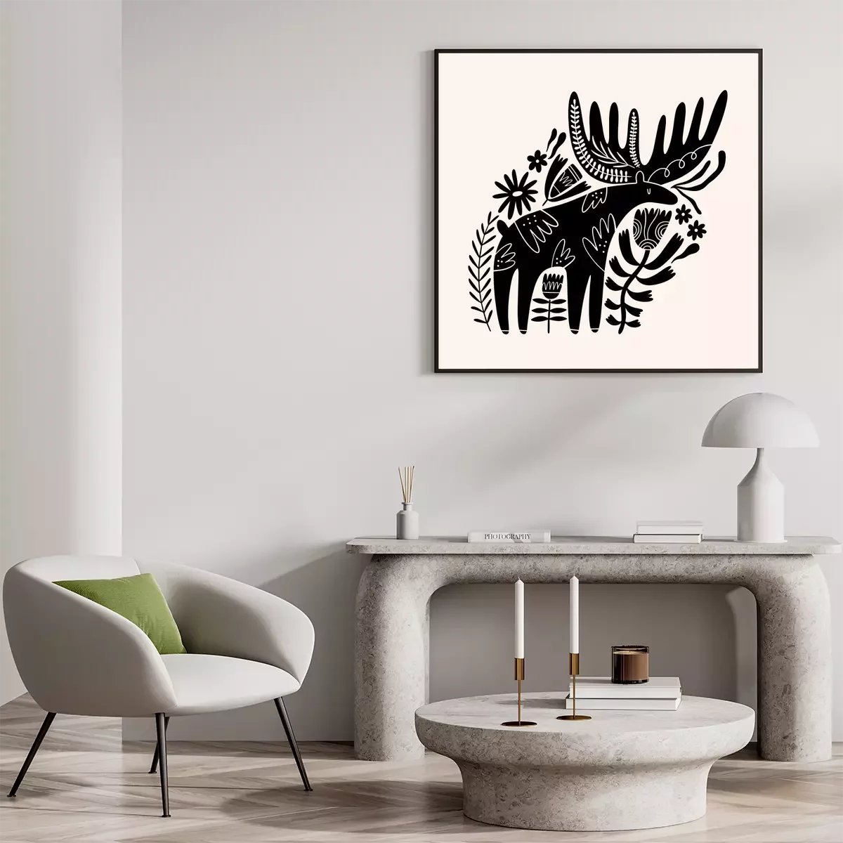 Poster: Amerikaanse elanden in bloemenornamenten