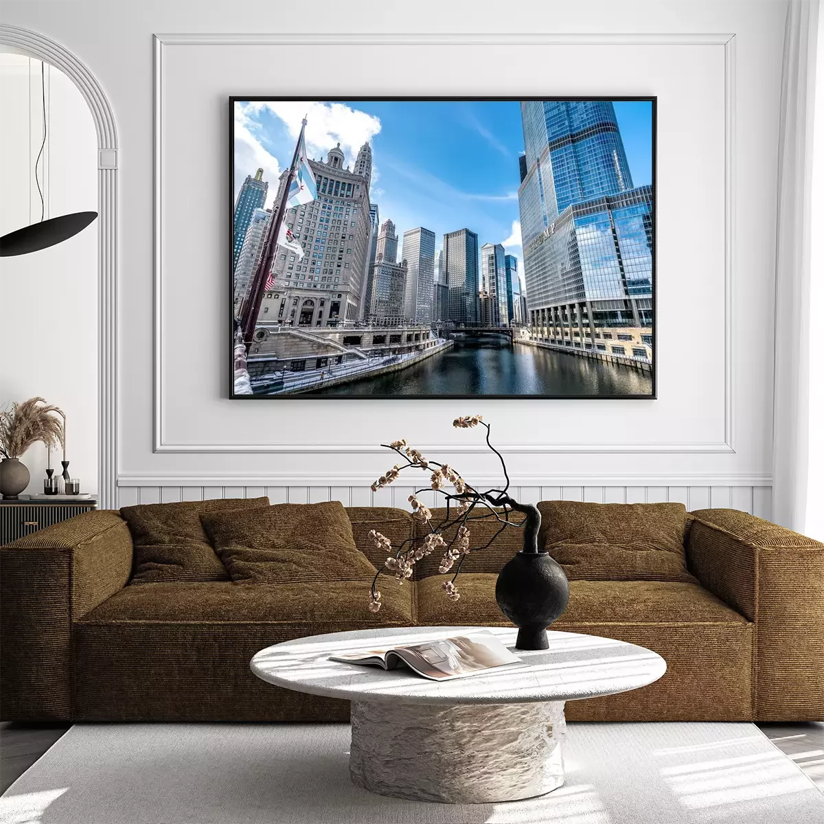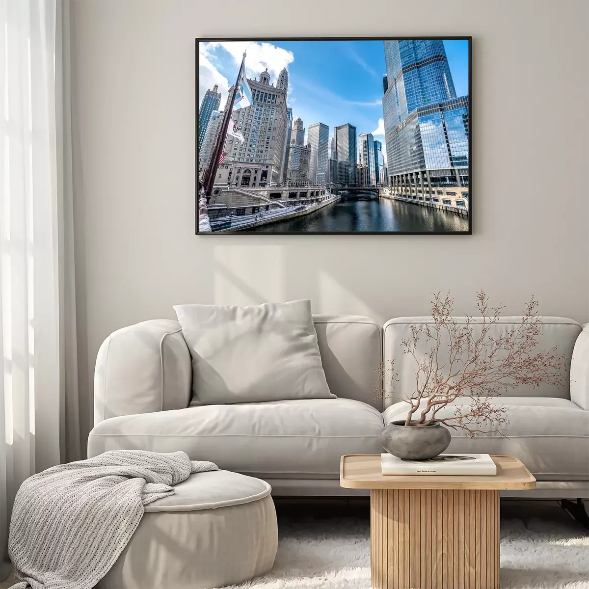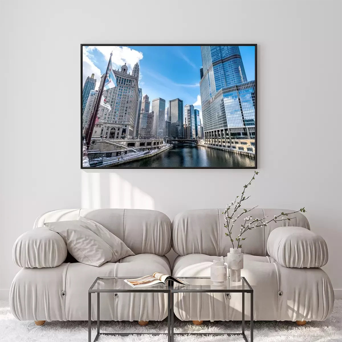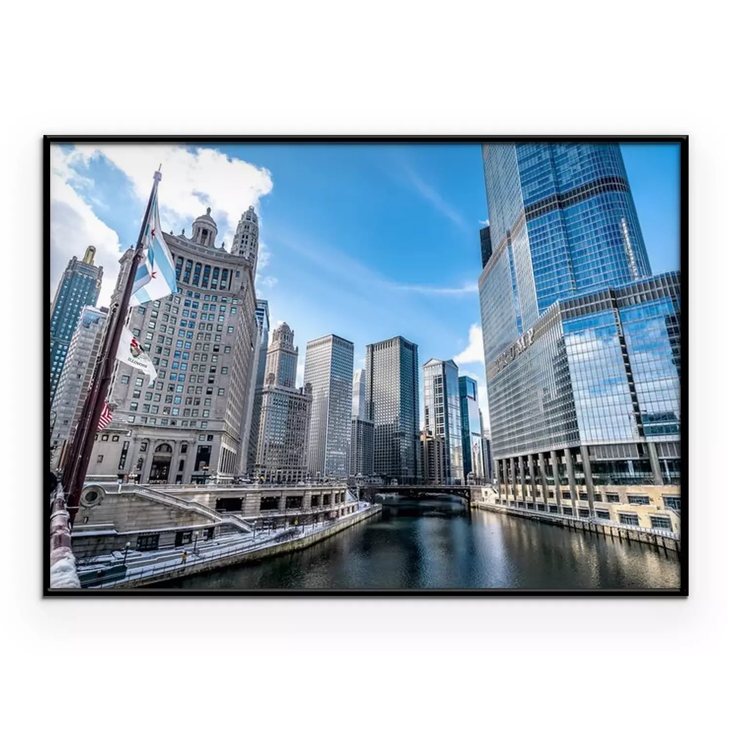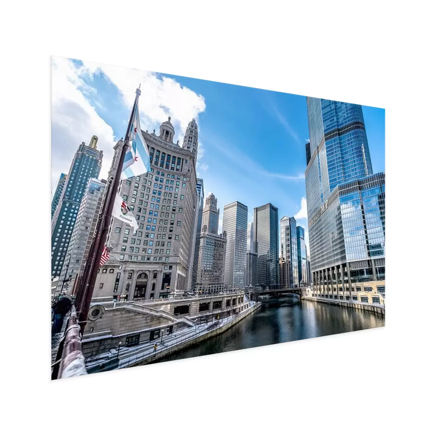 Poster: Amerikaanse wolkenkrabbers boven het water