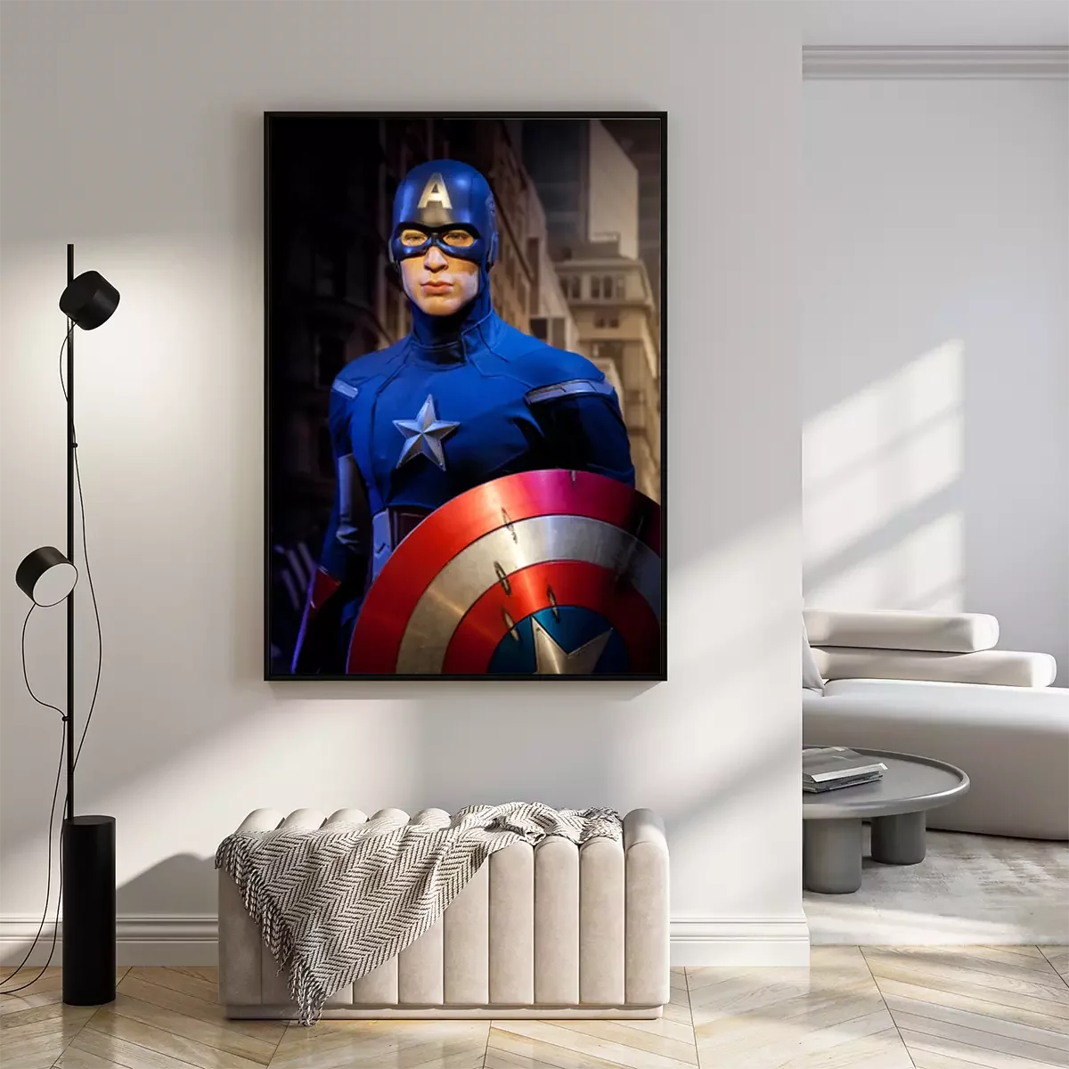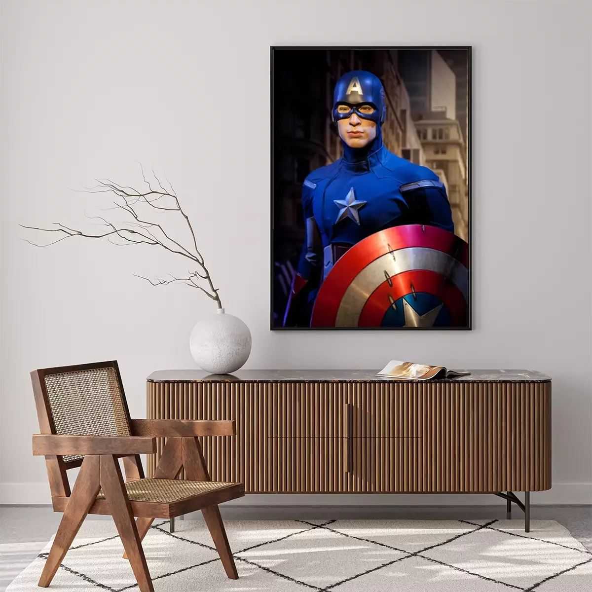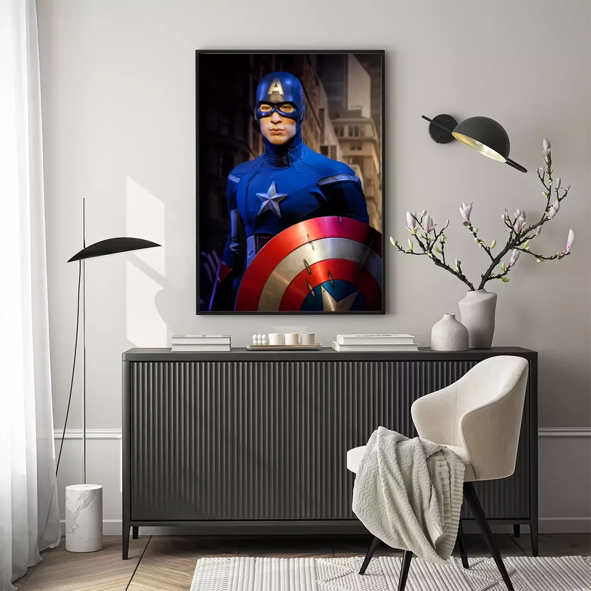 Poster: Amsterdam, Nederland - maart 2017: wasfiguur van Chris Evans als Captain America in het wassenbeeldenmuseum Madame Tussauds in Amsterdam, Nederland